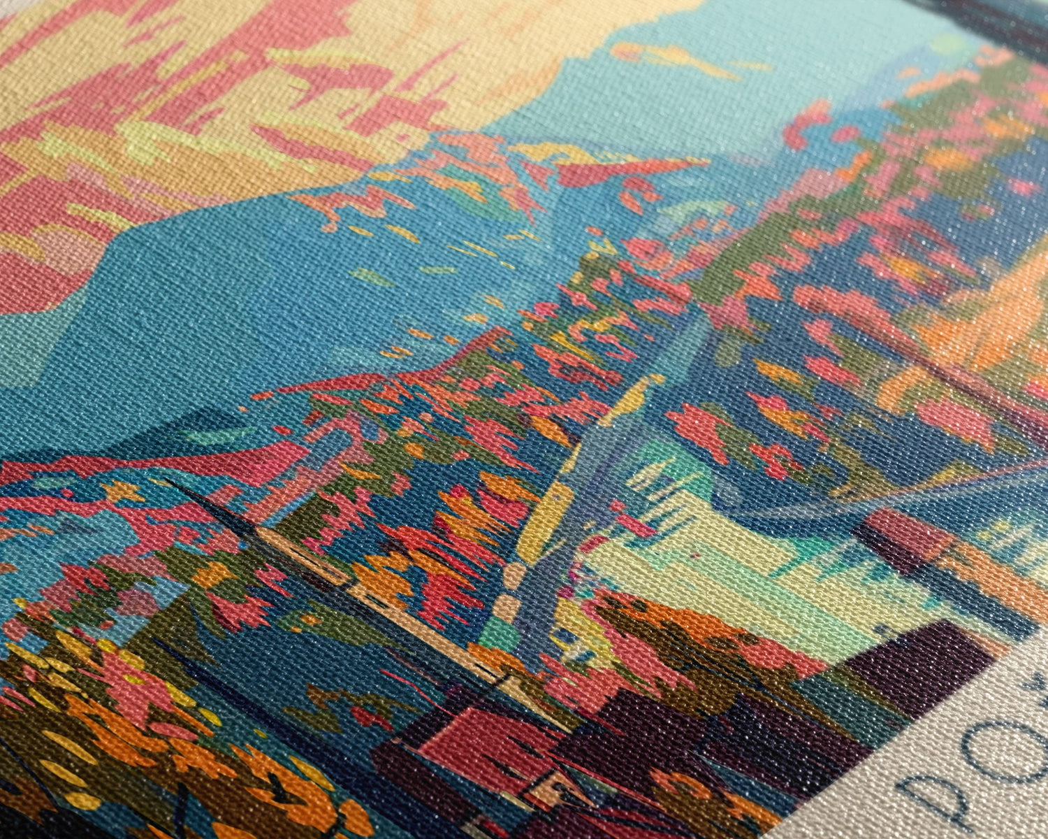 Most of our canvases are made in the USA, with the exception of canvases ordered with the light oak unstained frames, and any large canvases (24x48, 30x60, 16x48 and 20x60) ordered WITH a frame. These are temporarily made in and shipped from Europe, while we try to find a more consistent supplier in the USA.