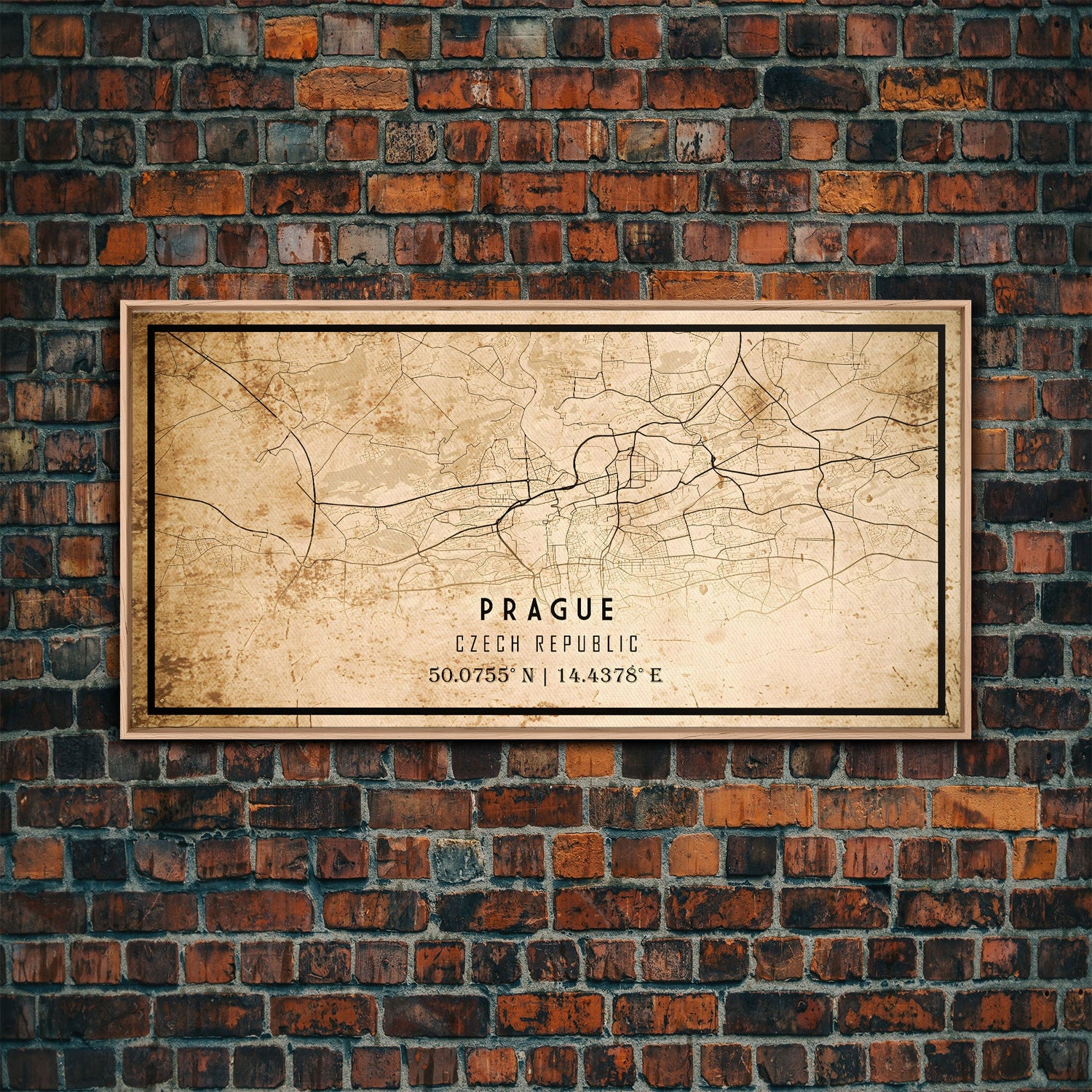 Prague Czech Republic map print poster or framed canvas, Prague map print poster canvas, city map print poster canvas, Vintage Travel Art