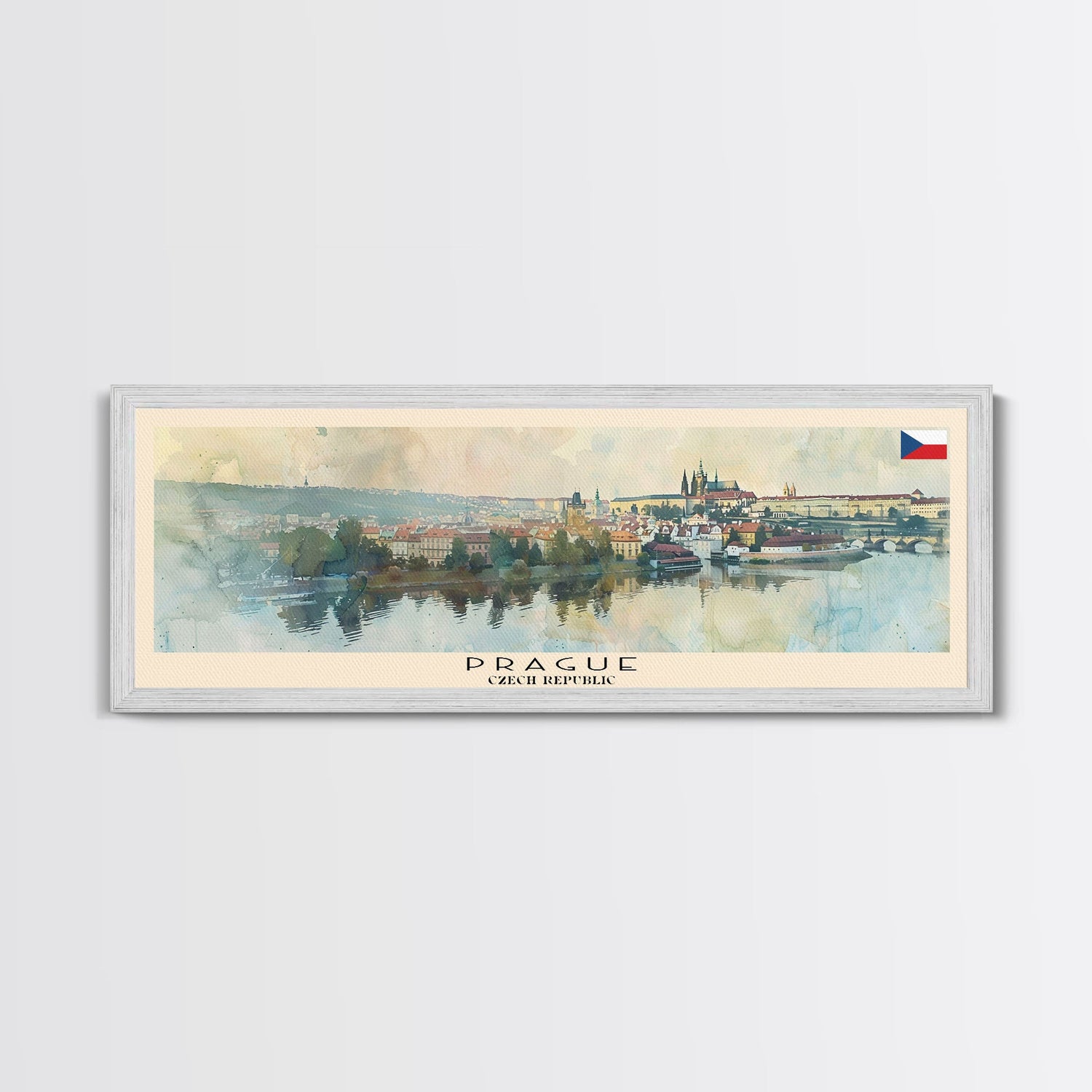 Prague Czech Republic Travel Art, City Art, Framed Canvas Print or Metal Wall Art, Europe Travel Poster, Panoramic Wall Art, Extra Wide Wall Art