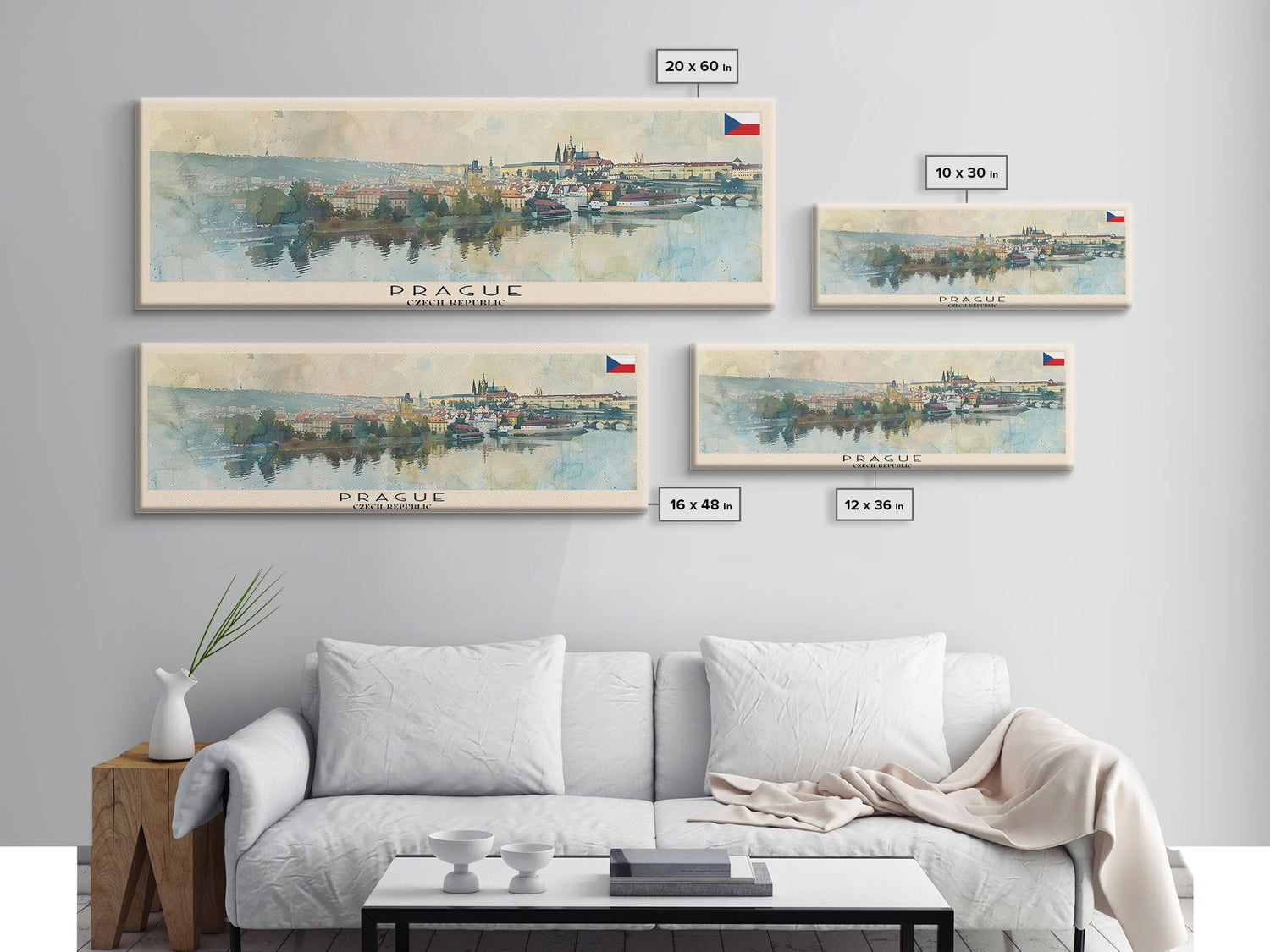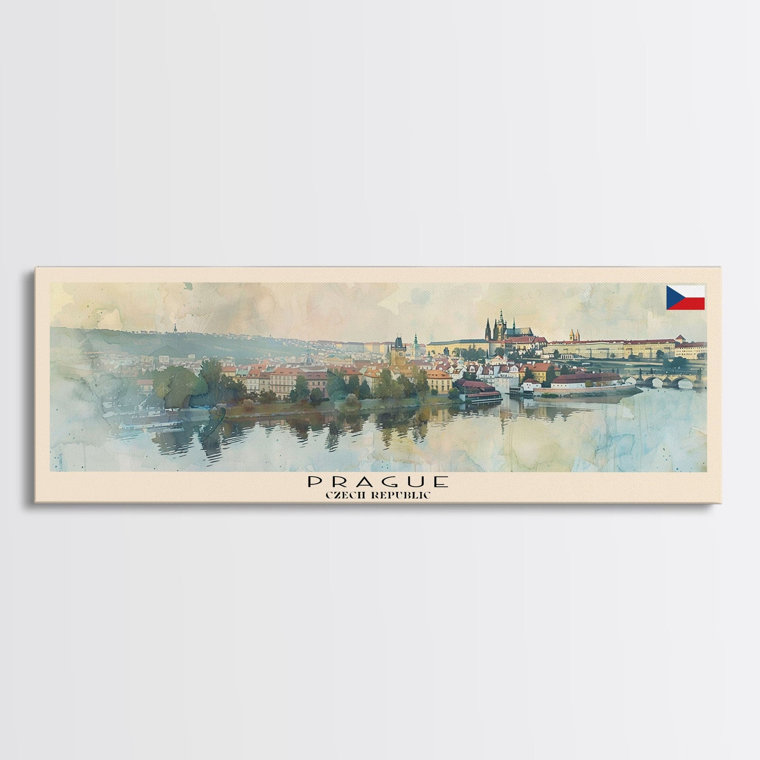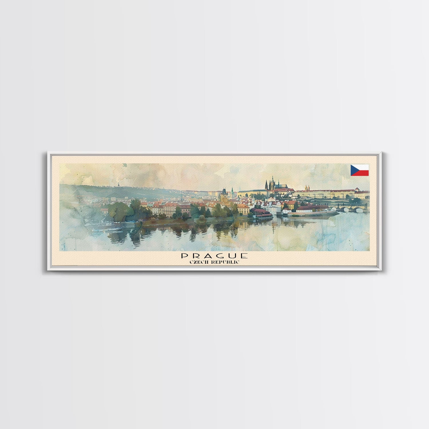 Prague Czech Republic Travel Art, City Art, Framed Canvas Print or Metal Wall Art, Europe Travel Poster, Panoramic Wall Art, Extra Wide Wall Art