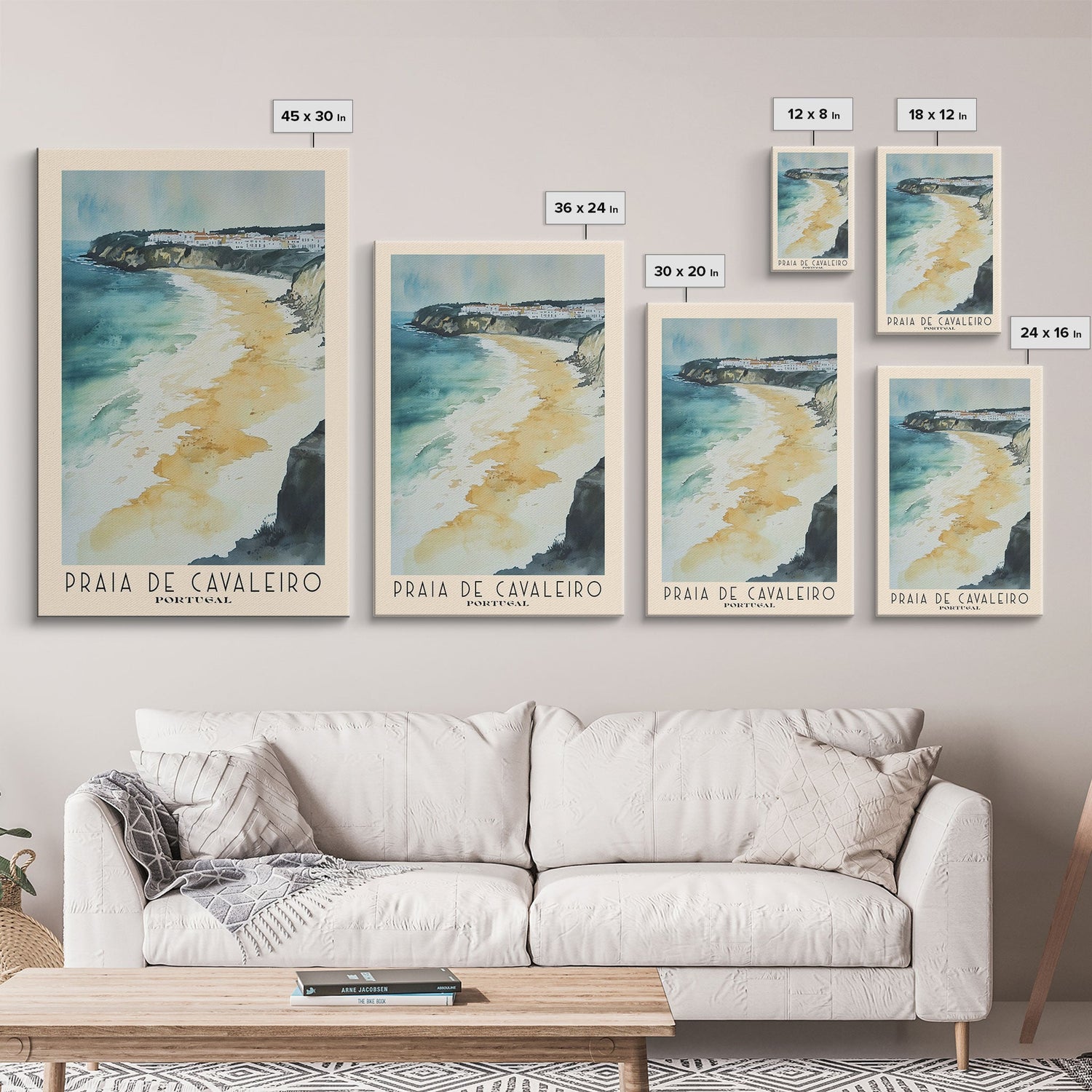 Praia de Cavaleiro, Portugal Watercolor Beach Print, Vacation Gift, Portugal Wall Art, Framed Canvas Print, Framed Beach Painting - 8x12 Inches / No Frame - Stretched Canvas Only is backordered and will ship as soon as it is back in stock.