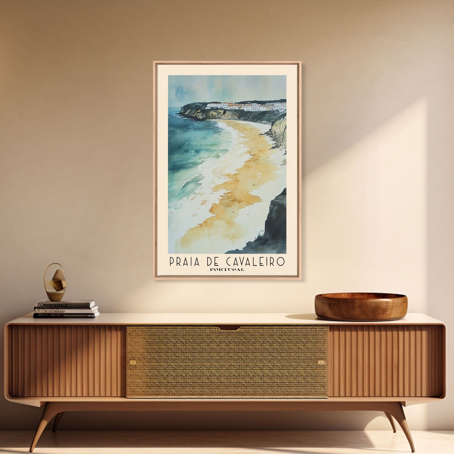 Praia de Cavaleiro, Portugal Watercolor Beach Print, Vacation Gift, Portugal Wall Art, Framed Canvas Print, Framed Beach Painting