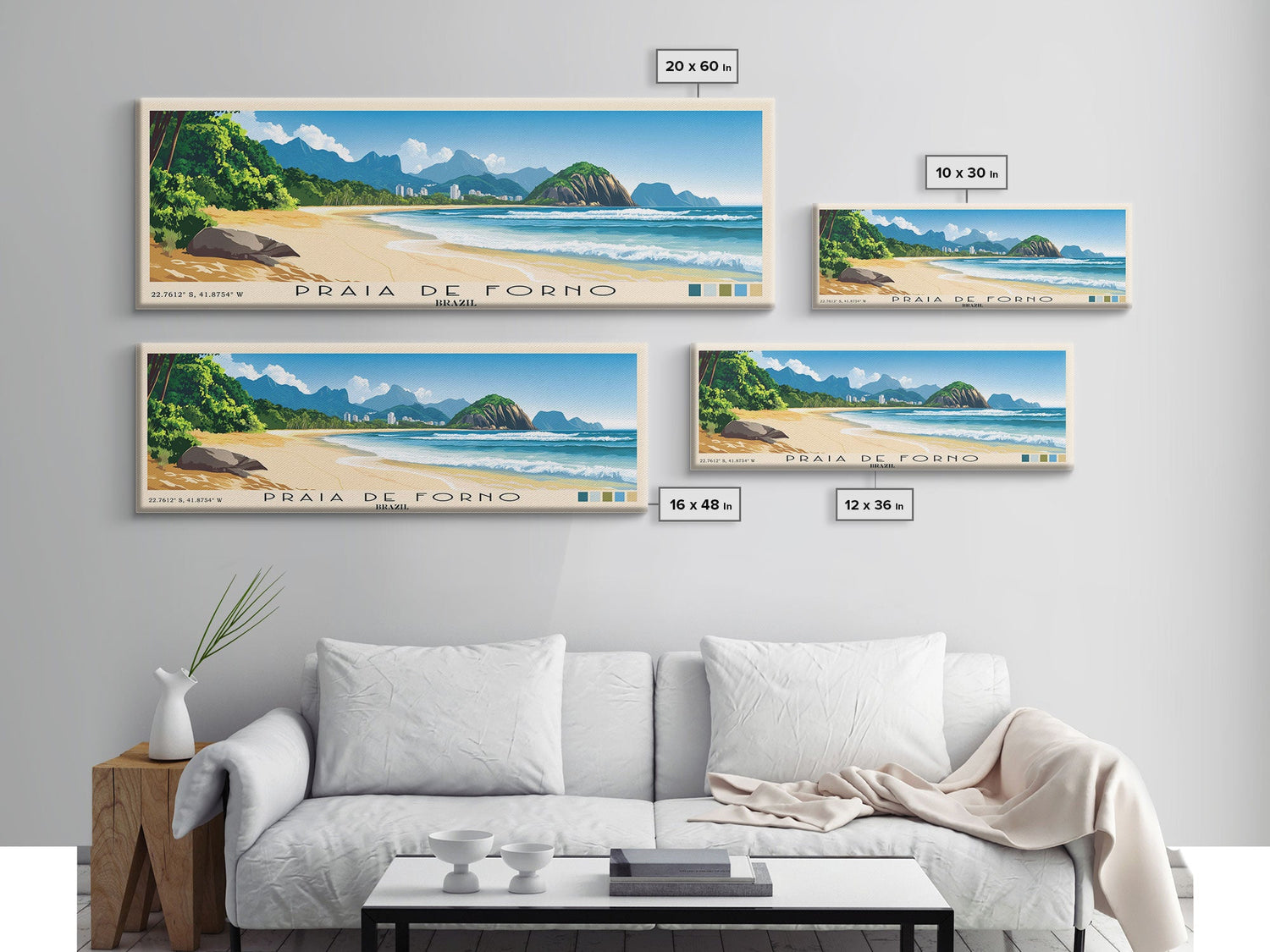 Praia de Forno, Brazil Panoramic Print, Vacation Gift, Brazil Wall Art, Beach Painting, Beach Decor, Large Wall Art, Wood Frame Art - 10x30 Inches / No Frame - Stretched Canvas Only is backordered and will ship as soon as it is back in stock.