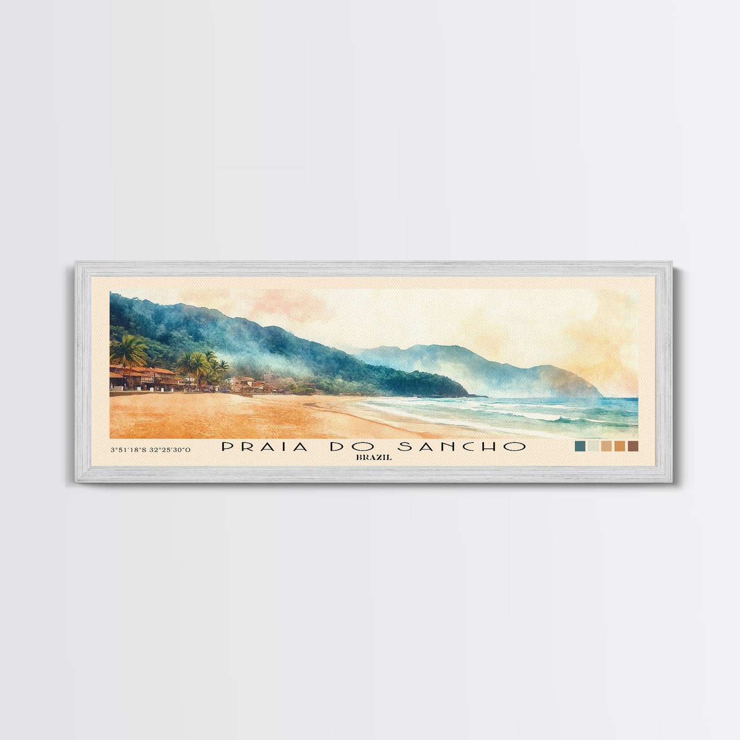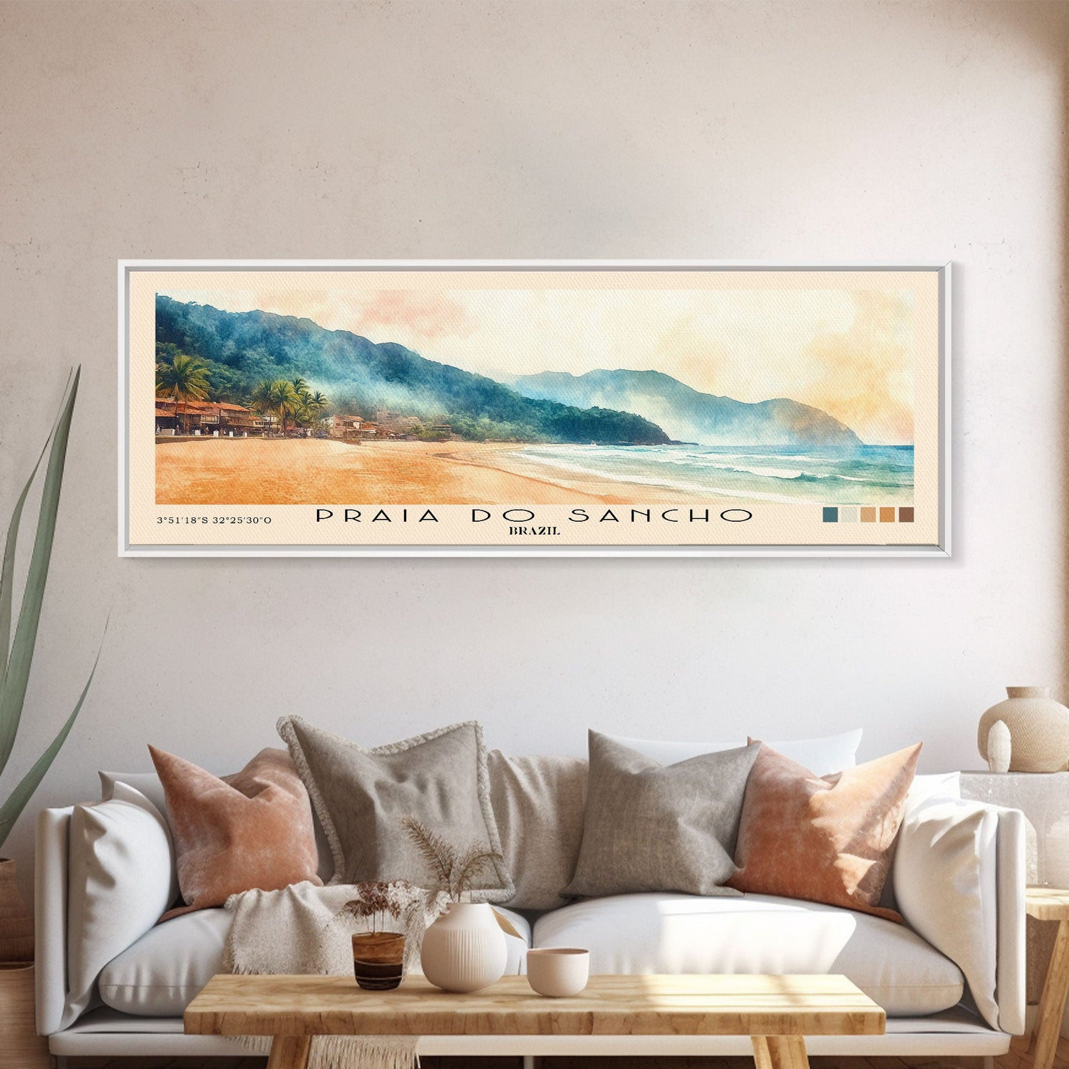 Praia do Sancho, Brazil Watercolor Beach Print, Vacation Gift, Brazil Wall Art, Framed Canvas Print, Framed Beach Painting - 10x30 Inches / No Frame - Stretched Canvas Only is backordered and will ship as soon as it is back in stock.
