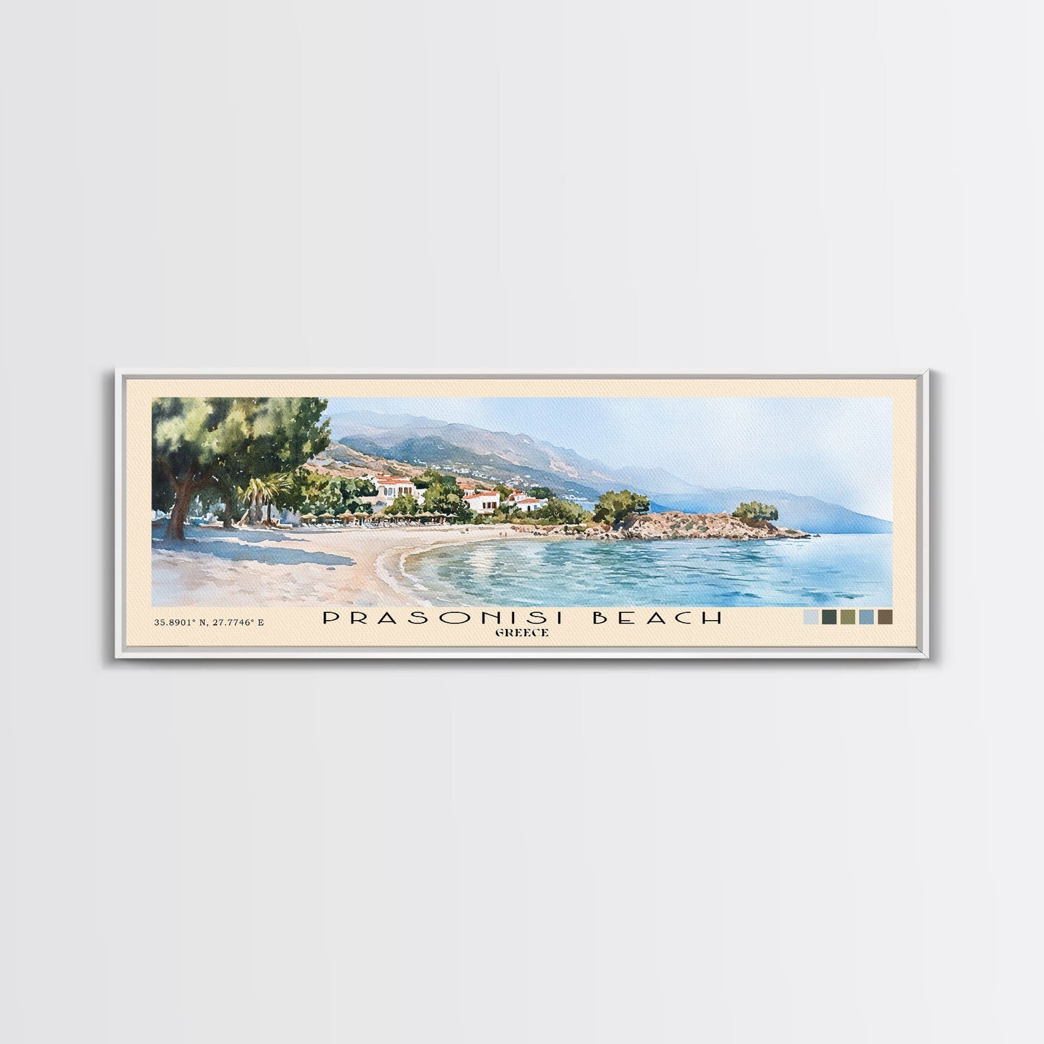 Prasonisi Beach, Greece Watercolor Beach Print, Vacation Gift, Greece Wall Art, Beach Painting, Beach Decor, Beach Painting - 10x30 Inches / No Frame - Stretched Canvas Only is backordered and will ship as soon as it is back in stock.