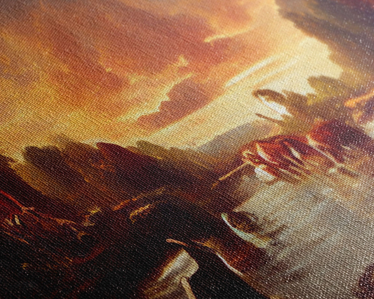 Most of our canvases are made in the USA, with the exception of canvases ordered with the light oak unstained frames, and any large canvases (24x48, 30x60, 16x48 and 20x60) ordered WITH a frame. These are temporarily made in and shipped from Europe, while we try to find a more consistent supplier in the USA.