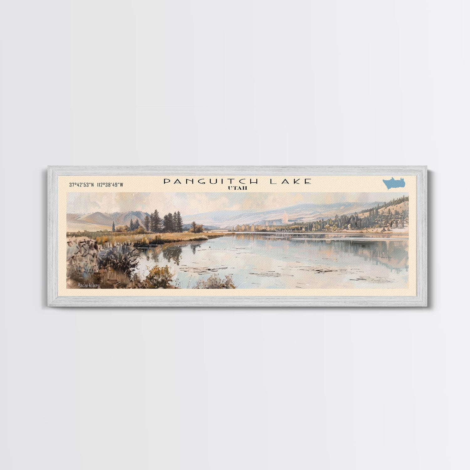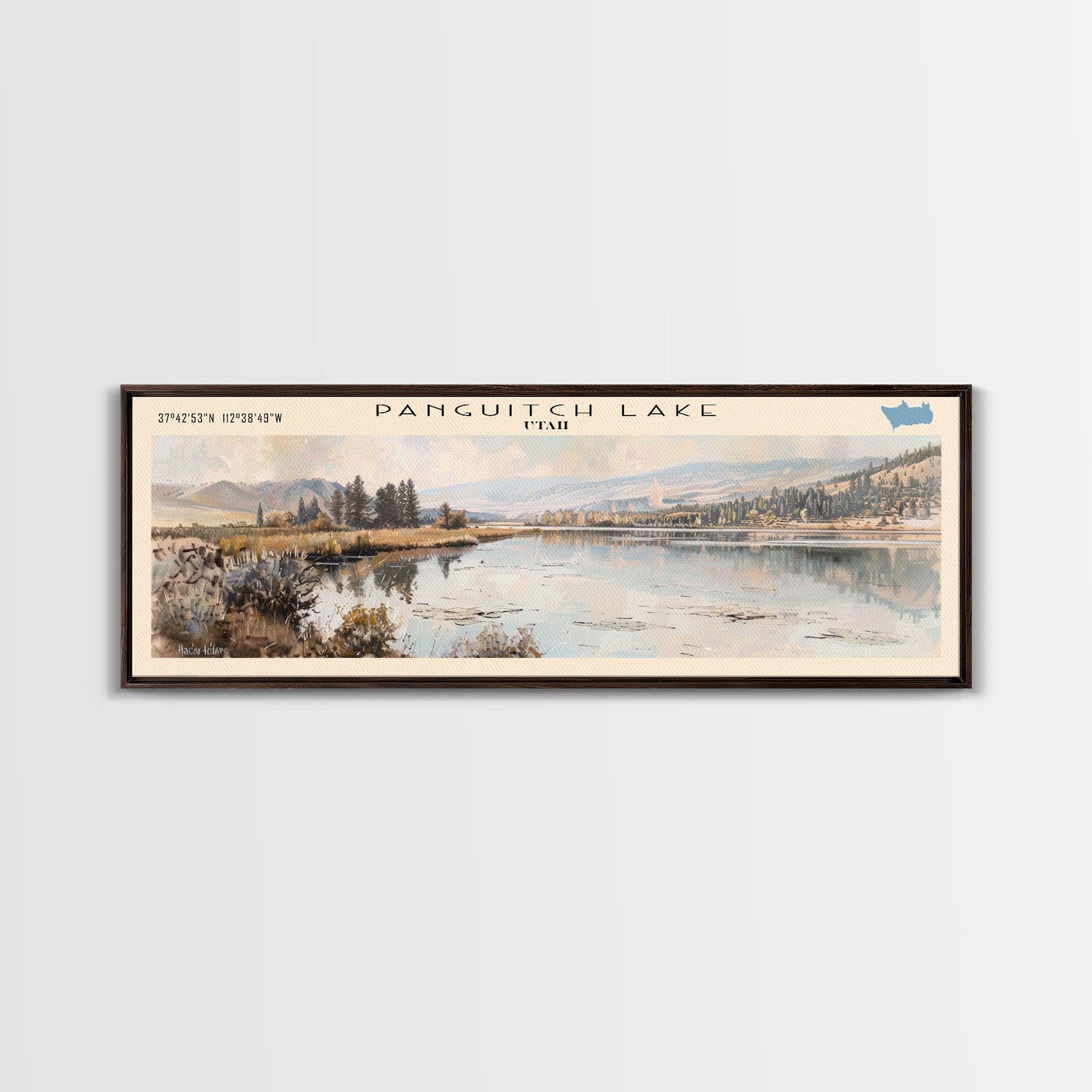 Presa El Cuchillo Lake Framed Canvas Print, Lake House Decor, Panoramic Wall Art, Travel Poster, Beautiful Landscape Painting, Contemporary Art