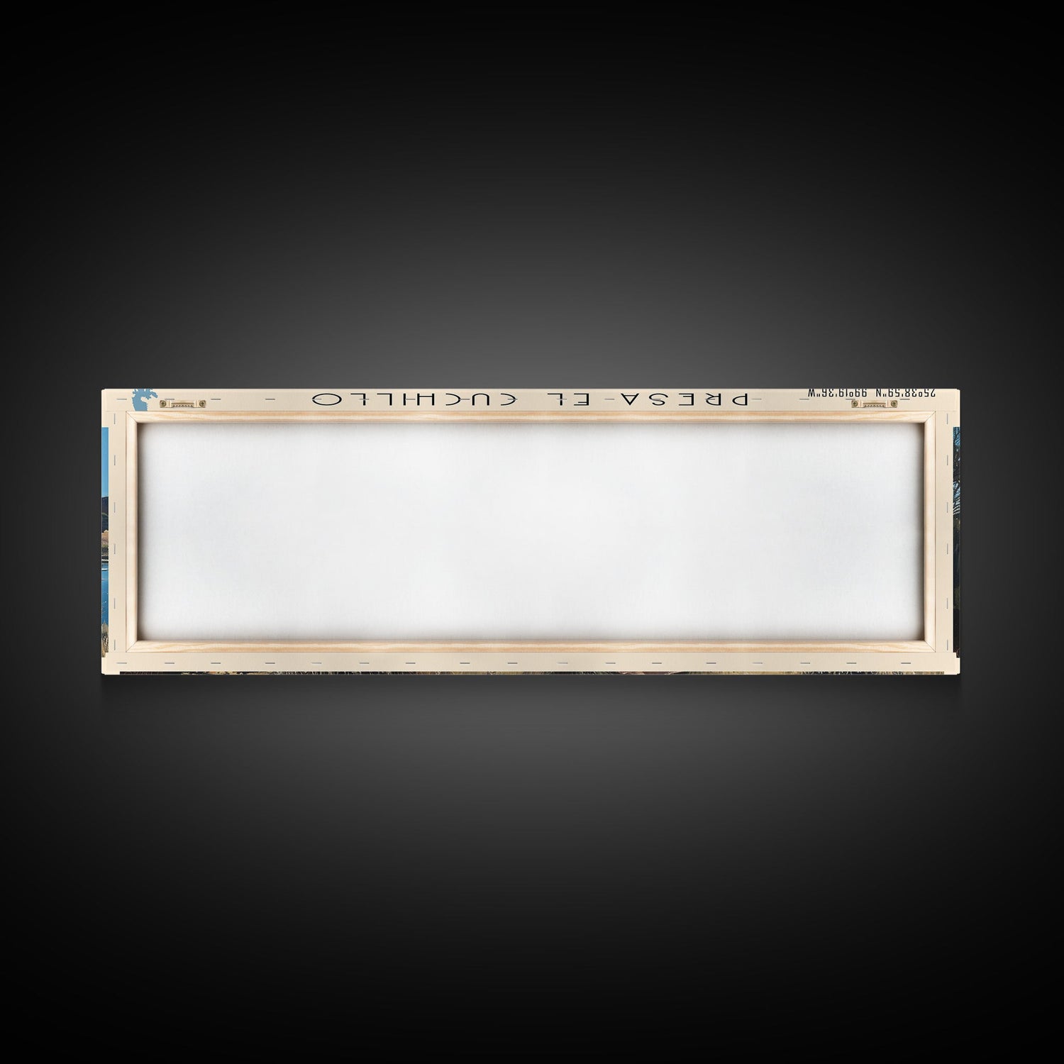 Presa El Cuchillo Lake Framed Canvas Print, Lake House Decor, Panoramic Wall Art, Travel Poster, Beautiful Landscape Painting, Contemporary Art - 10x30 Inches / No Frame - Stretched Canvas Only is backordered and will ship as soon as it is back in stock.