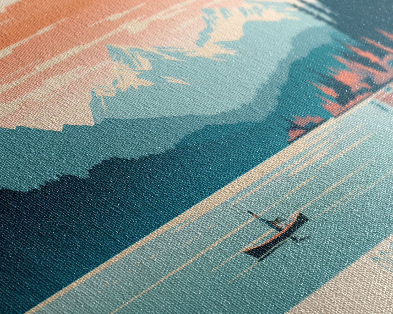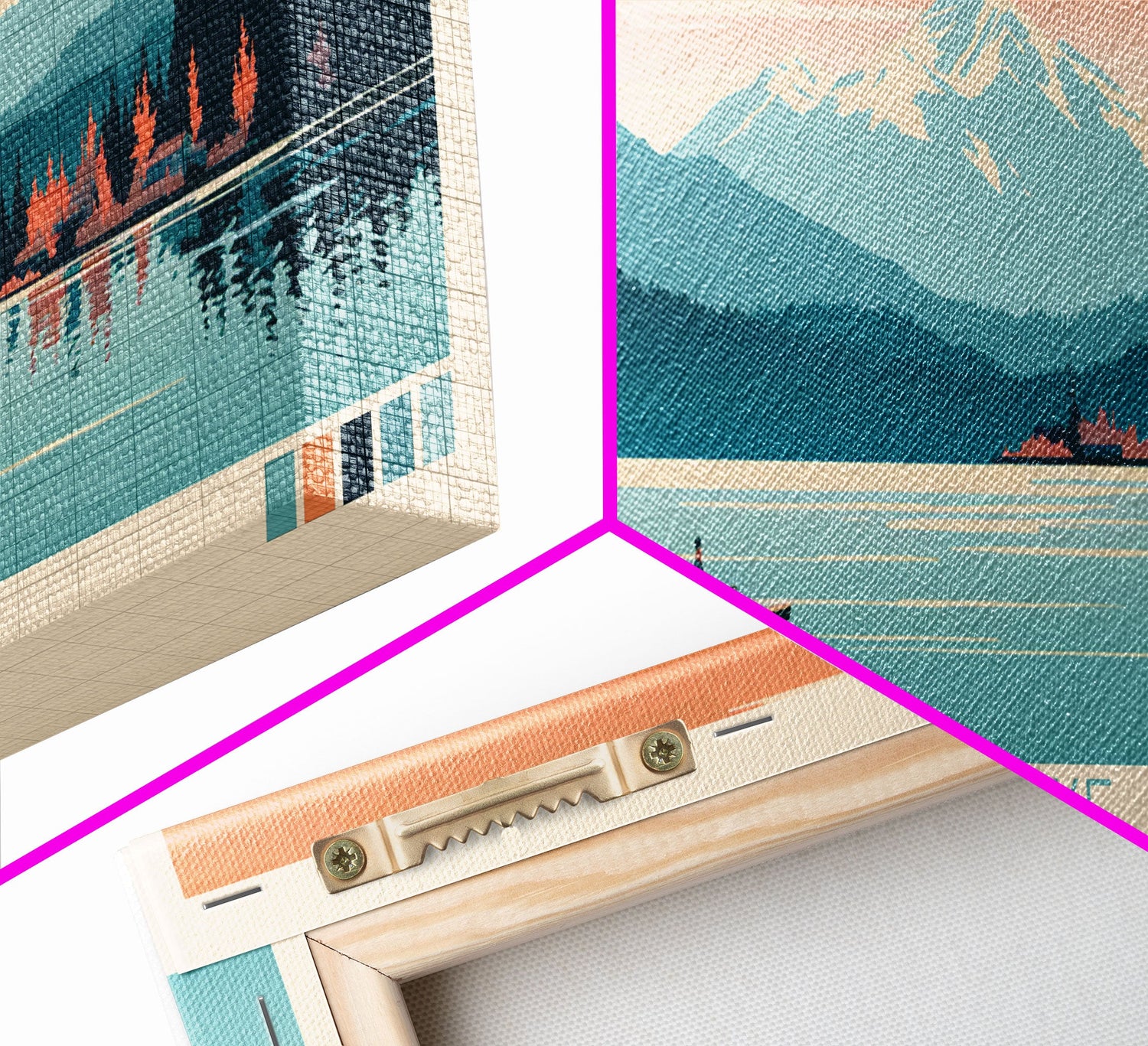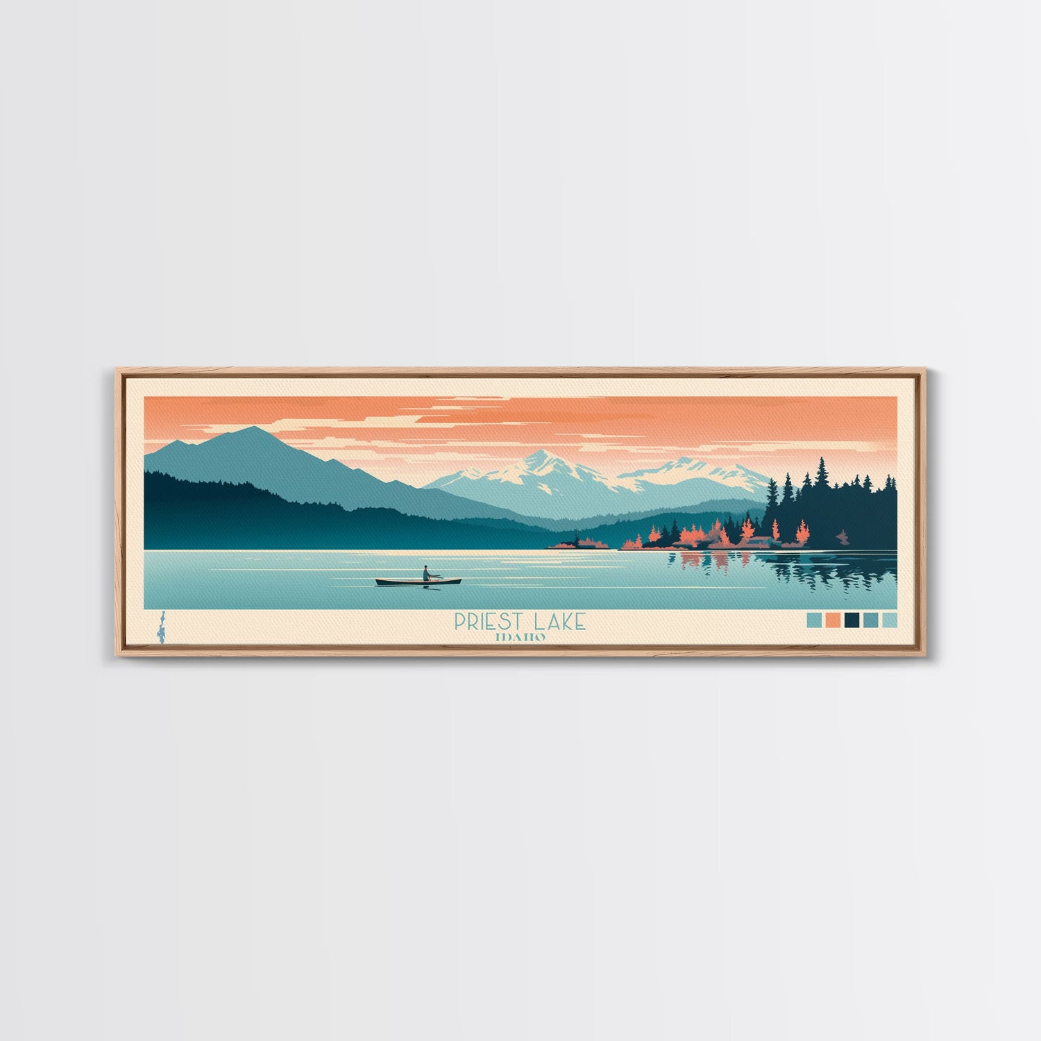 Priest Lake, Idaho Framed Canvas Print, Bedroom Art, Midcentury Modern, Pop Art, Panoramic Wall Art, Travel Poster