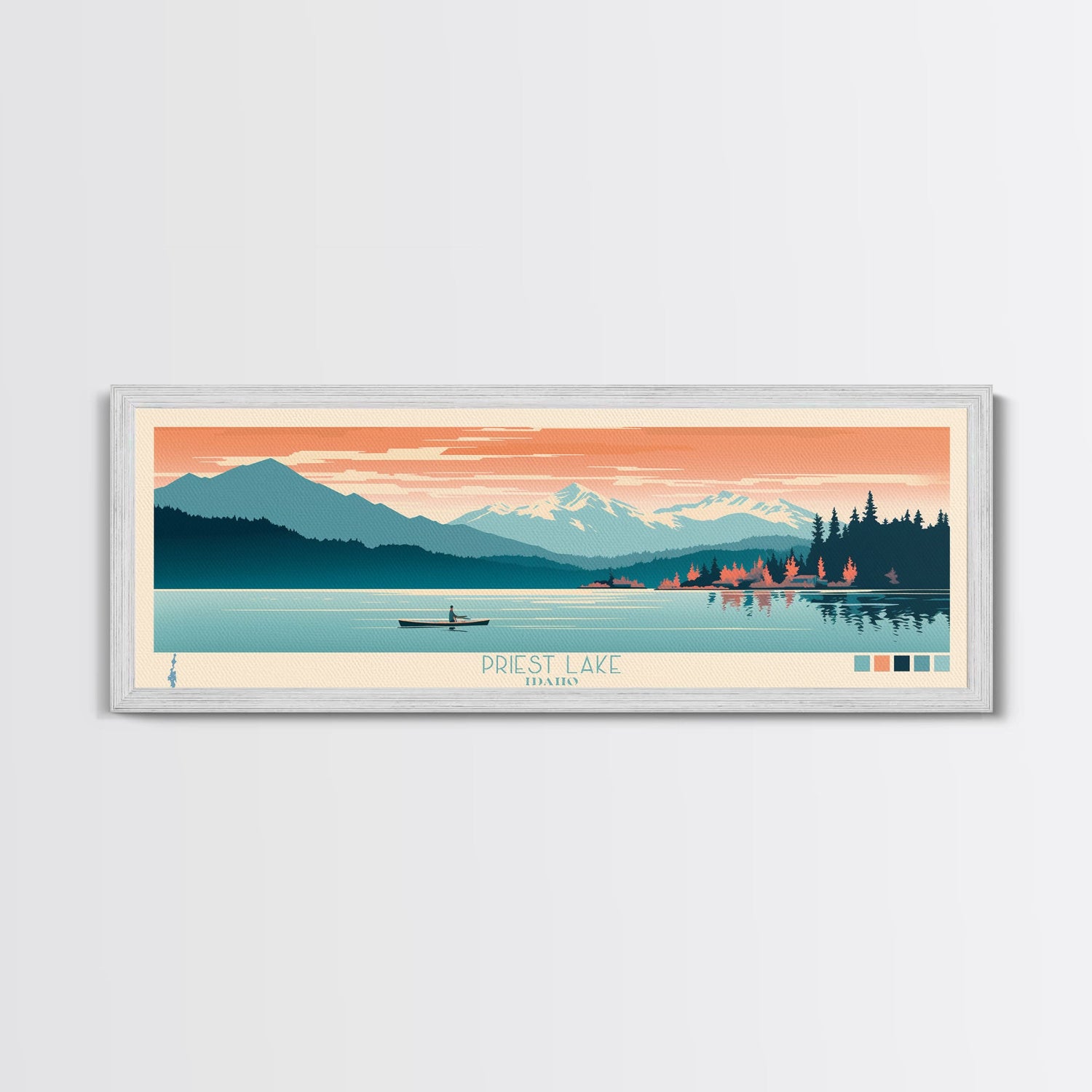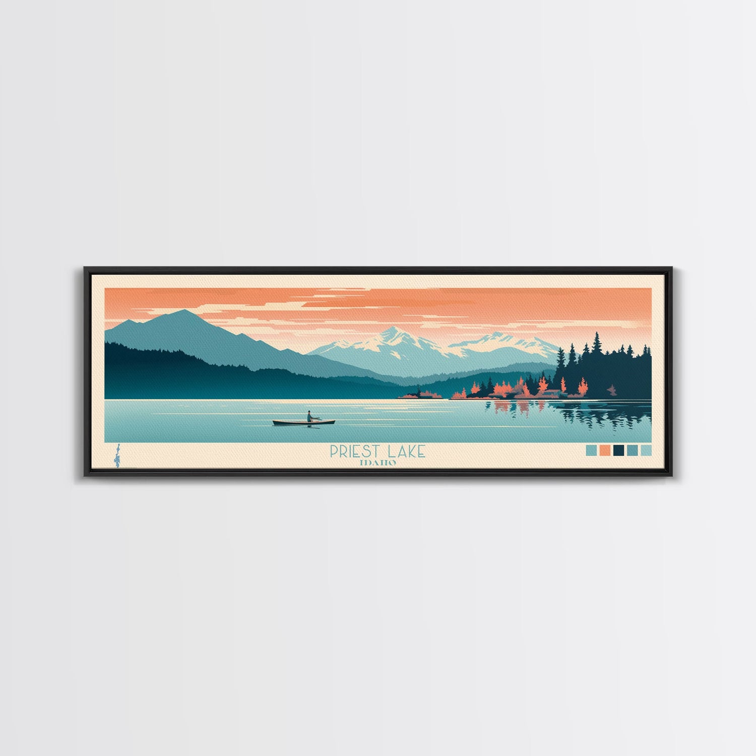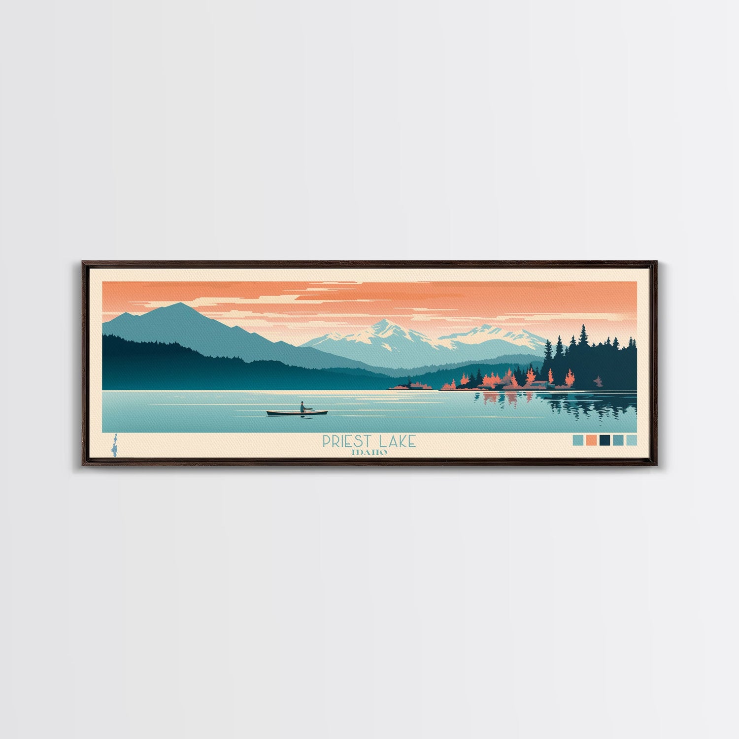 Priest Lake, Idaho Framed Canvas Print, Bedroom Art, Midcentury Modern, Pop Art, Panoramic Wall Art, Travel Poster - 10x30 Inches / No Frame - Stretched Canvas Only is backordered and will ship as soon as it is back in stock.
