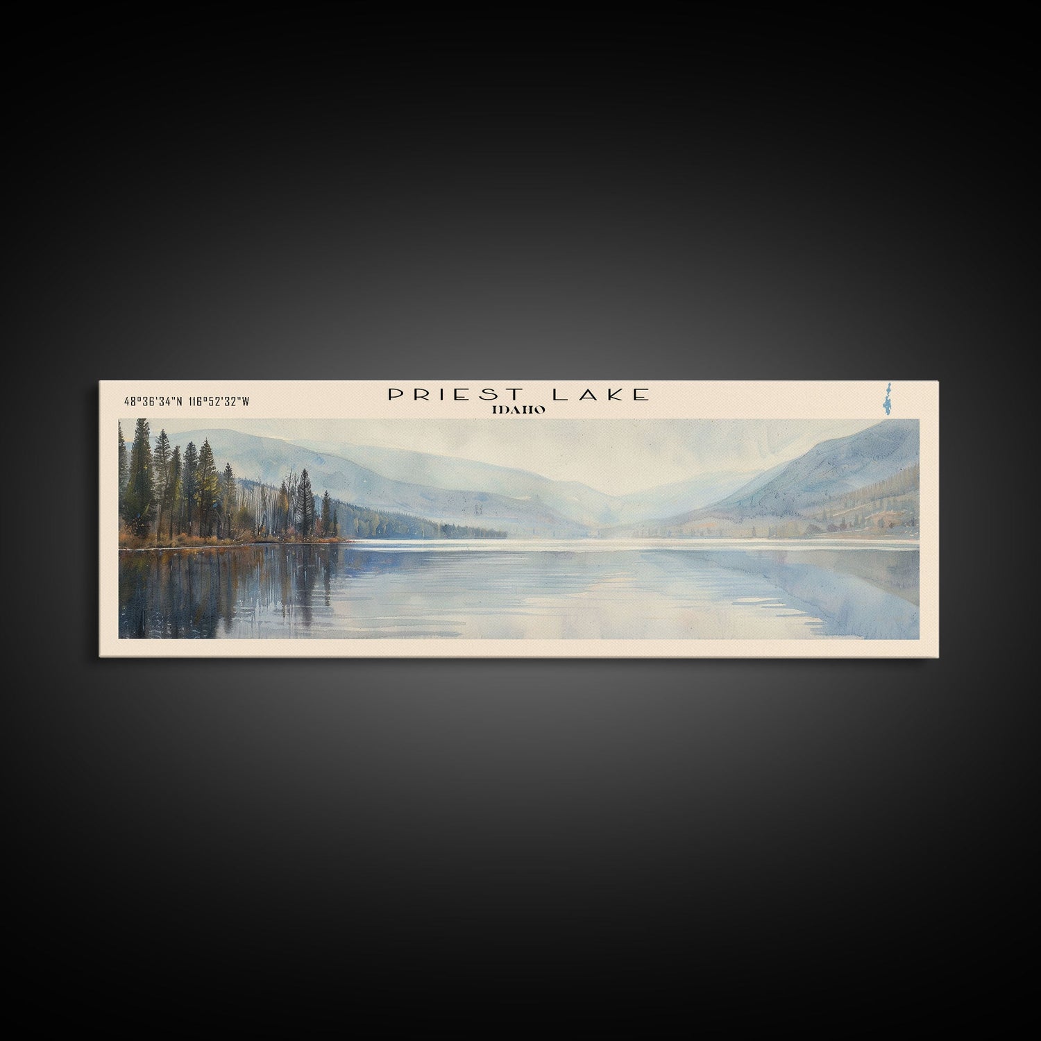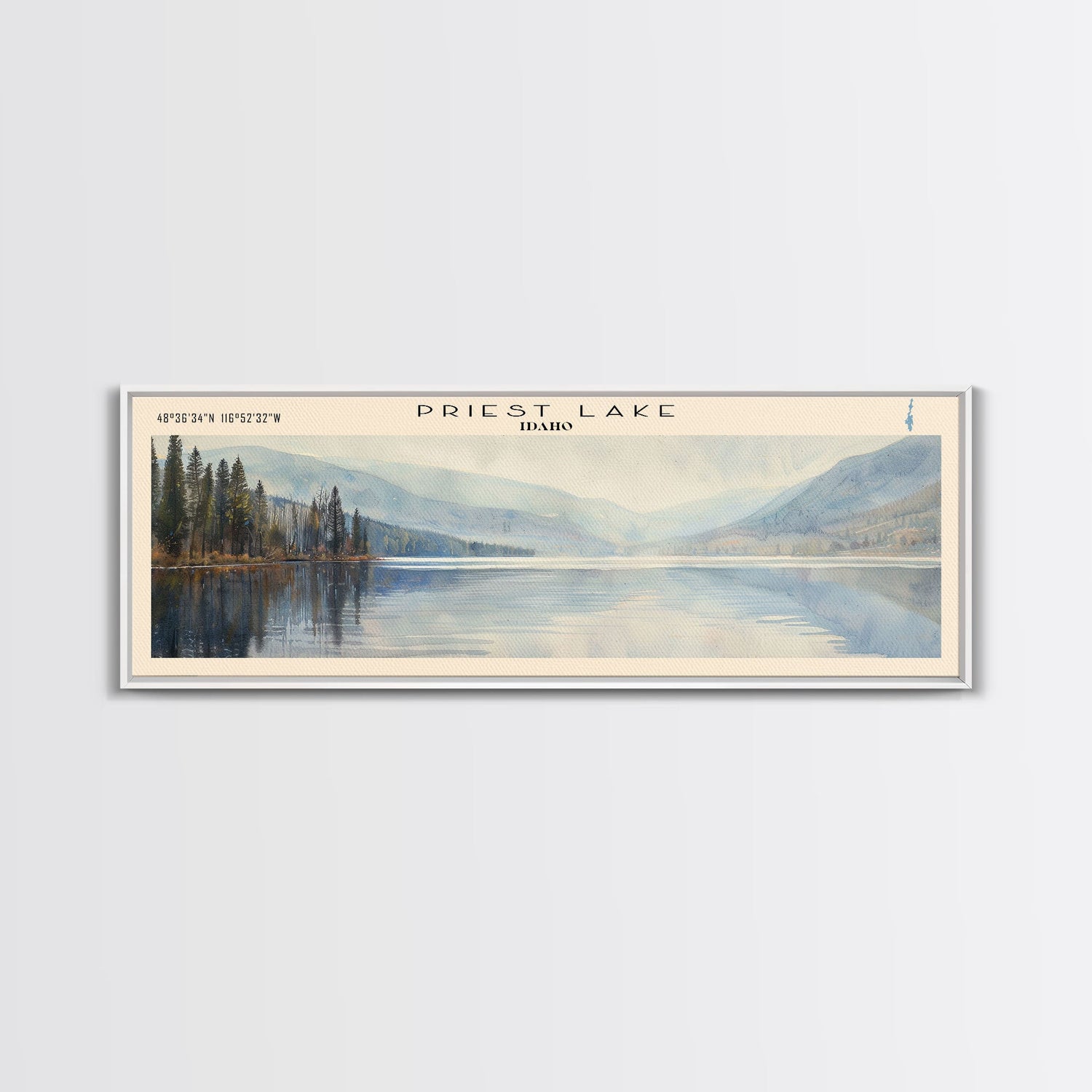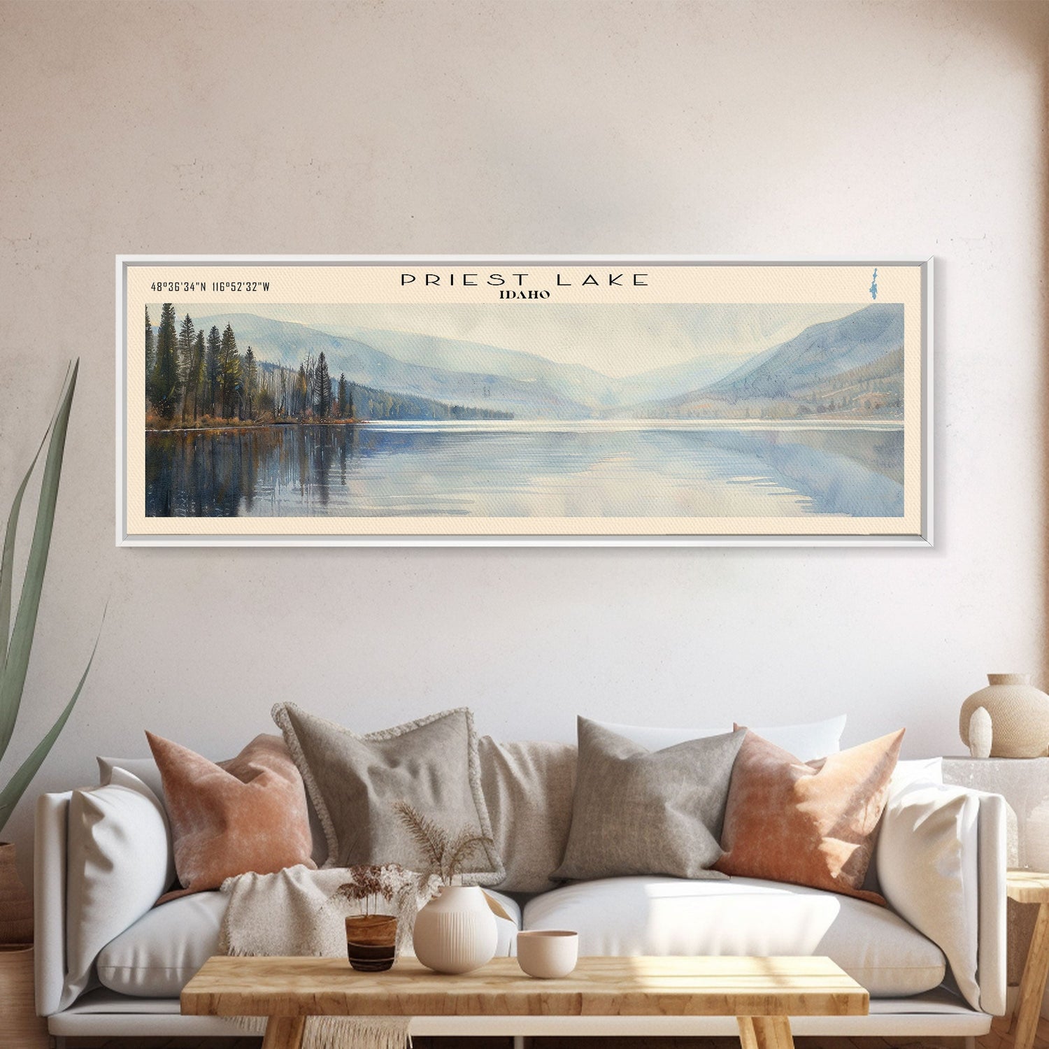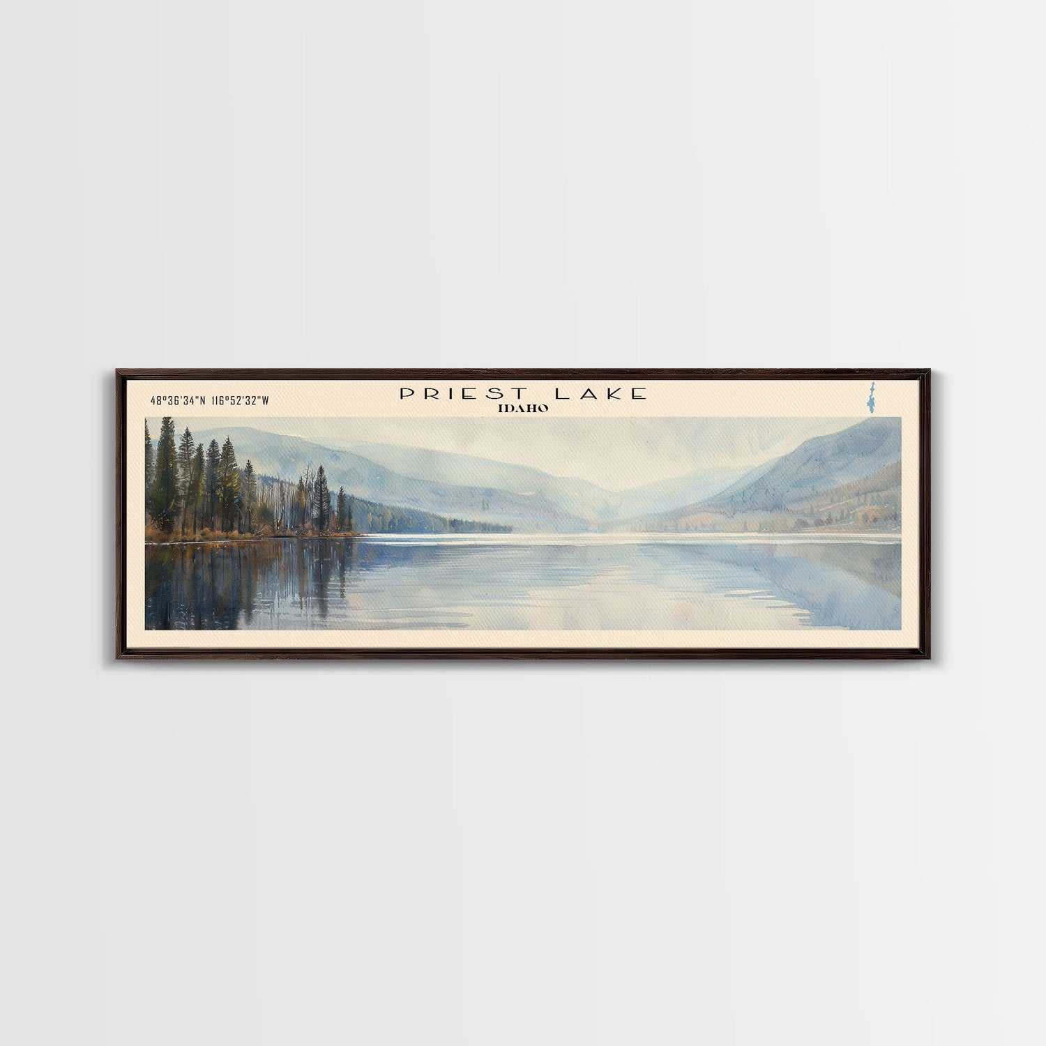 Priest Lake Idaho Framed Canvas Print, Lake House Decor, Panoramic Wall Art, Travel Poster, Beautiful Landscape Painting, Living Room Decor
