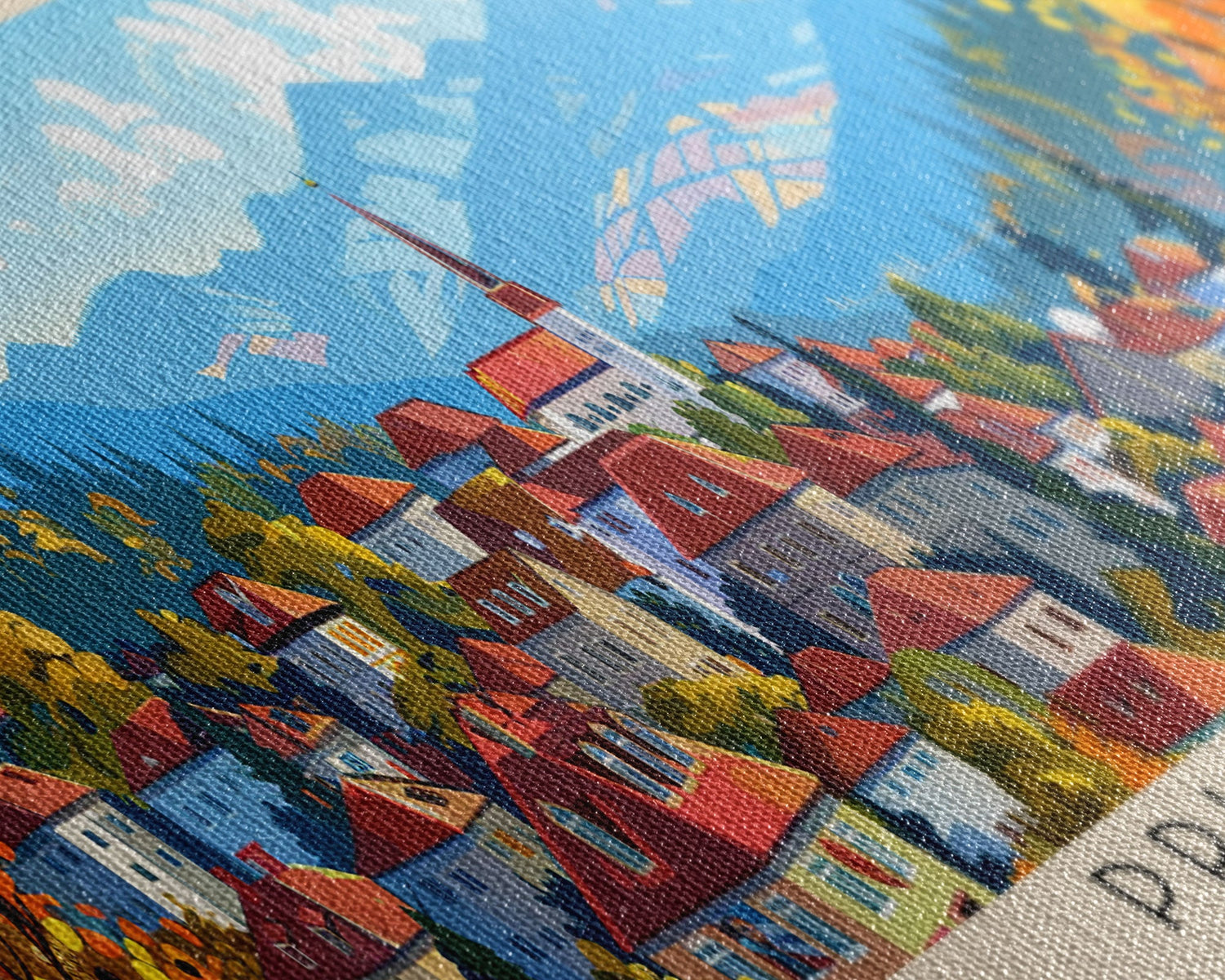 Most of our canvases are made in the USA, with the exception of canvases ordered with the light oak unstained frames, and any large canvases (24x48, 30x60, 16x48 and 20x60) ordered WITH a frame. These are temporarily made in and shipped from Europe, while we try to find a more consistent supplier in the USA.