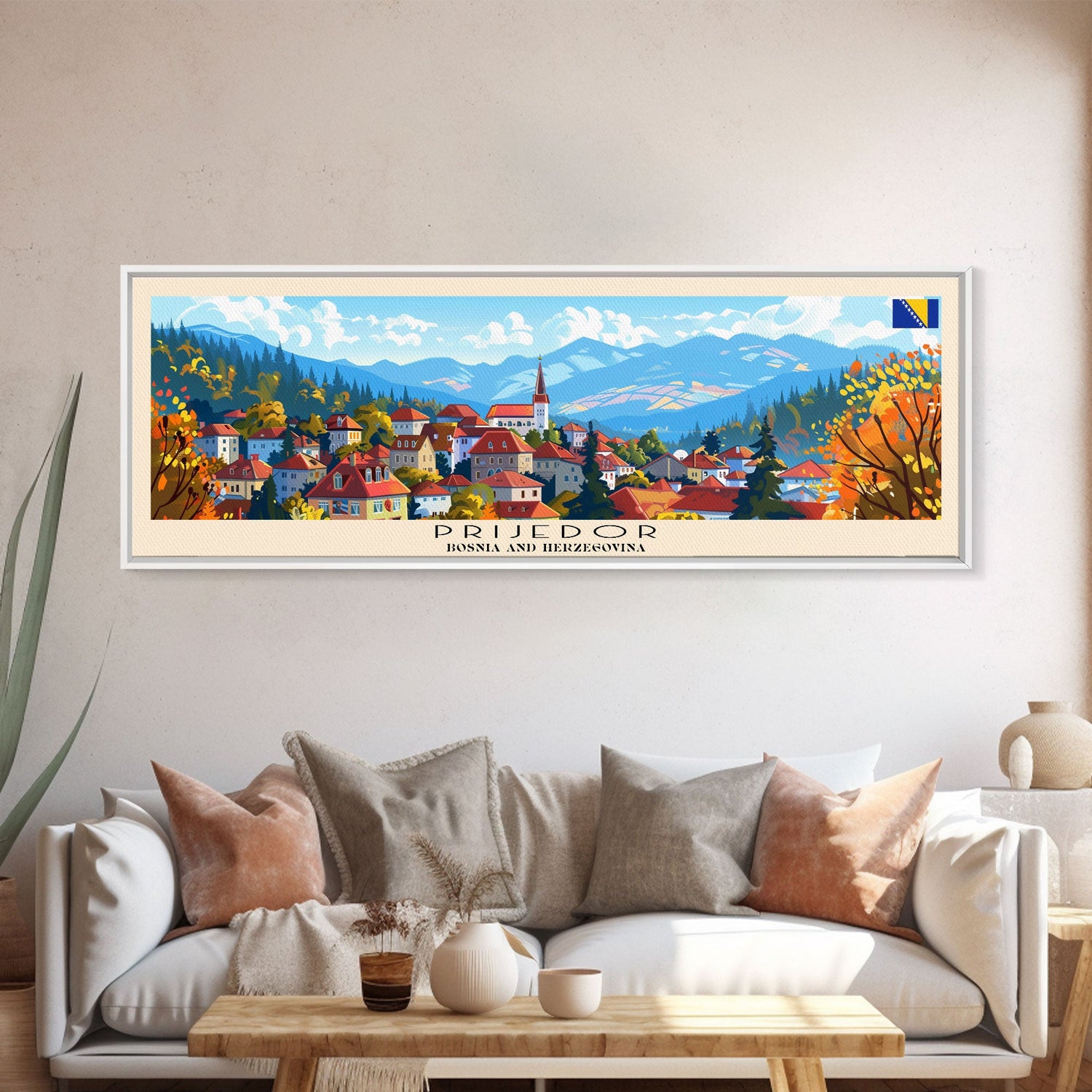 Prijedor Bosnia Travel Art, City Art, Framed Canvas Print or Metal Wall Art, Europe Travel Poster, Panoramic Wall Art, Extra Wide Wall Art