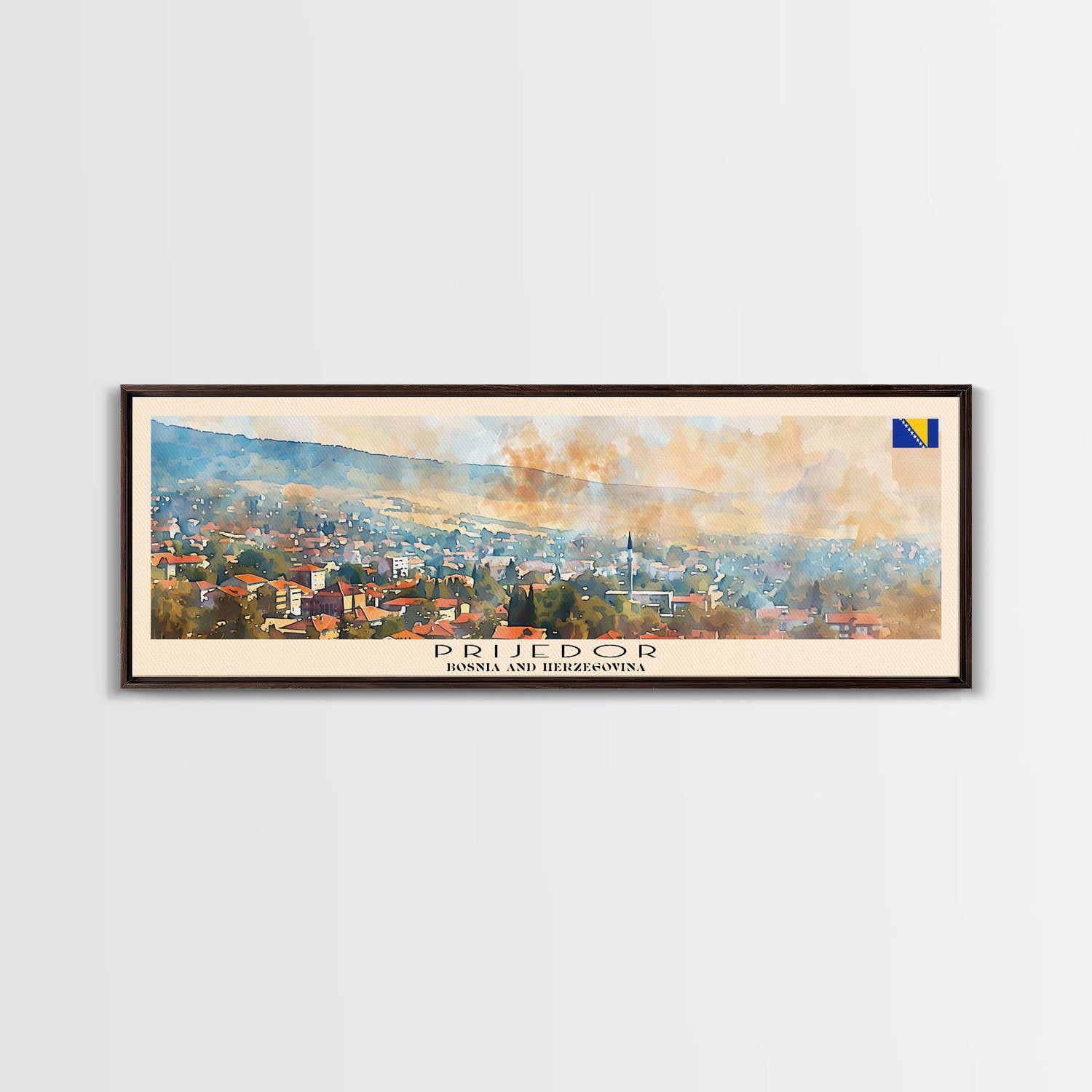 Prijedor Bosnia Travel Art, City Art, Framed Canvas Print or Metal Wall Art, Europe Travel Poster, Panoramic Wall Art, Extra Wide Wall Art