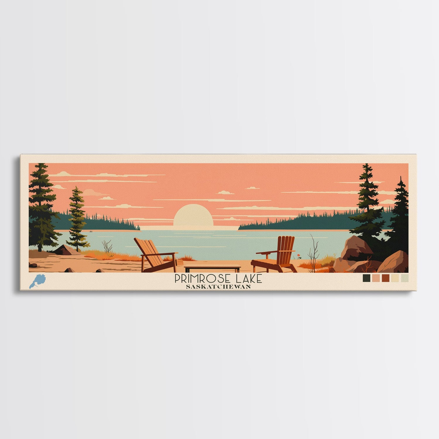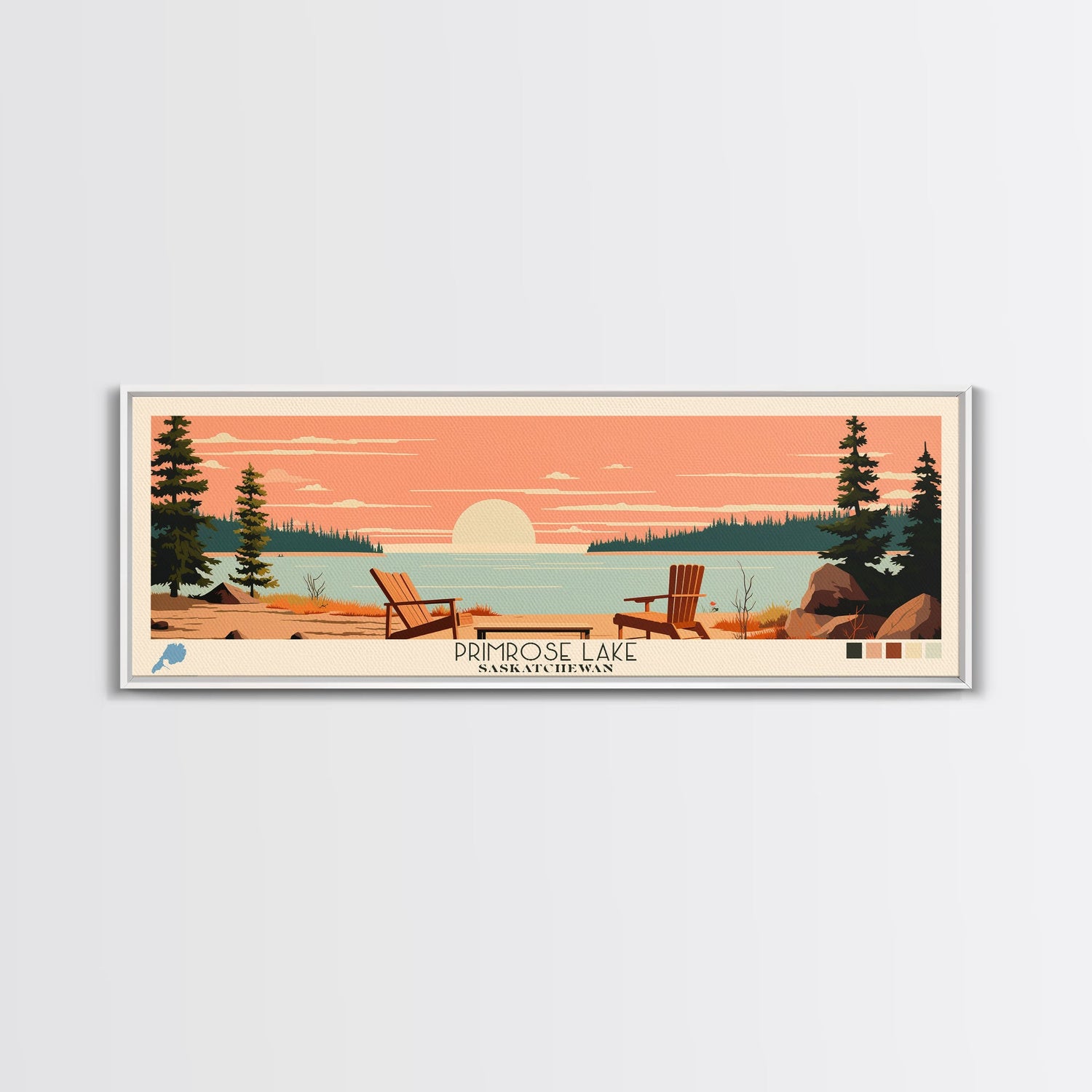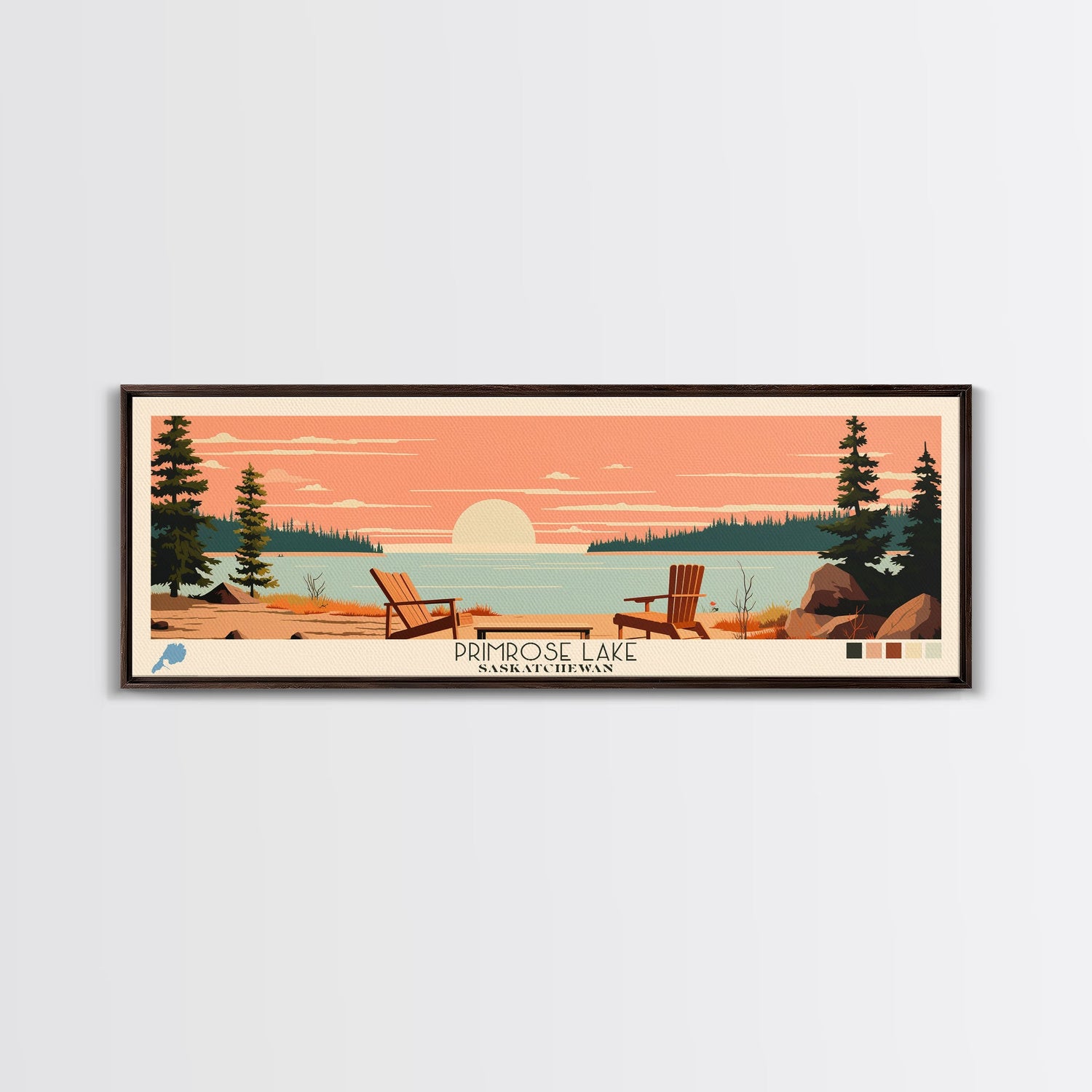 Primrose Lake, Saskatchewan Framed Canvas Print, Home Decor, Midcentury Modern, Panoramic Travel Poster, Pop Art, Wall Art