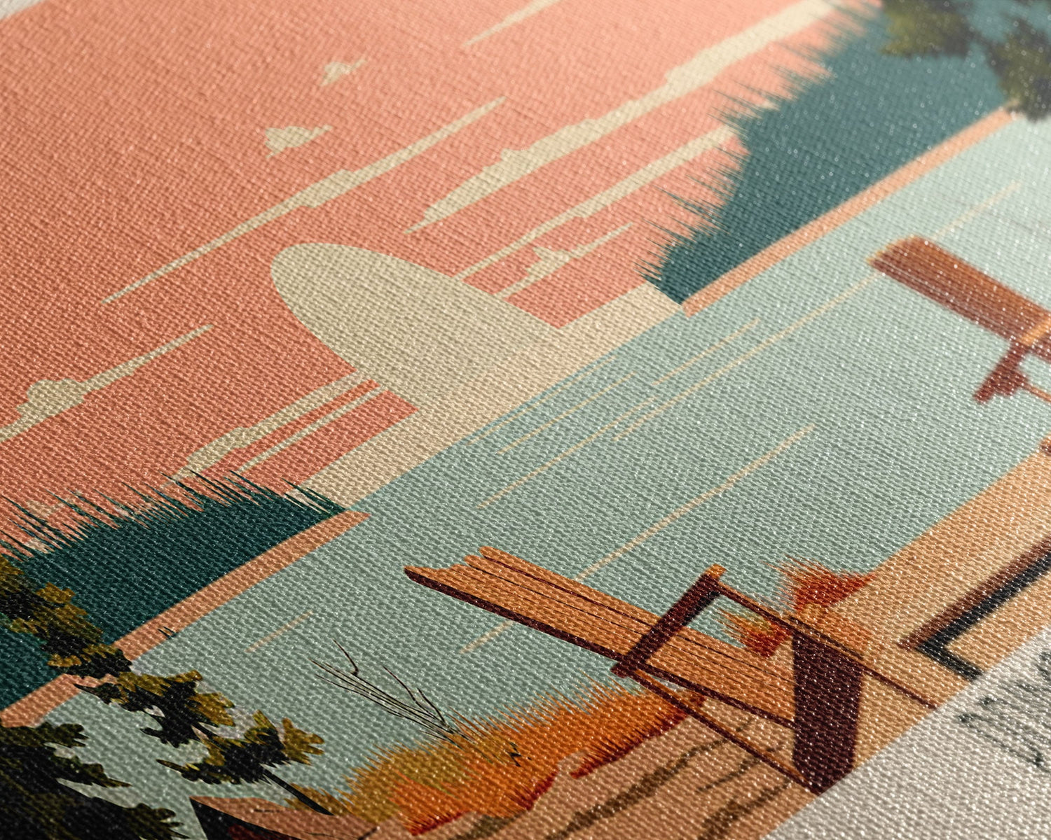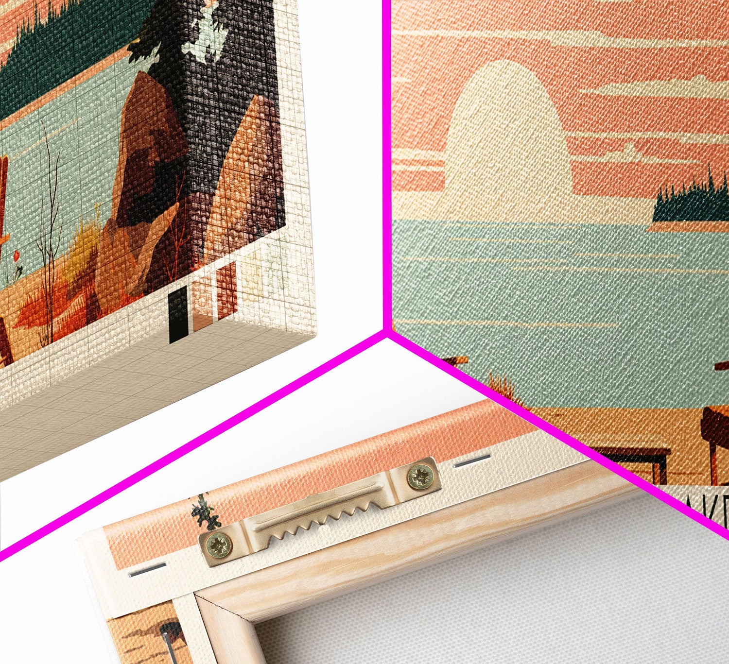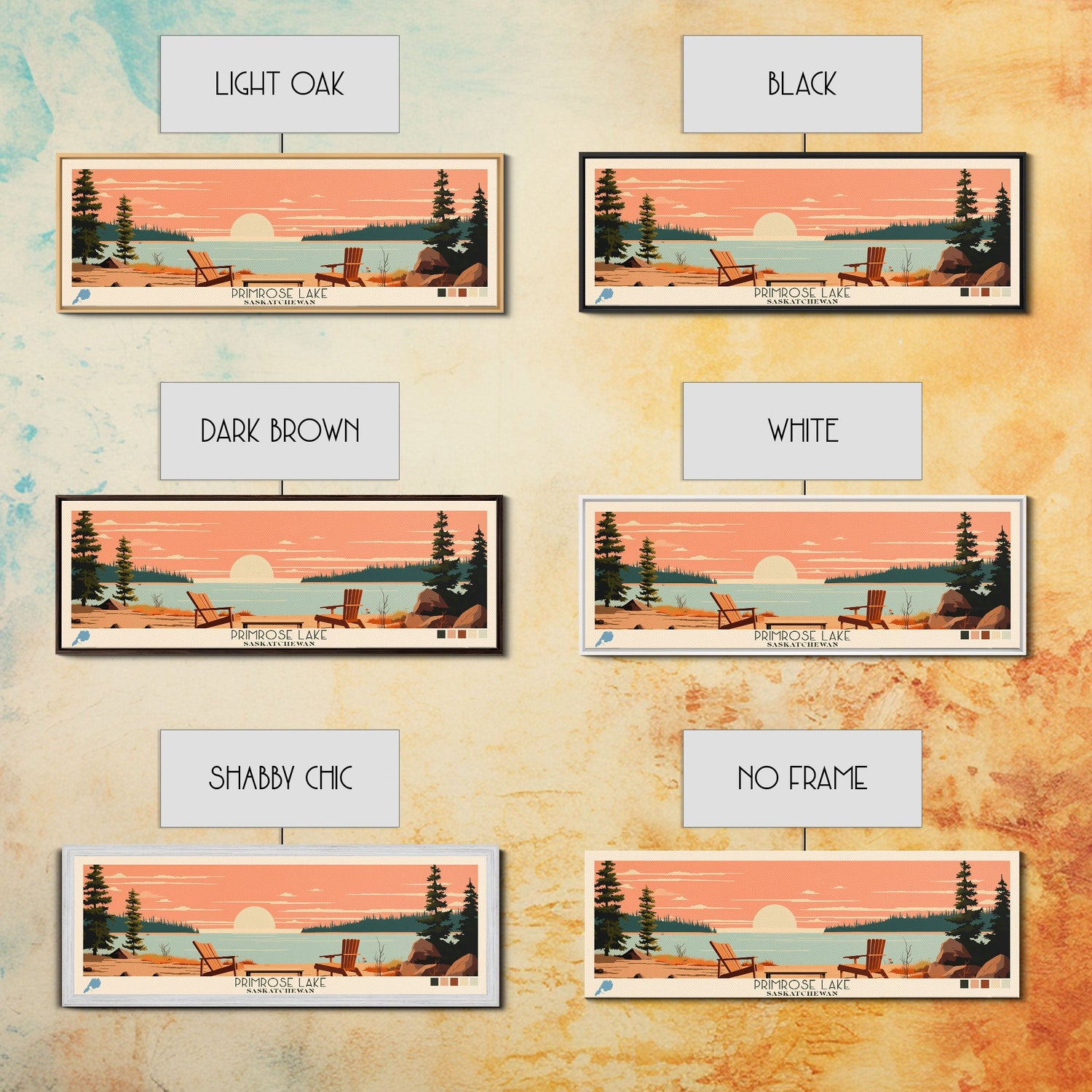Primrose Lake, Saskatchewan Framed Canvas Print, Home Decor, Midcentury Modern, Panoramic Travel Poster, Pop Art, Wall Art