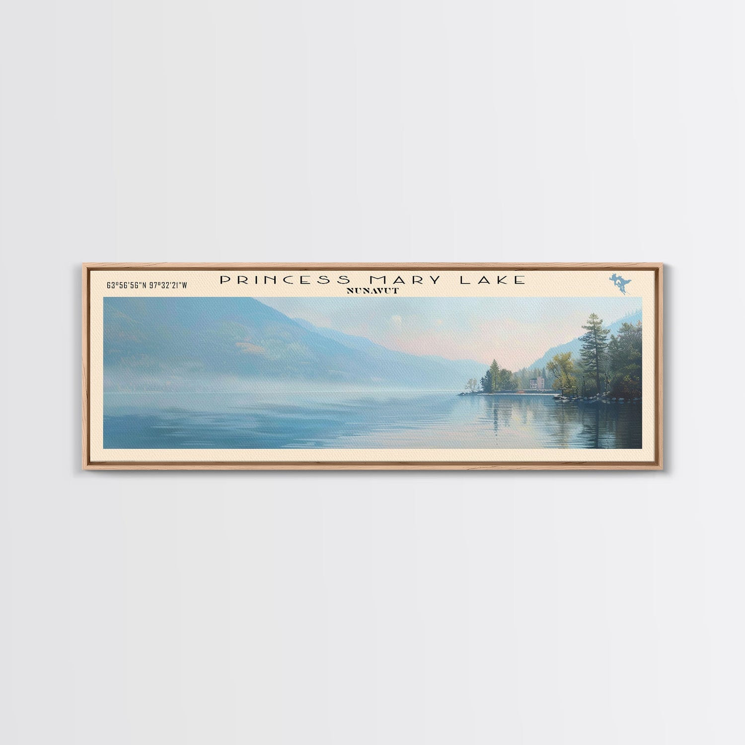 Princess Mary Lake Framed Canvas Print, Lake House Decor, Panoramic Wall Art, Travel Poster, Beautiful Landscape Painting, Contemporary Art