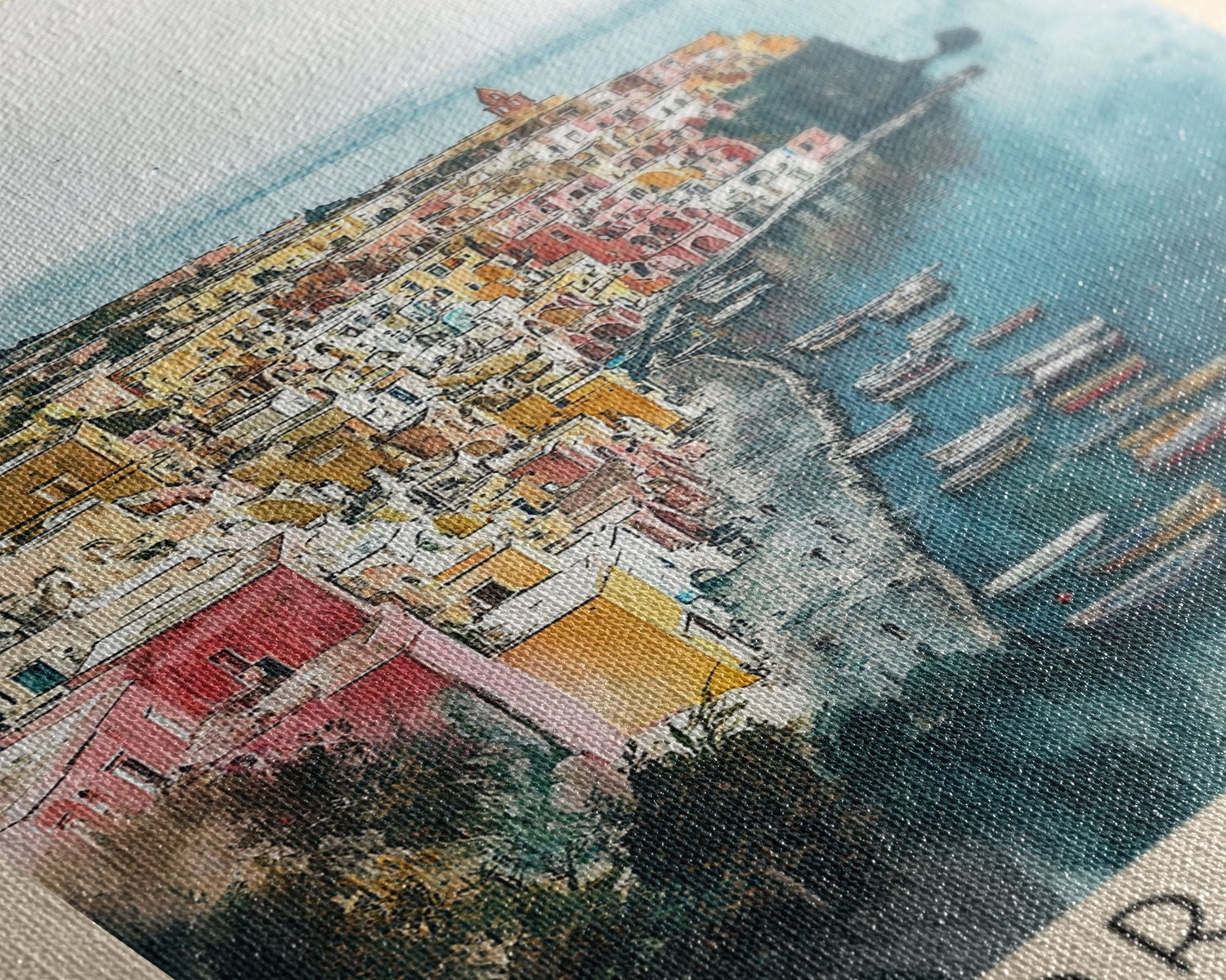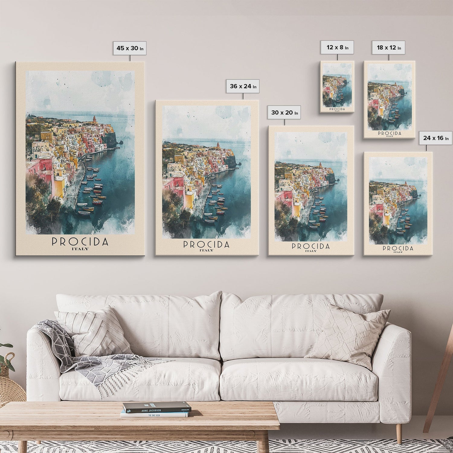 Procida, Italy Watercolor Beach Print, Vacation Gift, Italy Wall Art, Framed Canvas Print, Framed Beach Painting - 8x12 Inches / No Frame - Stretched Canvas Only is backordered and will ship as soon as it is back in stock.