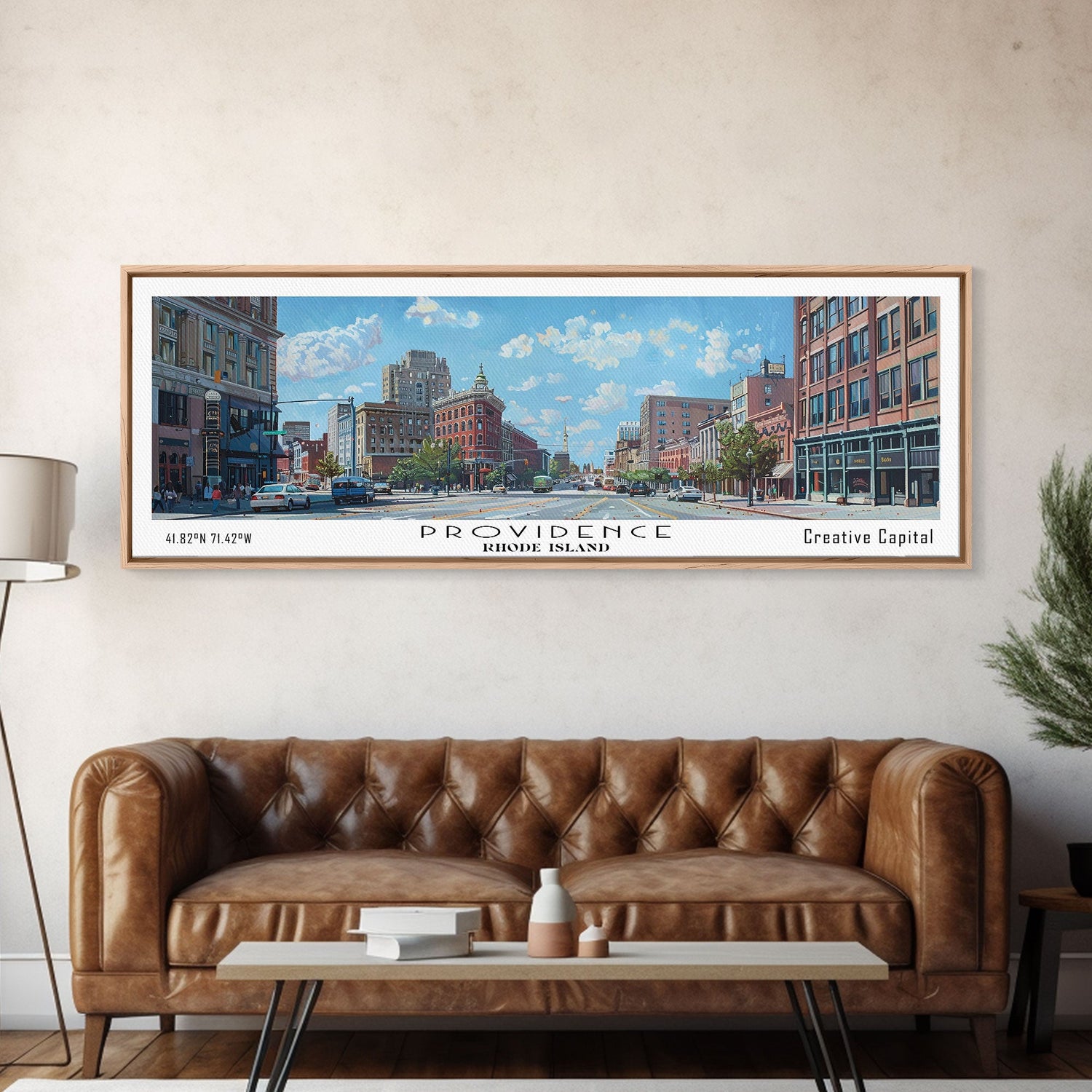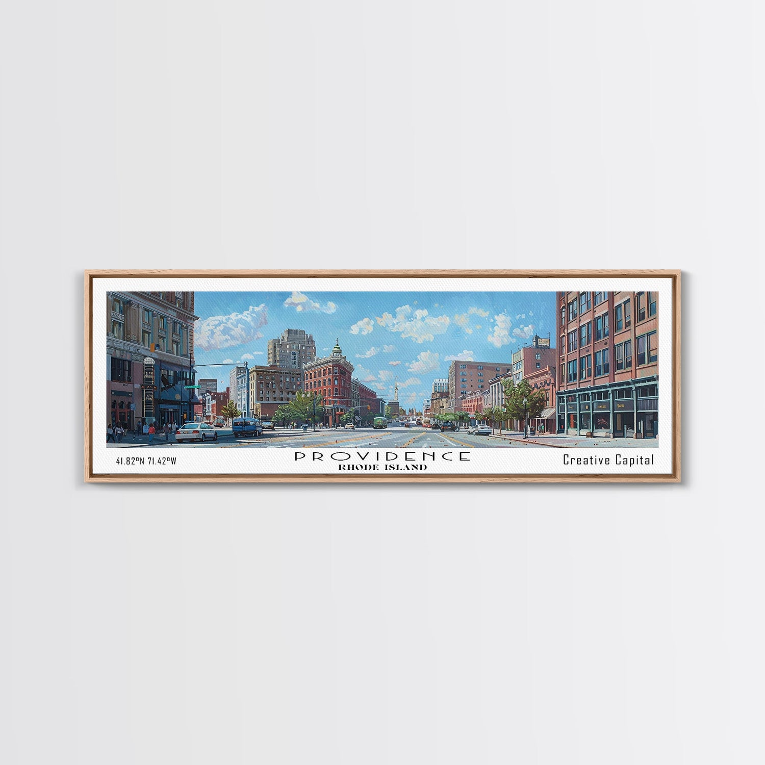 Providence Rhode Island Panoramic Print, Beautiful Framed Canvas Print, Travel Poster Art, Home Decoration, Office Wall Art