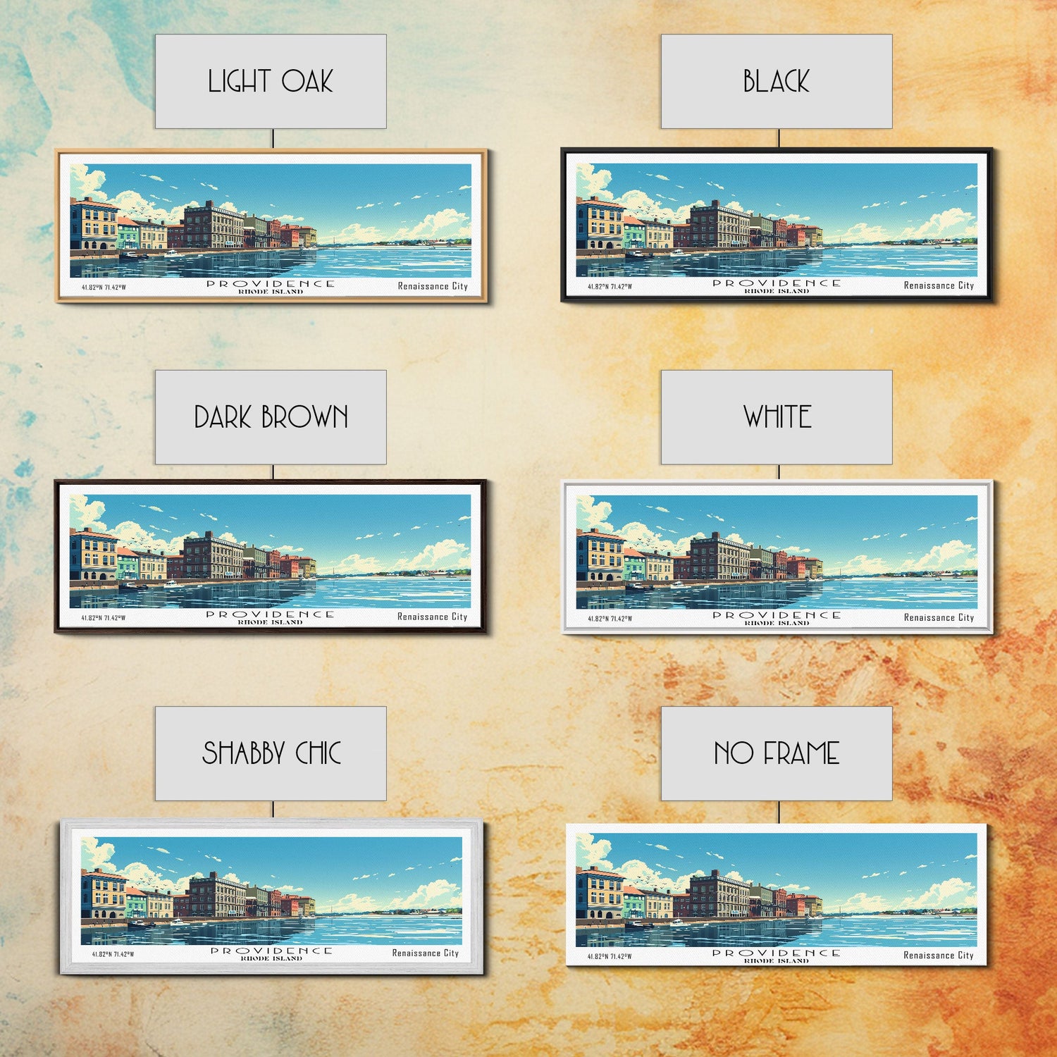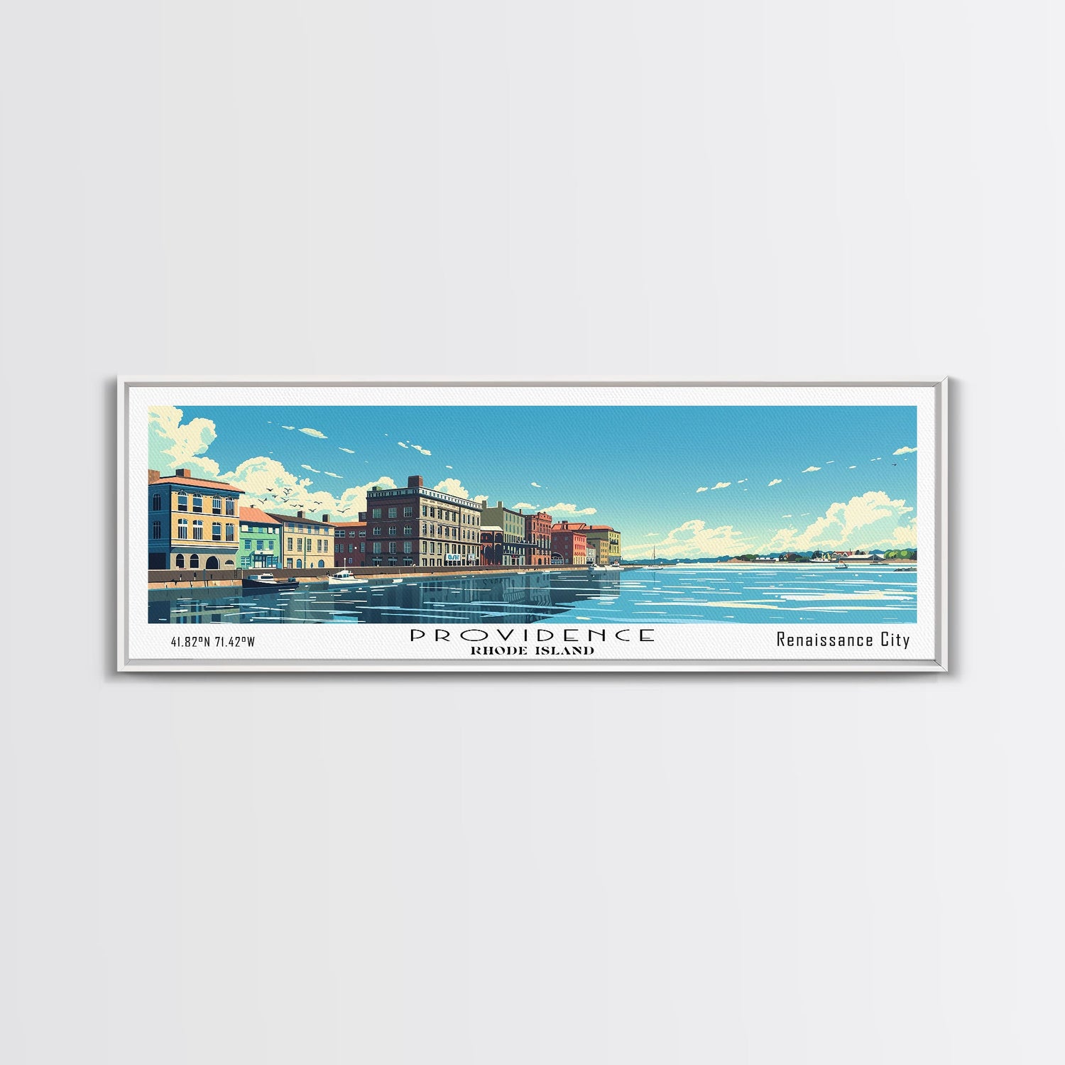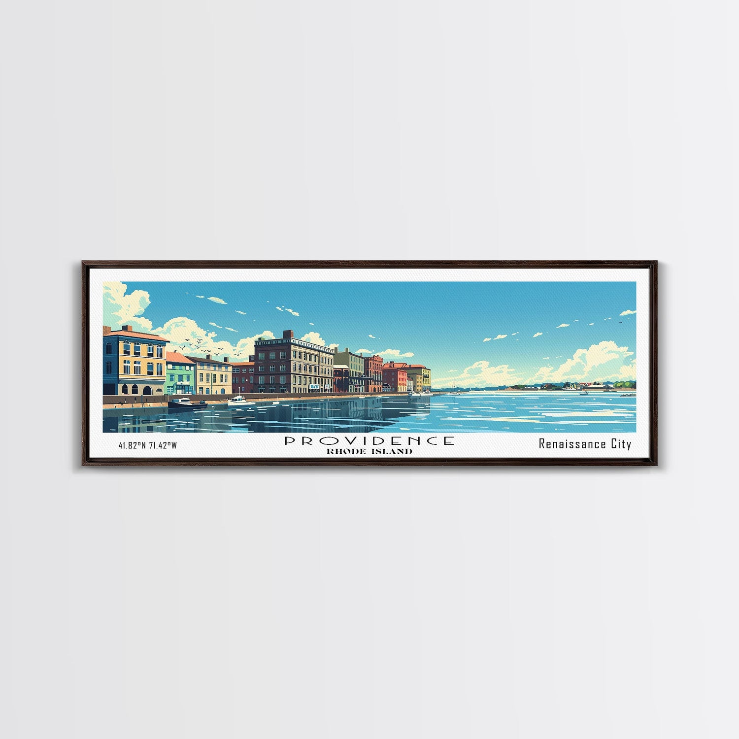 Providence Rhode Island Panoramic Wall Art, Mid Century Modern Framed Canvas Print, Retro Pop Art Travel Poster, City Art, Office Wall Decor, Living Room Art