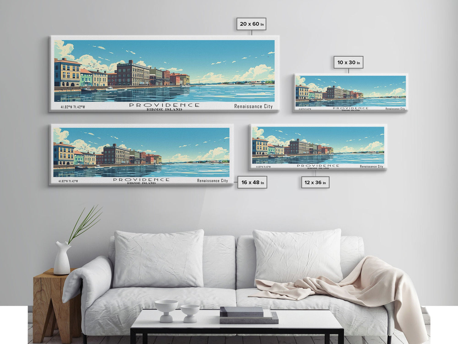 Providence Rhode Island Panoramic Wall Art, Mid Century Modern Framed Canvas Print, Retro Pop Art Travel Poster, City Art, Office Wall Decor, Living Room Art - 10x30 Inches / No Frame - Stretched Canvas Only is backordered and will ship as soon as it is back in stock.