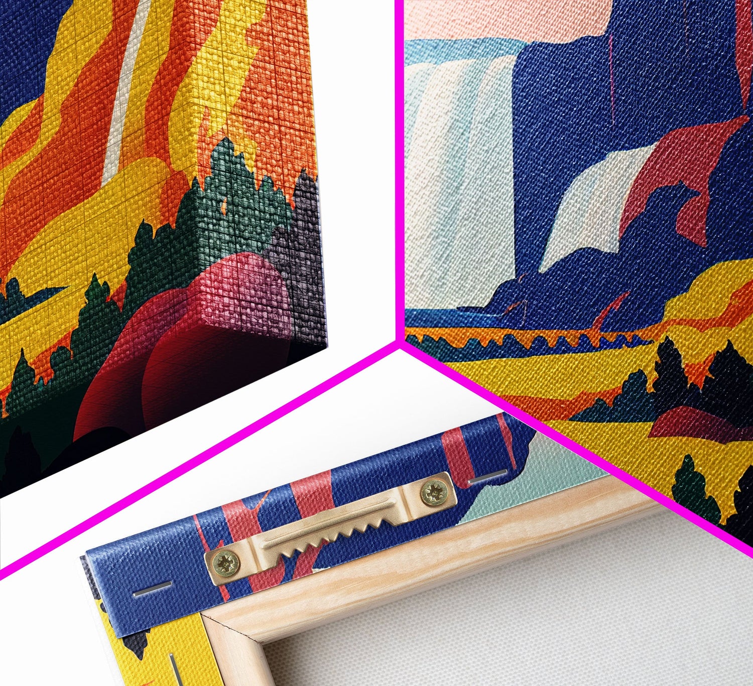 Psychedelic Secret Waterfall, Trippy Abstract Art, Framed Canvas Print, Framed Painting, Colorful Wall Decor