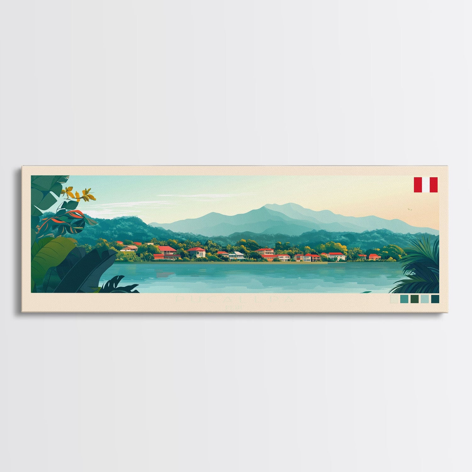 Pucallpa, Peru Travel Poster Panoramic Canvas Print, Pucallpa, Peru Painting, Peru Art, Pucallpa Travel Art, Guest Room Painting - 10x30 Inches / No Frame - Stretched Canvas Only is backordered and will ship as soon as it is back in stock.