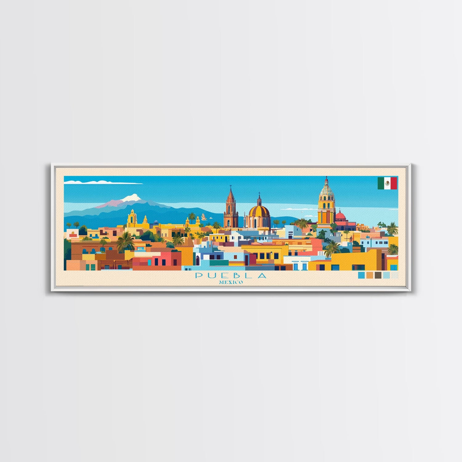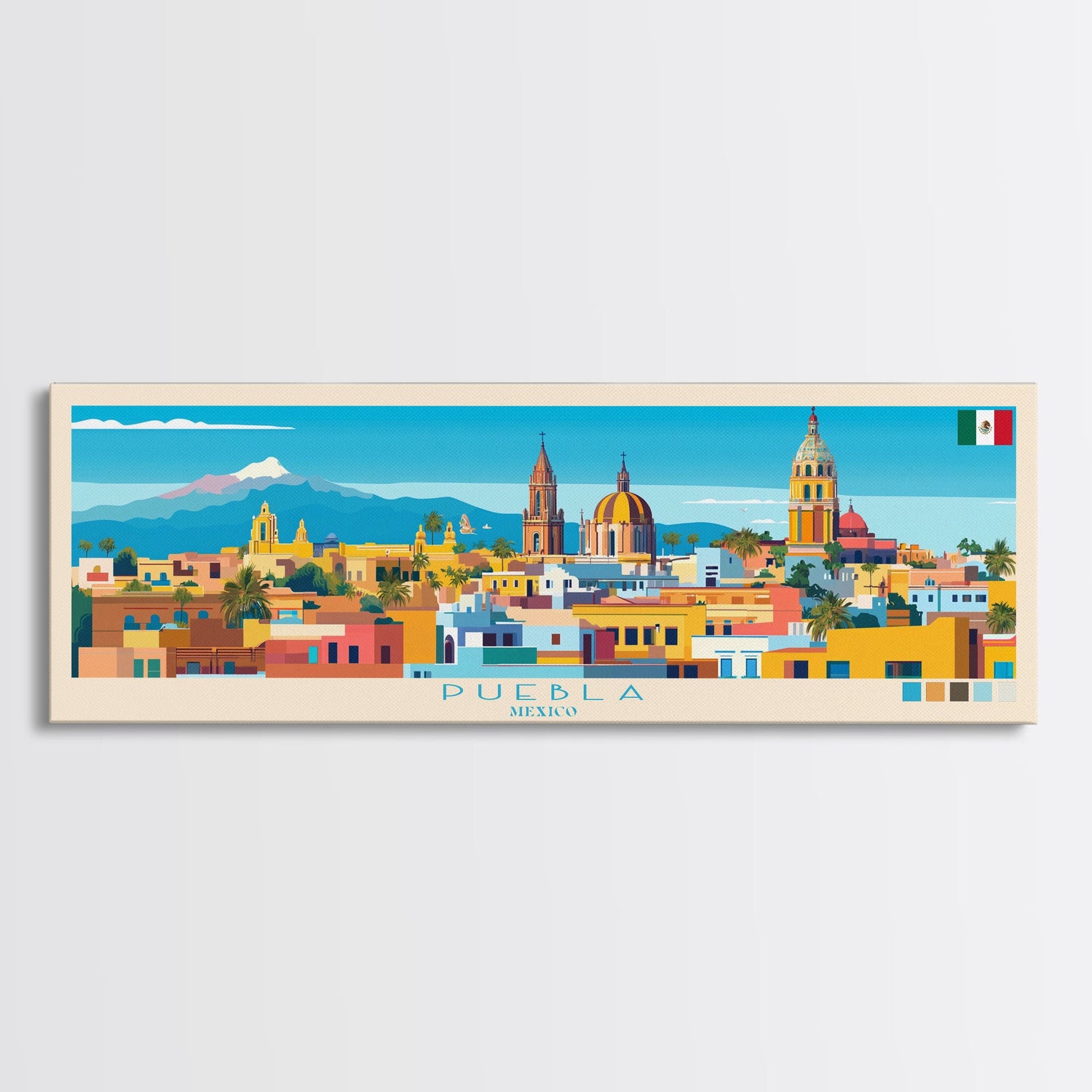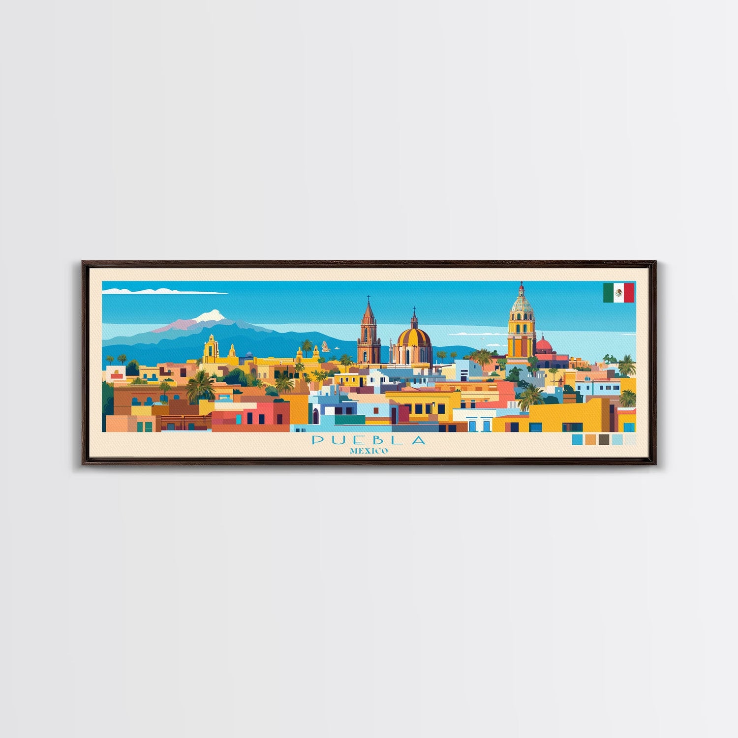 Puebla, Mexico Panoramic Travel Poster Canvas Print, Puebla, Mexico Painting, Mexico Art, Puebla Panoramic Travel Art, Travel Painting - 10x30 Inches / No Frame - Stretched Canvas Only is backordered and will ship as soon as it is back in stock.
