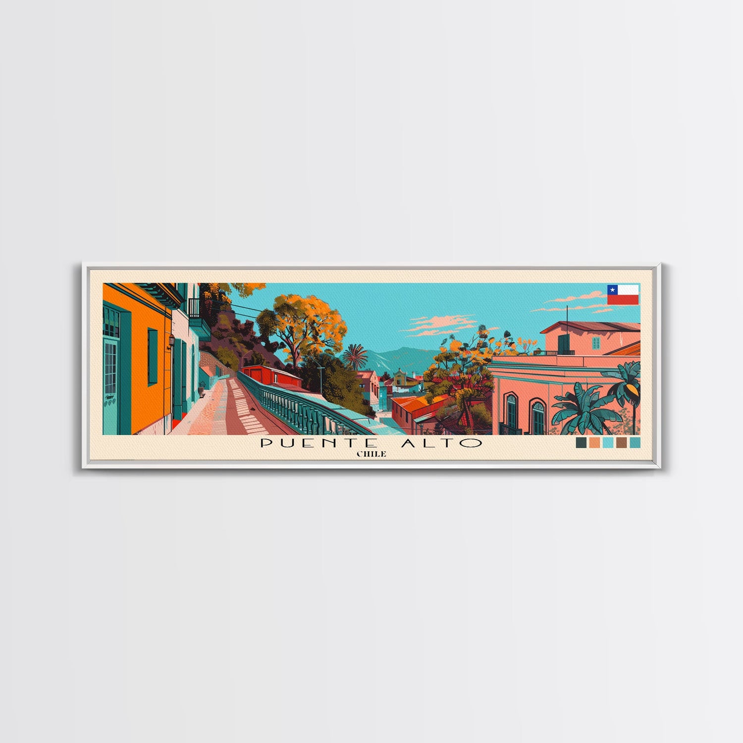 Puente Alto, Chile Panoramic Canvas Print, Puente Alto, Chile Painting, Chile Art, Puente Alto Travel Poster, Travel Art, Housewarming Gift