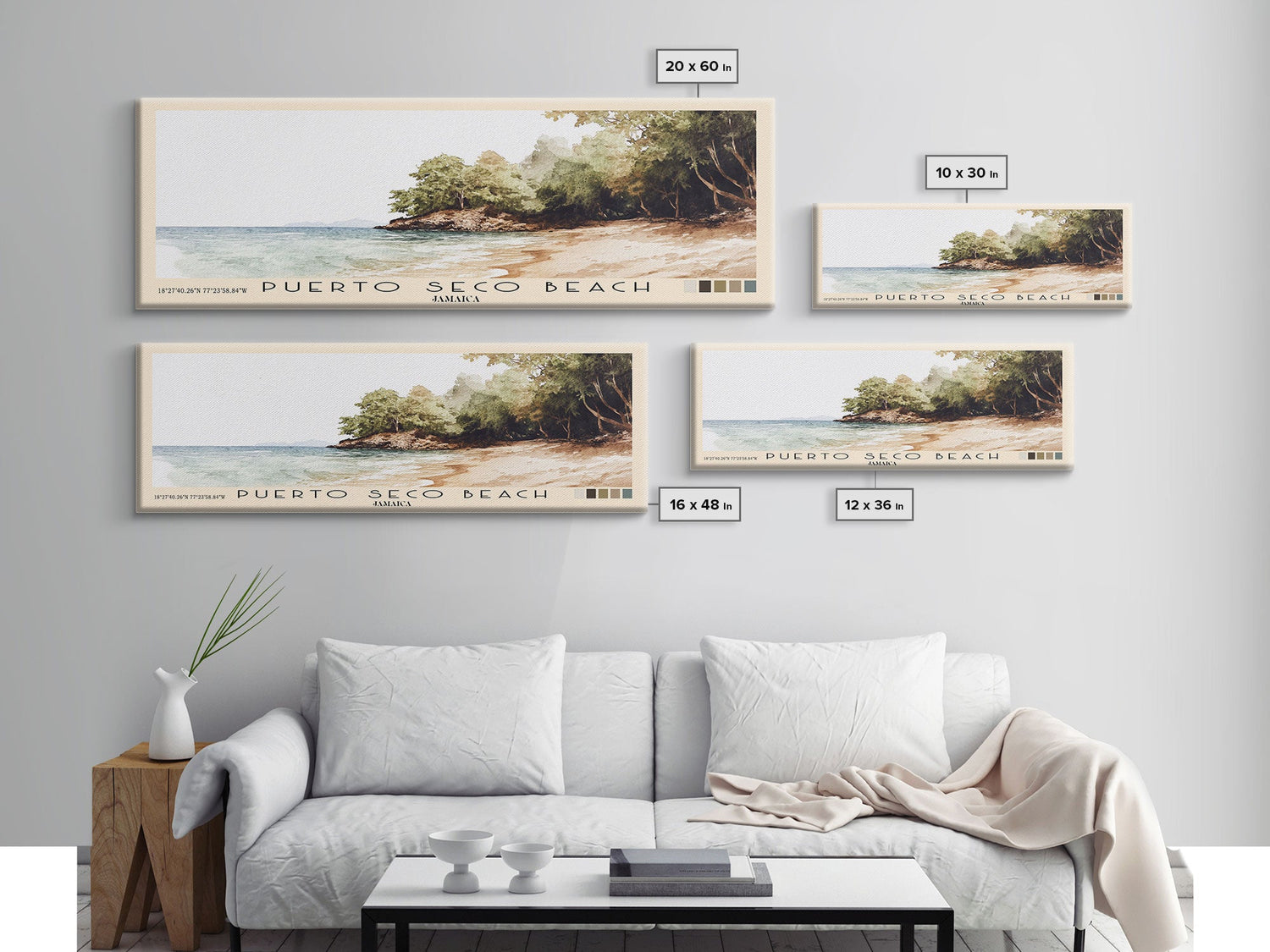 Puerto Seco Beach, Jamaica Watercolor Beach Print, Vacation Gift, Jamaica Wall Art, Framed Canvas Print, Framed Beach Painting - 10x30 Inches / No Frame - Stretched Canvas Only is backordered and will ship as soon as it is back in stock.