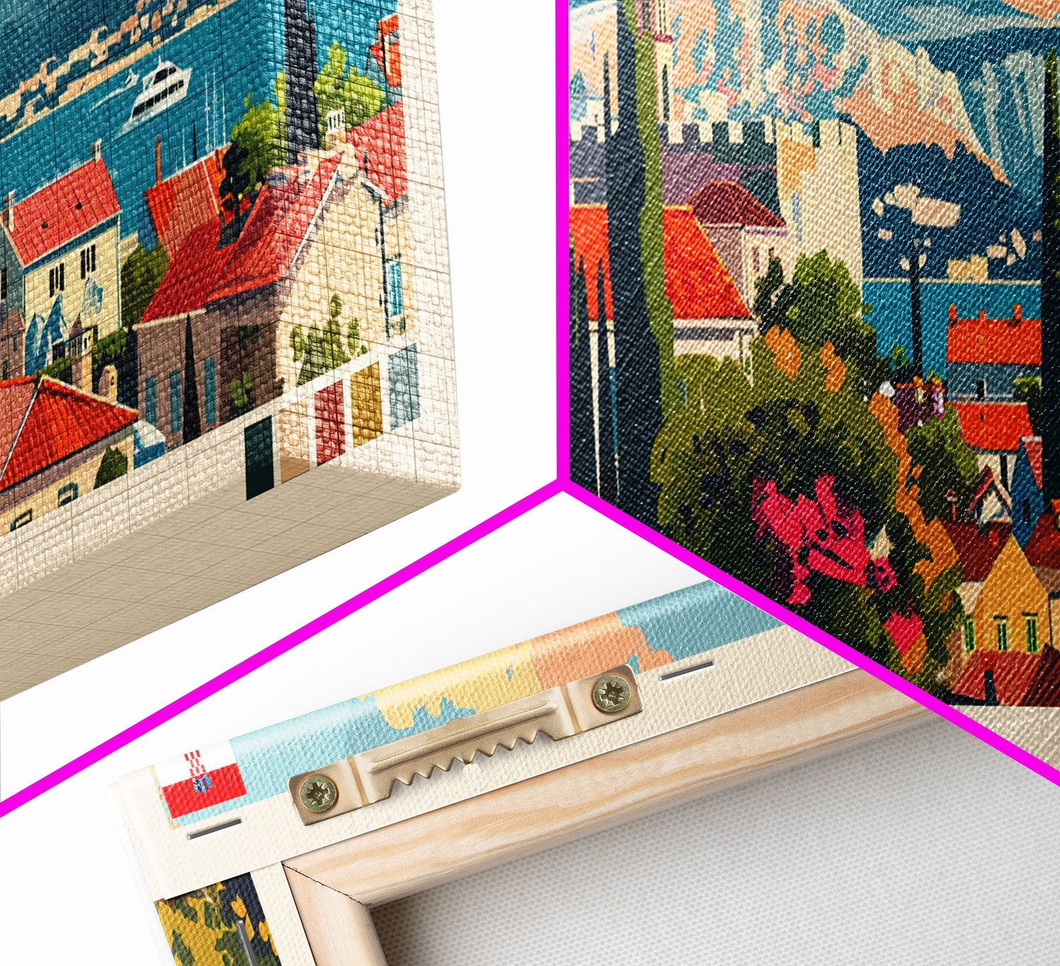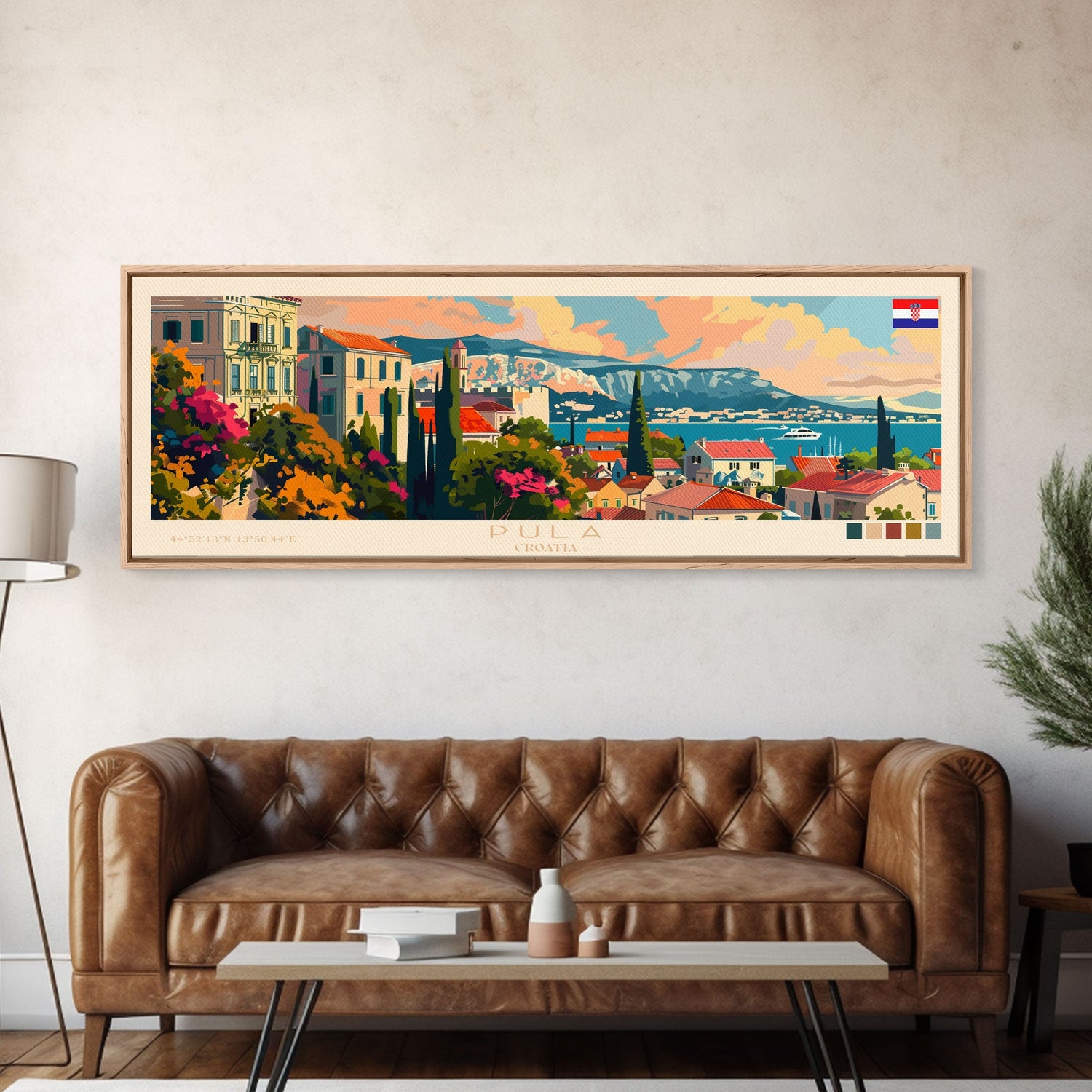 Pula Croatia Panoramic Travel Poster, Framed Canvas Print or Metal Wall Art, Travel Art, Home Decor, Panoramic Painting, Midcentury Art