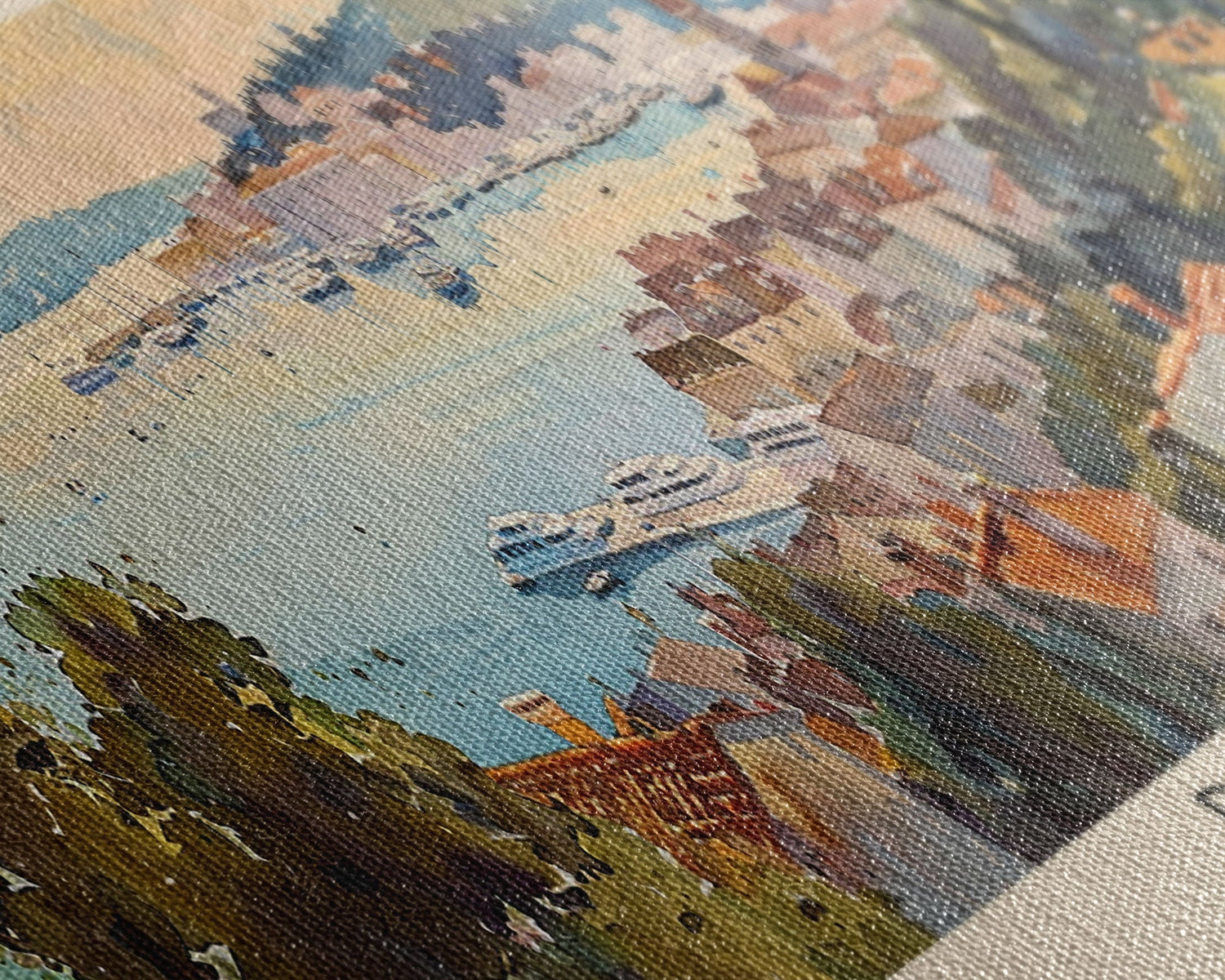 Most of our canvases are made in the USA, with the exception of canvases ordered with the light oak unstained frames, and any large canvases (24x48, 30x60, 16x48 and 20x60) ordered WITH a frame. These are temporarily made in and shipped from Europe, while we try to find a more consistent supplier in the USA.