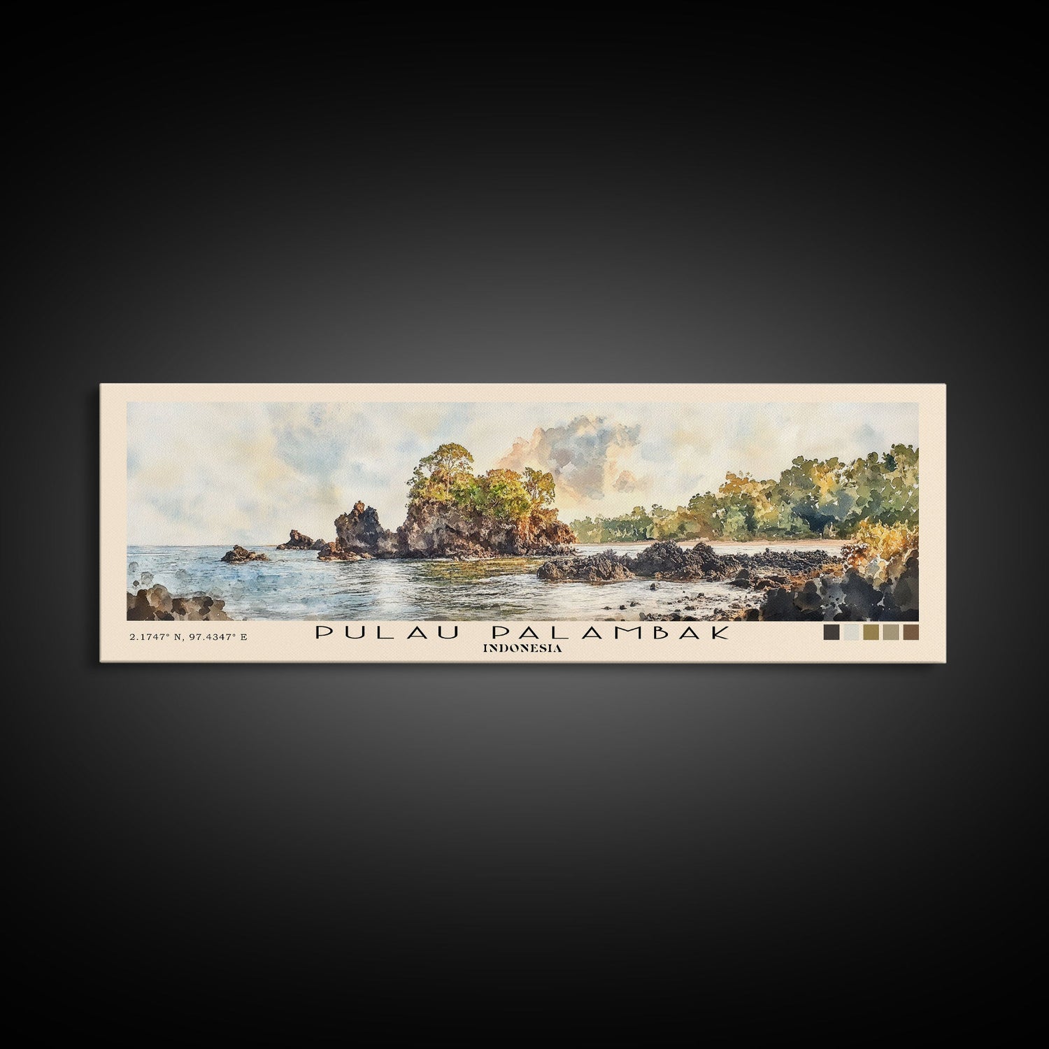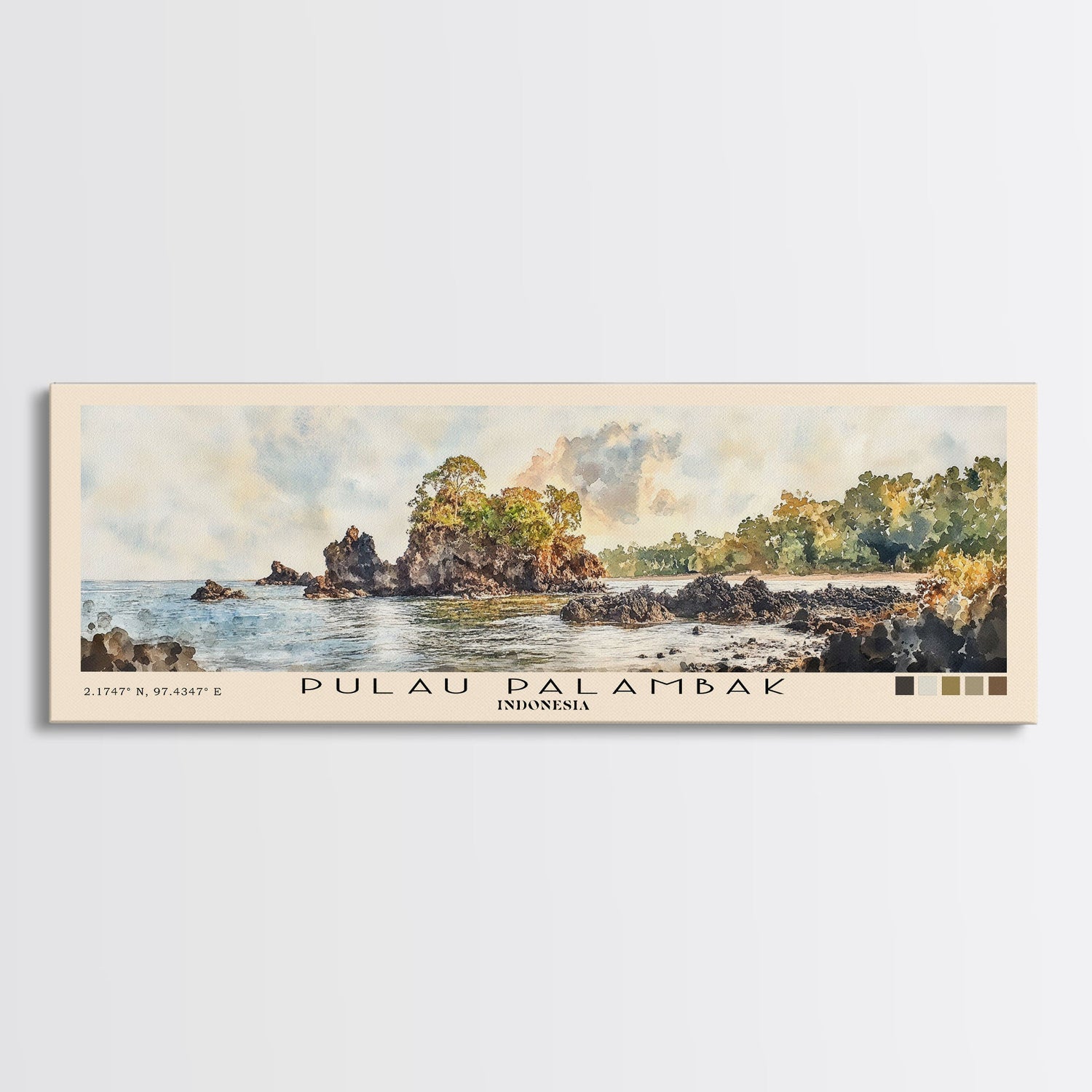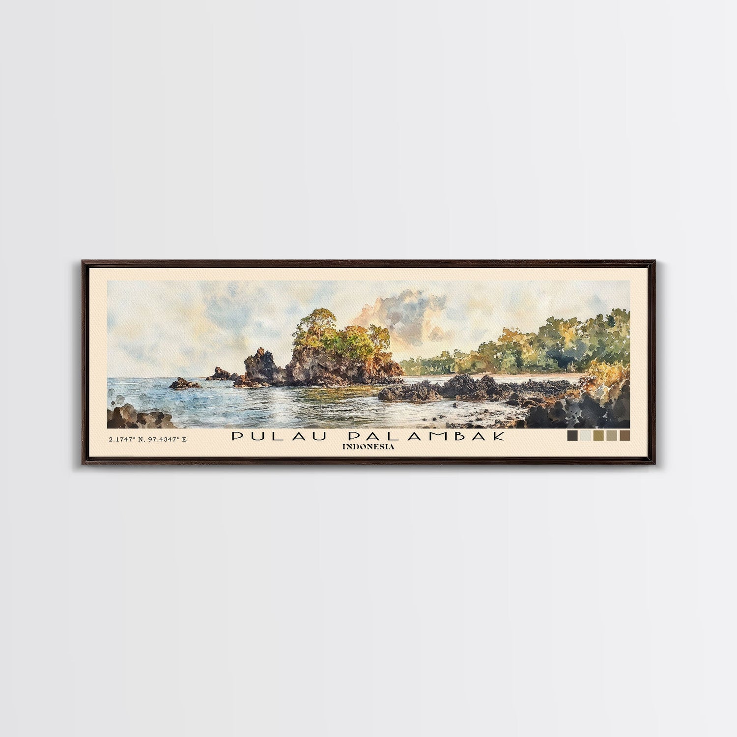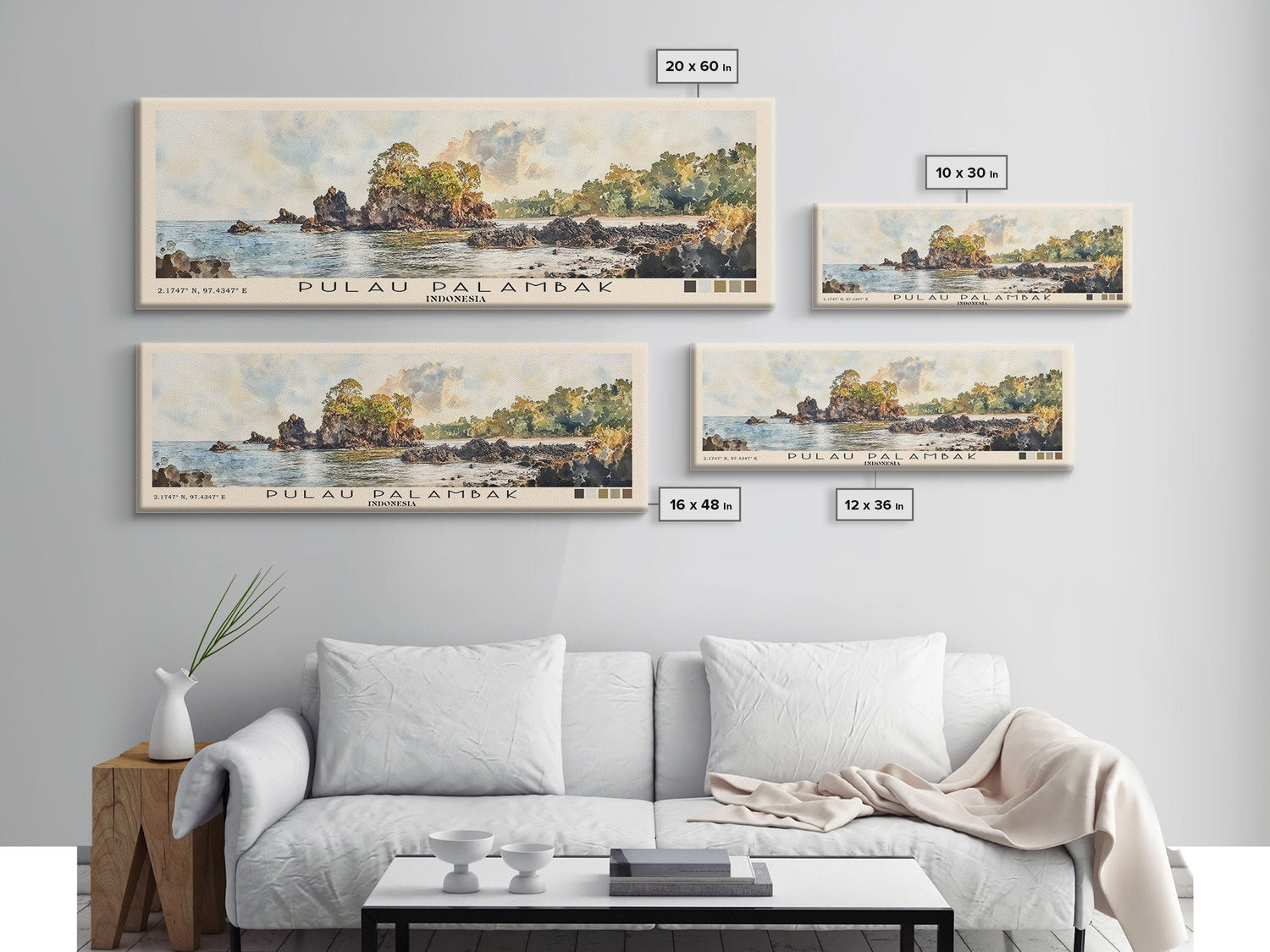 Pulau Palambak, Indonesia Watercolor Print, Vacation Gift, Indonesia Wall Art, Beach Painting, Beach Decor, Large Wall Art, Wood Frame Art - 10x30 Inches / No Frame - Stretched Canvas Only is backordered and will ship as soon as it is back in stock.