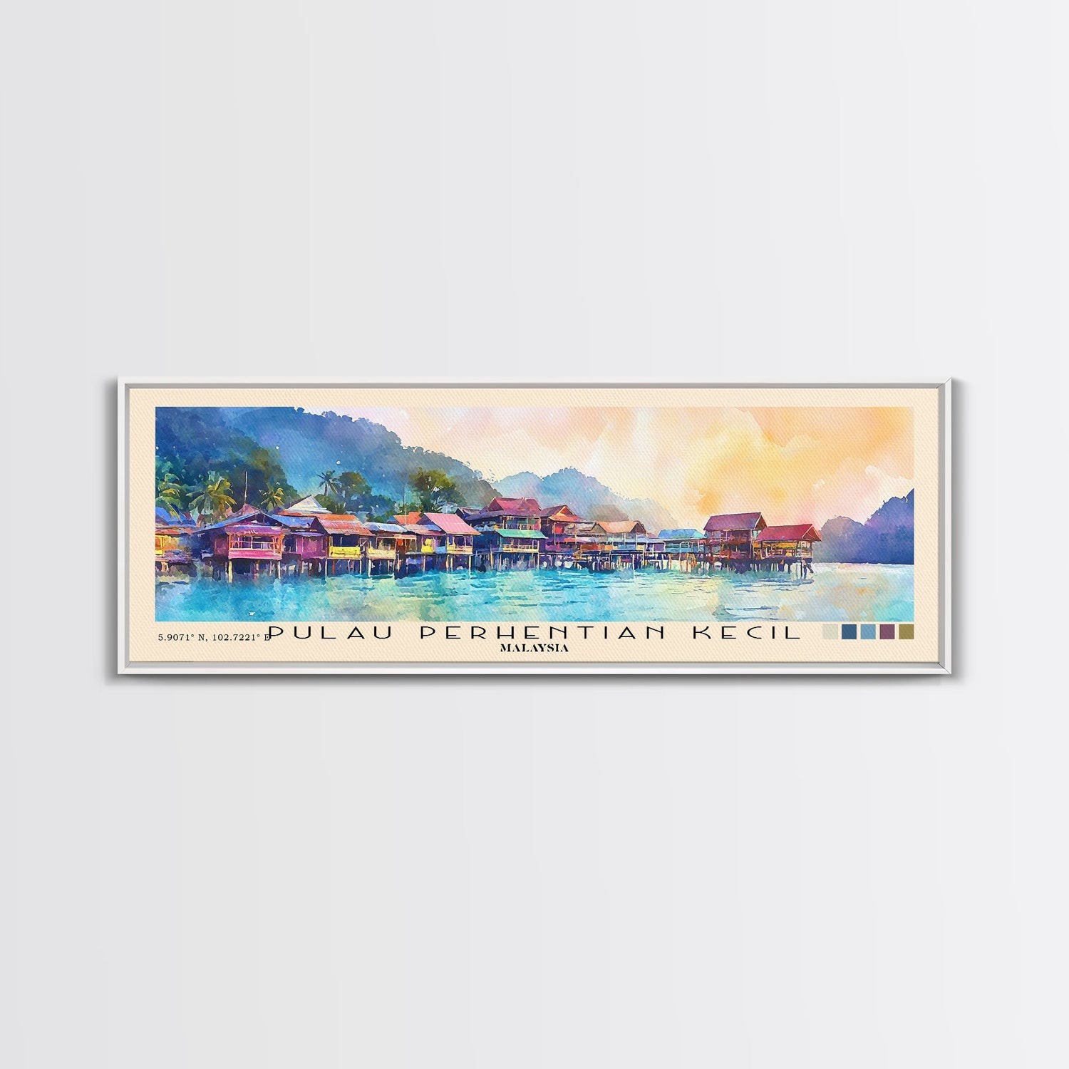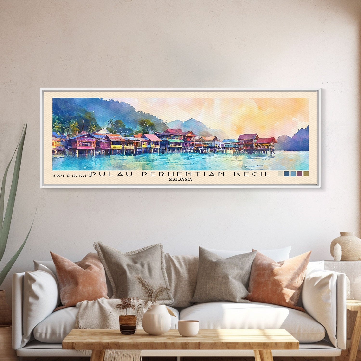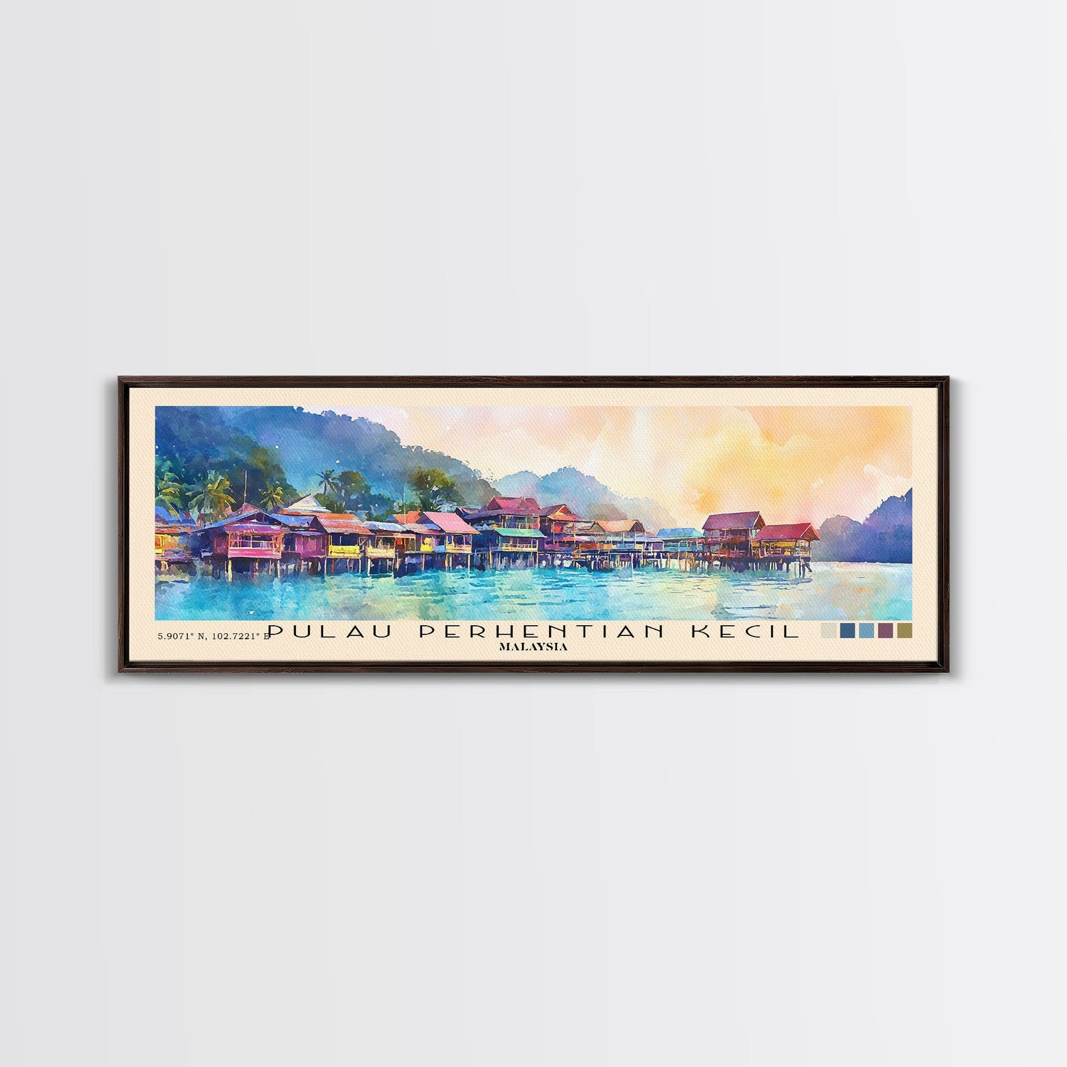 Pulau Perhentian Kecil, Malaysia Watercolor Beach Print, Vacation Gift, Malaysia Wall Art, Framed Canvas Print, Framed Beach Painting - 10x30 Inches / No Frame - Stretched Canvas Only is backordered and will ship as soon as it is back in stock.