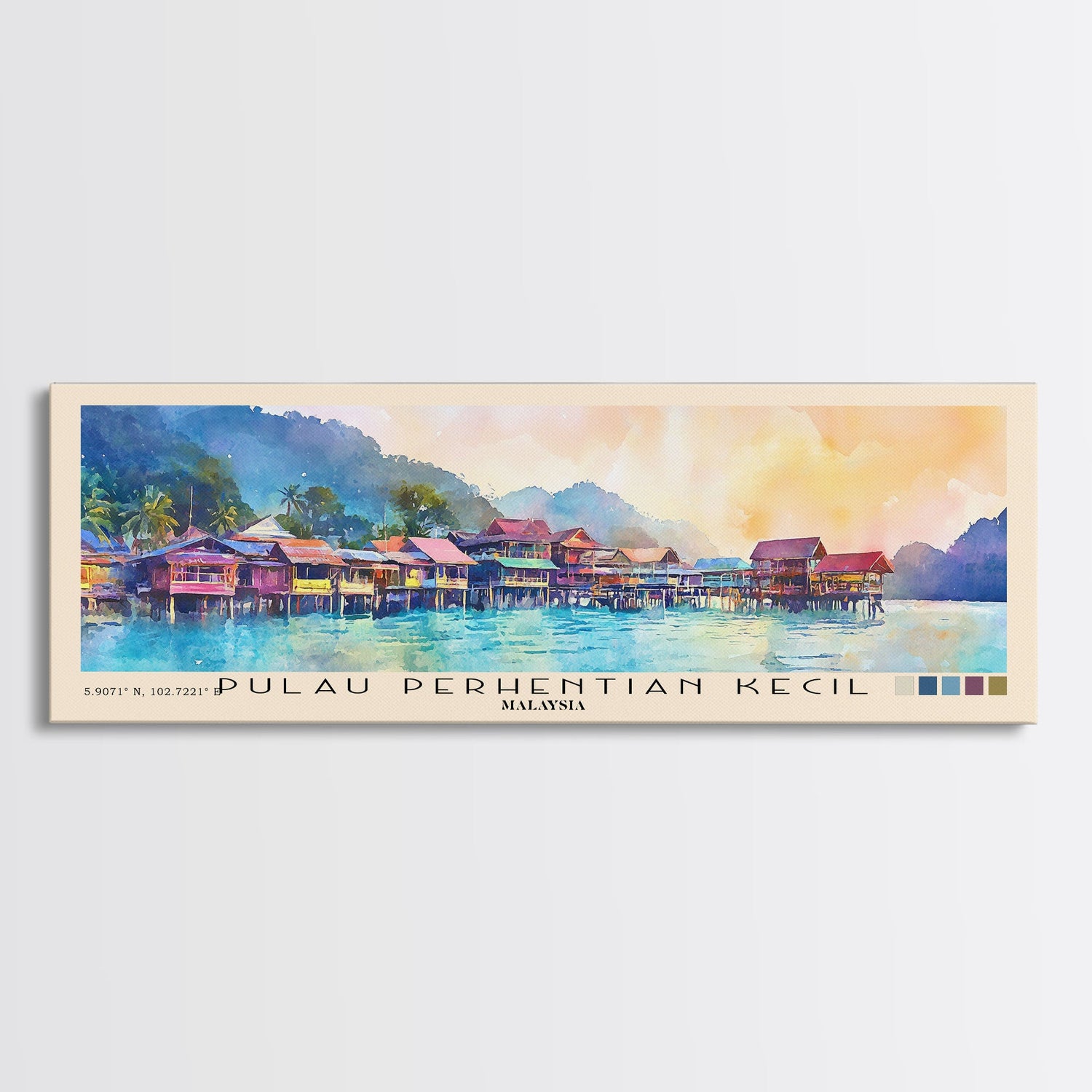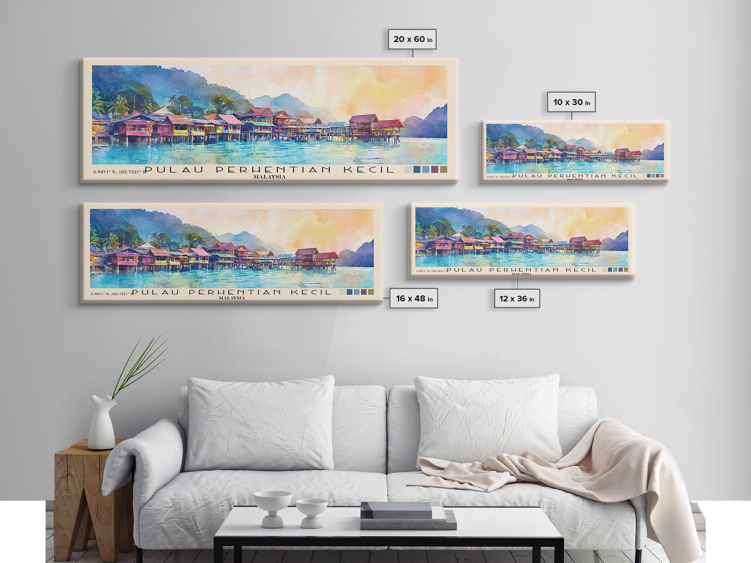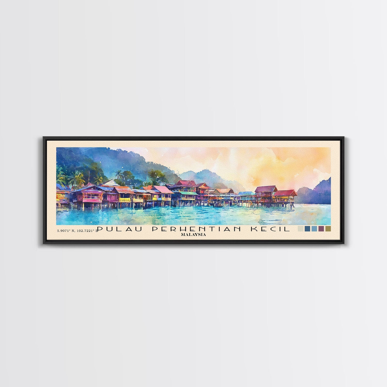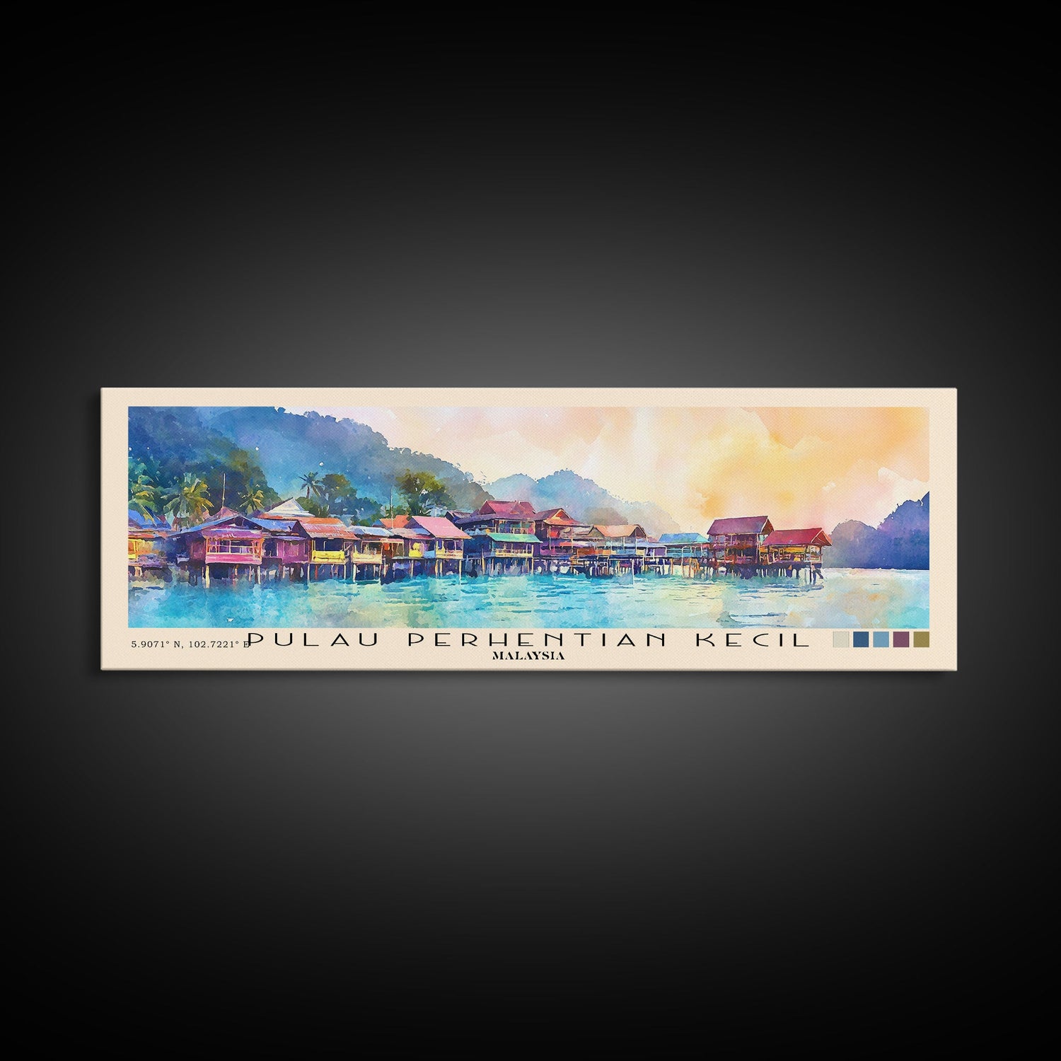 Pulau Perhentian Kecil, Malaysia Watercolor Beach Print, Vacation Gift, Malaysia Wall Art, Framed Canvas Print, Framed Beach Painting - 10x30 Inches / No Frame - Stretched Canvas Only is backordered and will ship as soon as it is back in stock.