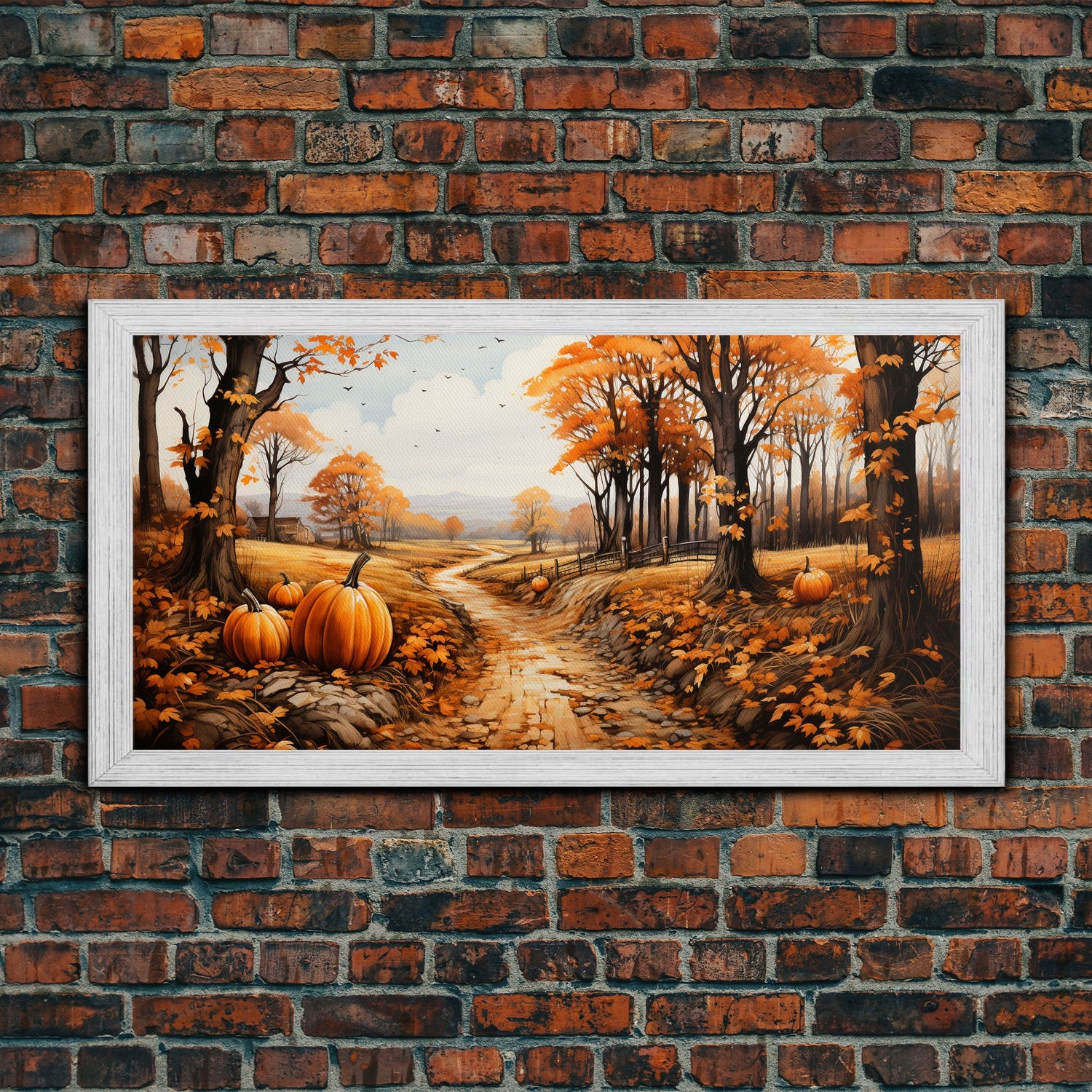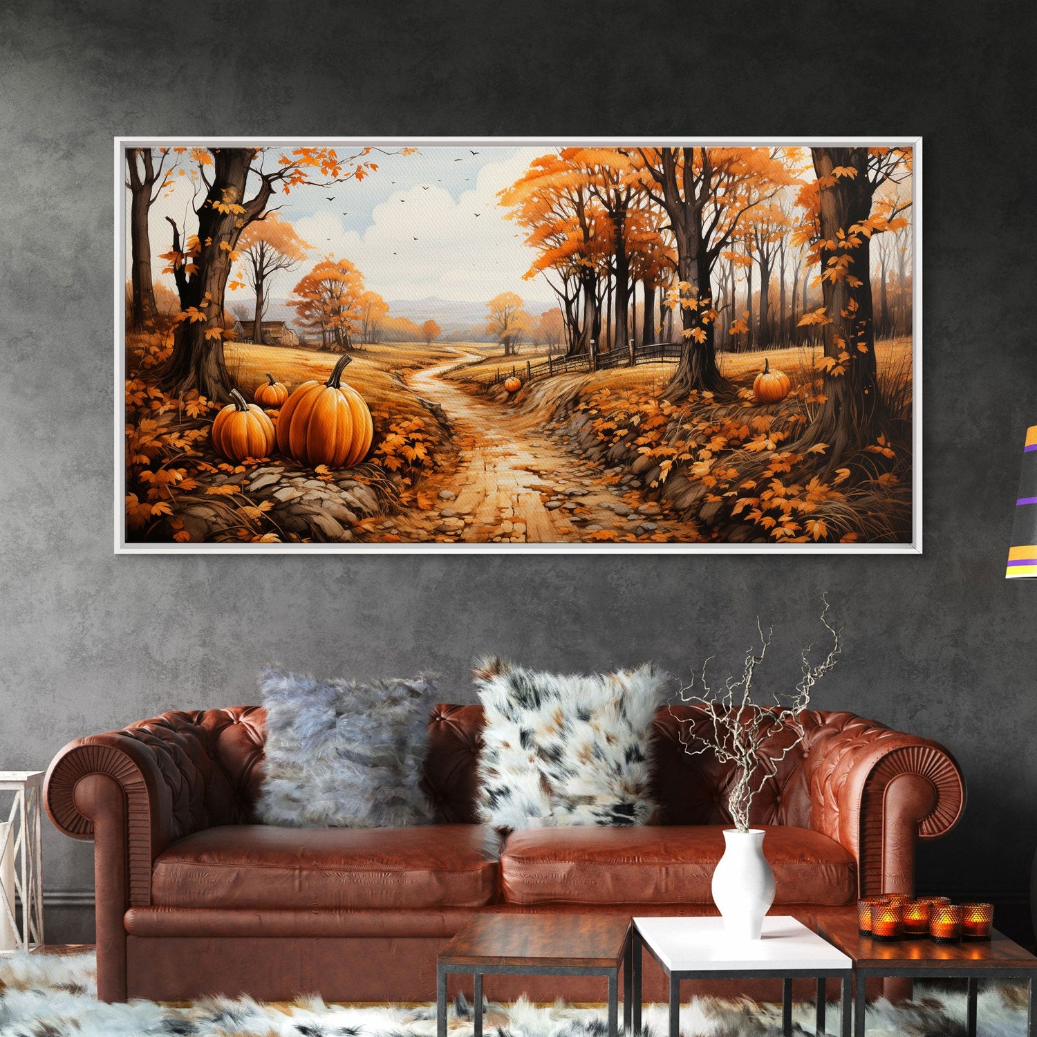 Pumpkin Wall Art, Fall Wall Decor, Nature Art, Trees Art, Canvas Print, Wall Hanging, Panoramic Art, Country Home Decor, Office Prints