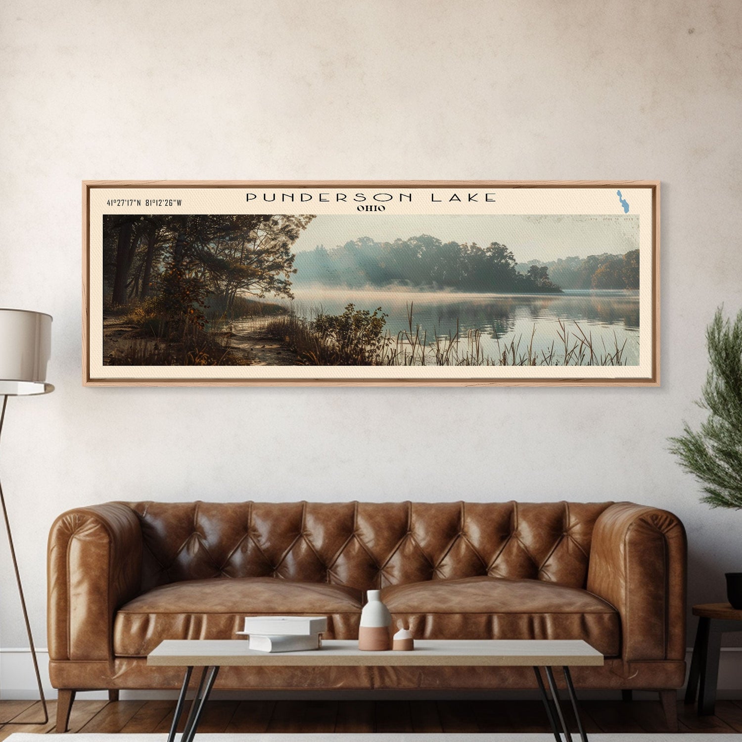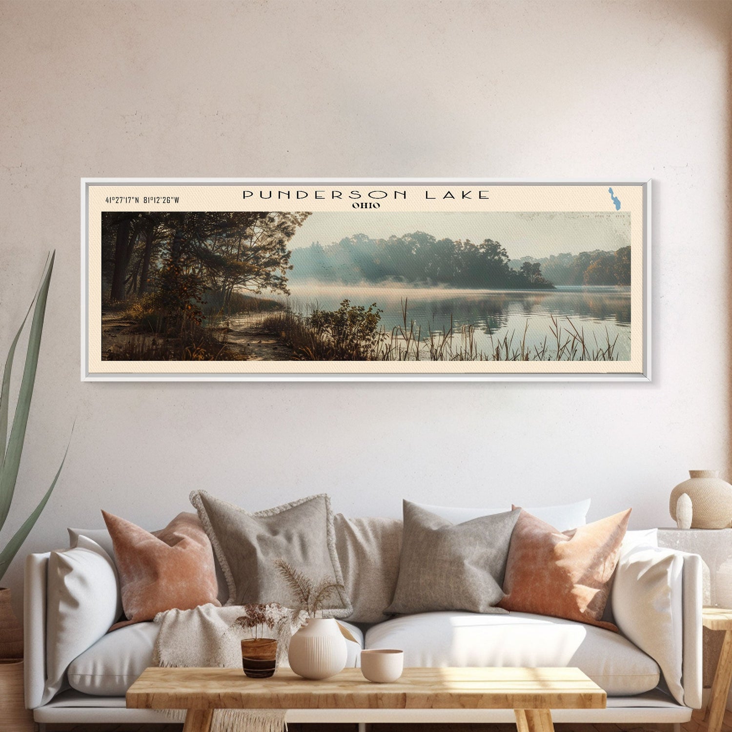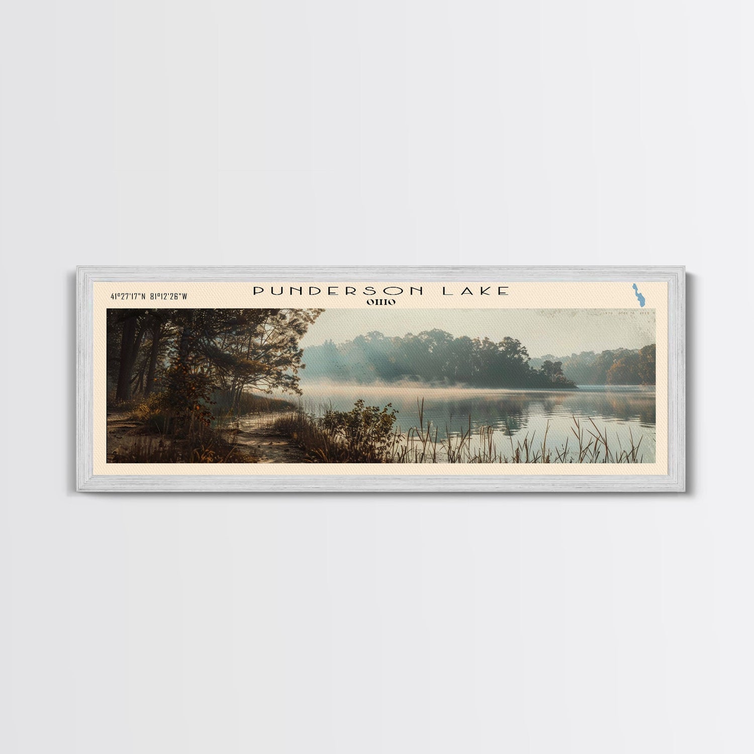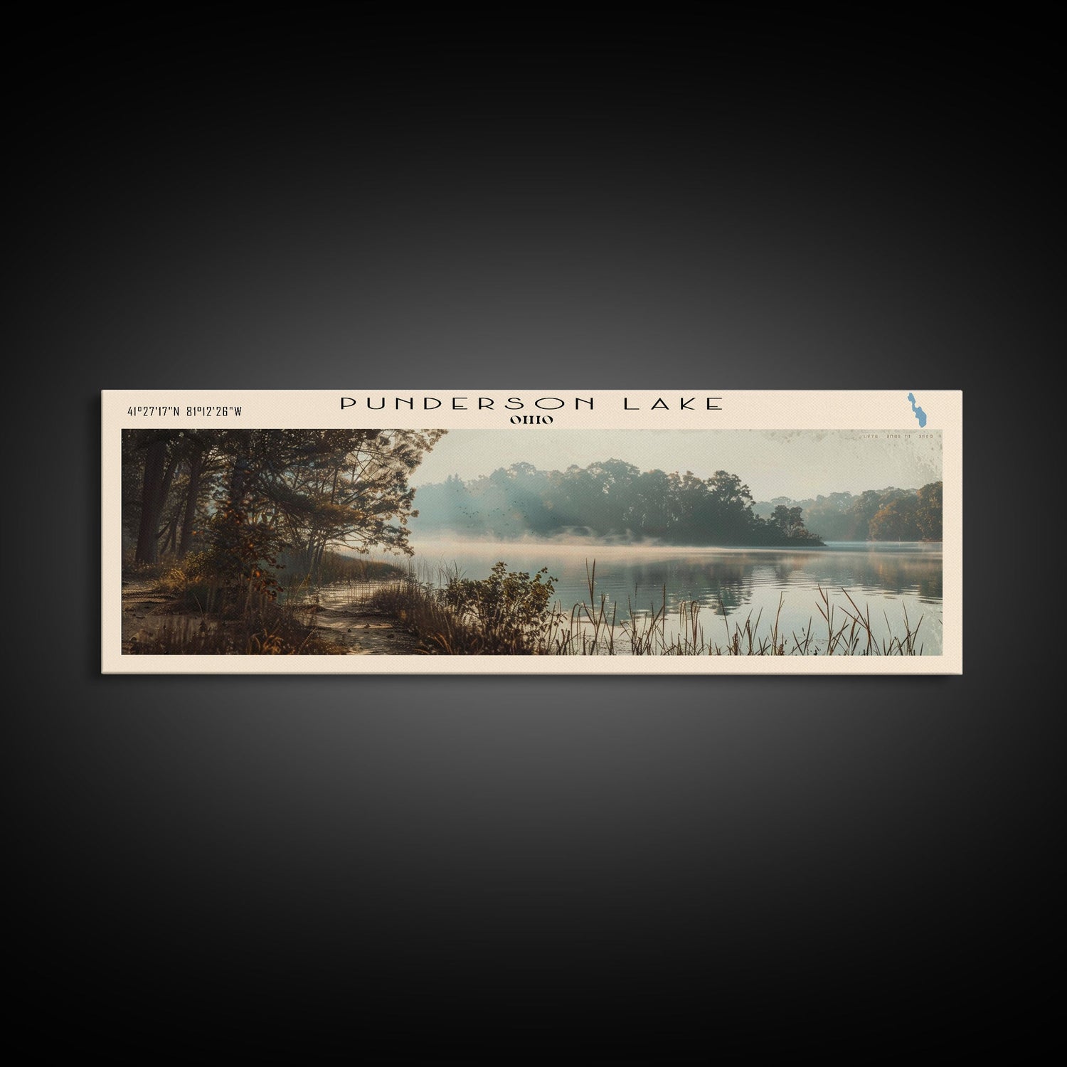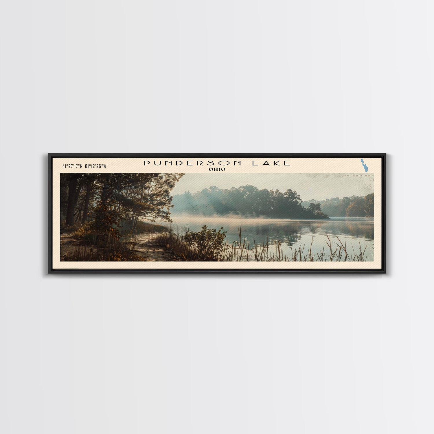 Punderson Lake Ohio Framed Canvas Print, Lake House Decor, Panoramic Travel Poster, Scenic Wall Art, Bedroom Decor