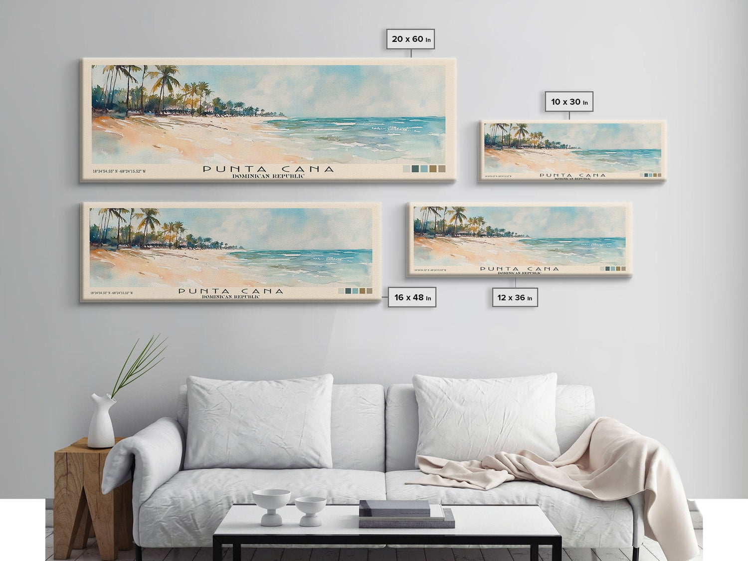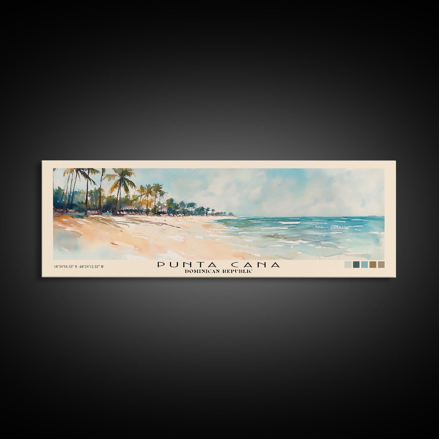 Punta Cana, Dominican Republic Watercolor Beach Print, Vacation Gift, Dominican Republic Wall Art, Beach Painting, Beach Decor, Beach Painting - 10x30 Inches / No Frame - Stretched Canvas Only is backordered and will ship as soon as it is back in stock.