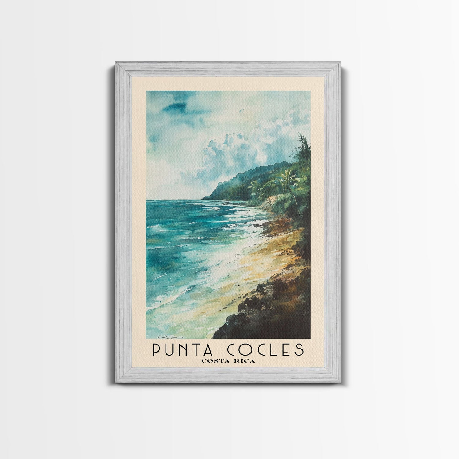 Punta Cocles, Costa Rica Watercolor Beach Print, Vacation Gift, Costa Rica Wall Art, Framed Canvas Print, Framed Beach Painting