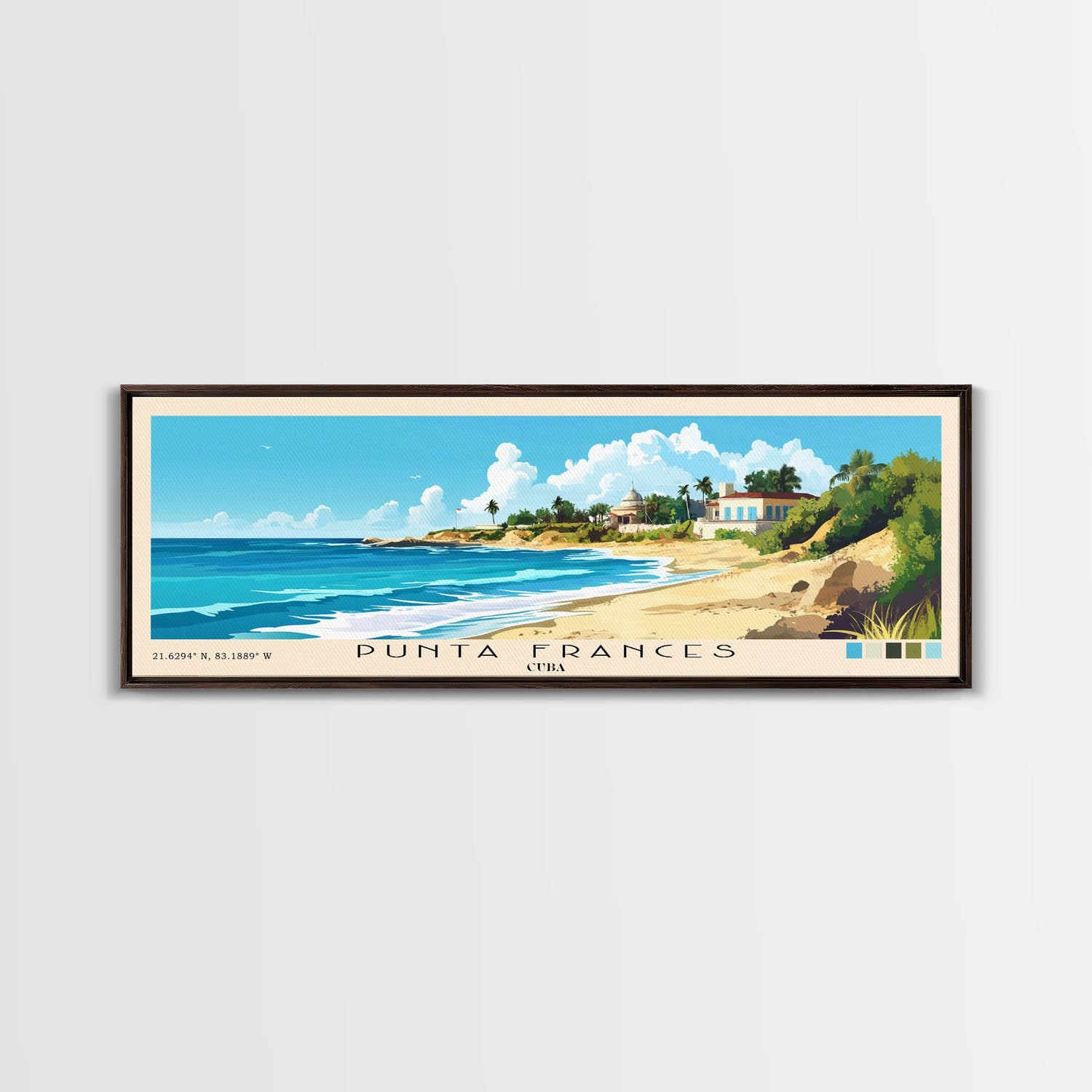 Punta Frances, Cuba Panoramic Print, Vacation Gift, Cuba Wall Art, Beach Painting, Beach Decor, Large Wall Art, Wood Frame Art