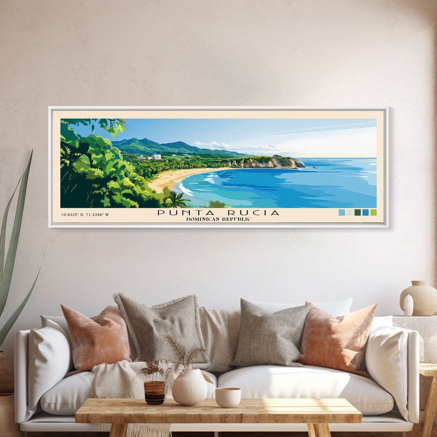Punta Rucia, Dominican Republic Panoramic Beach Print, Vacation Gift, Dominican Republic Wall Art, Framed Canvas Print, Framed Beach Painting