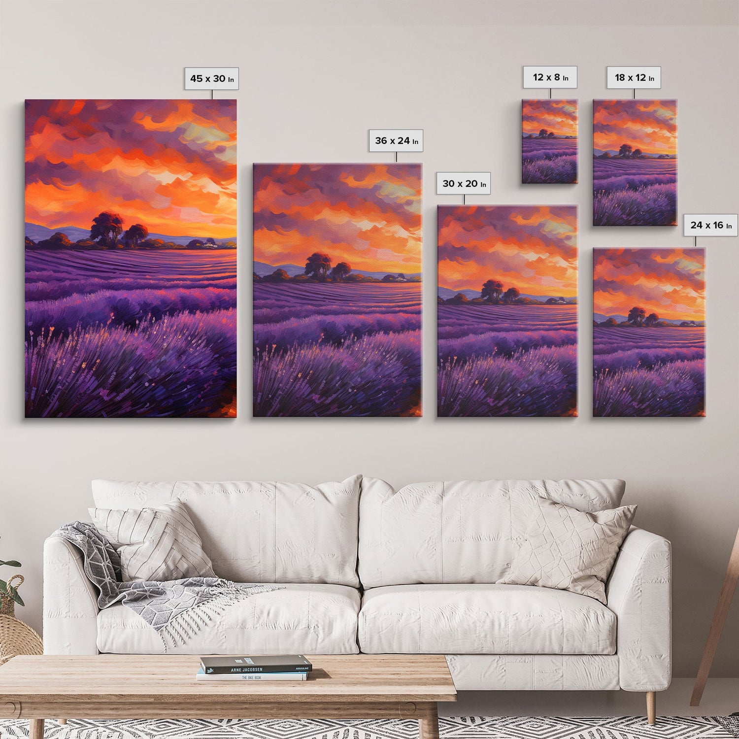 Purple Lavender Fields, 3 Piece Wall Art, Framed Canvas Print, Beautiful Original Landscape Painting, Sunset Painting, Farmhouse Decor - 8x12 In. - 3 Pieces / No Frame - Stretched Canvas Only is backordered and will ship as soon as it is back in stock.