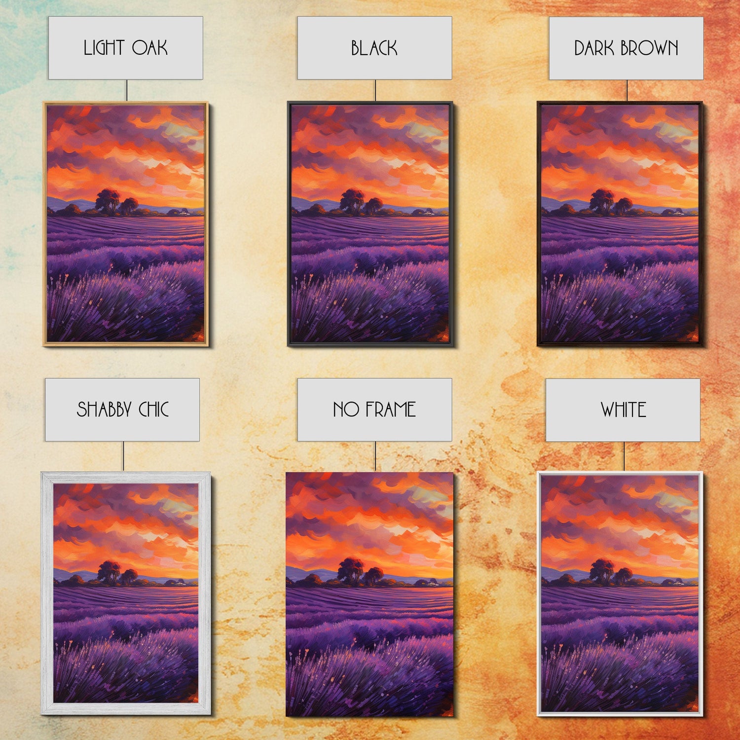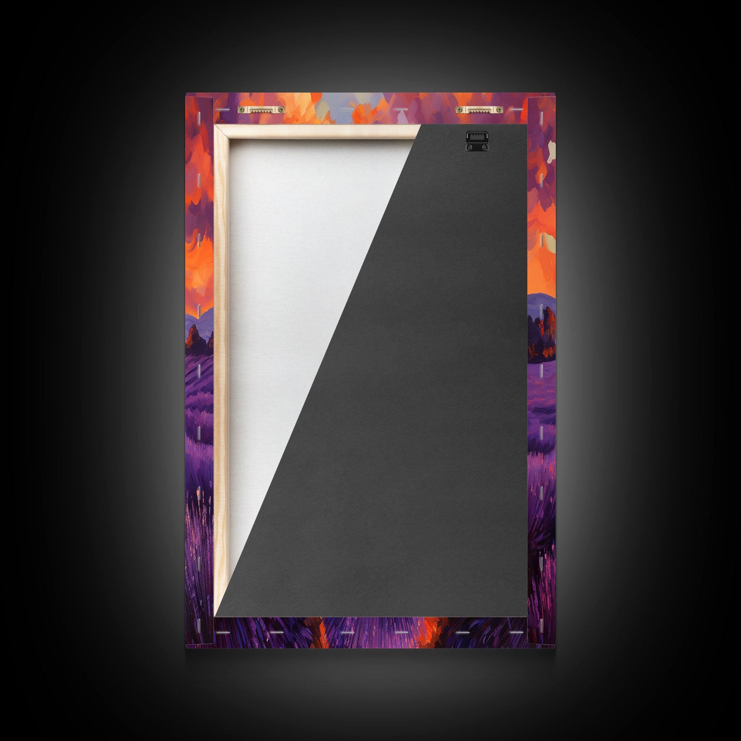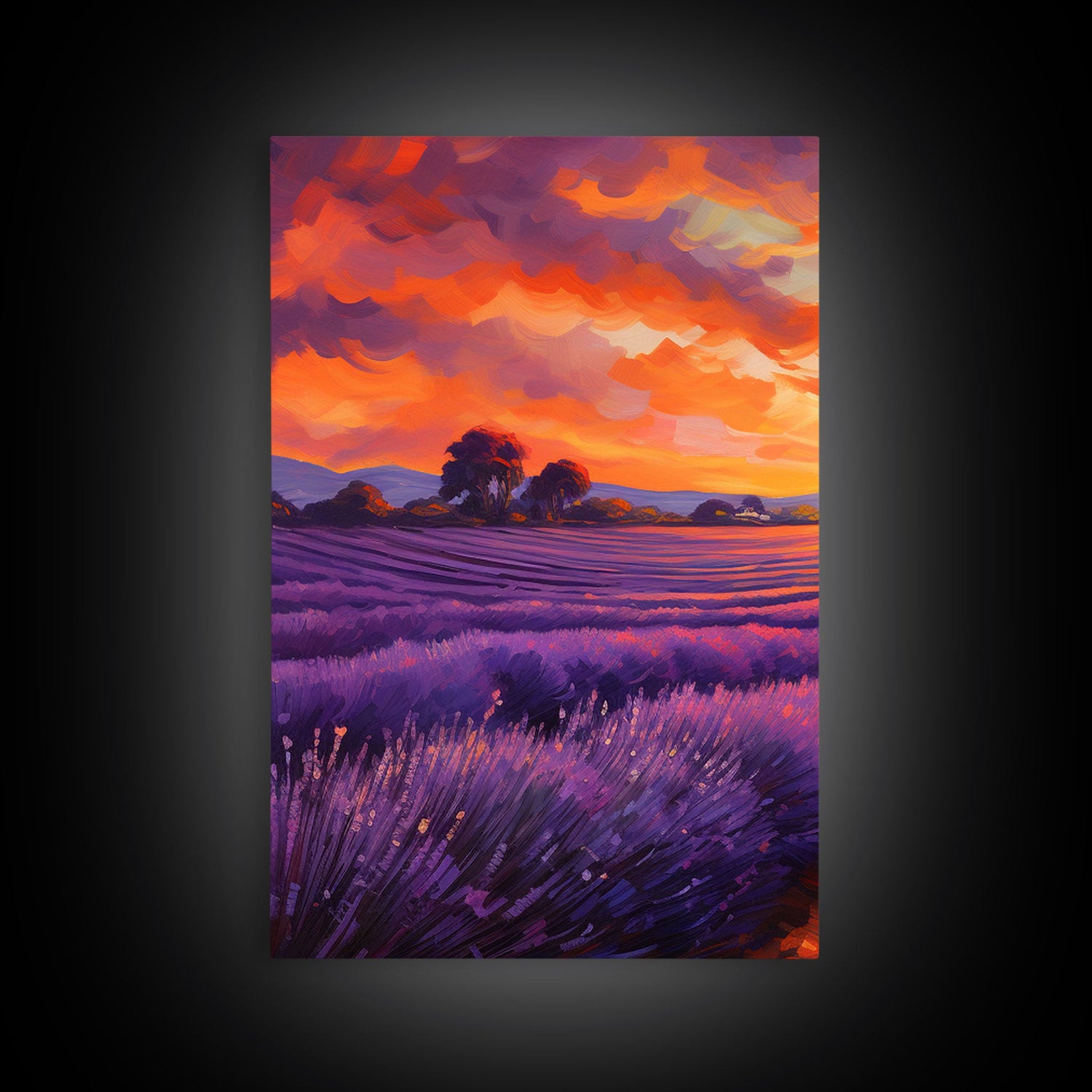 Purple Lavender Fields, 3 Piece Wall Art, Framed Canvas Print, Beautiful Original Landscape Painting, Sunset Painting, Farmhouse Decor