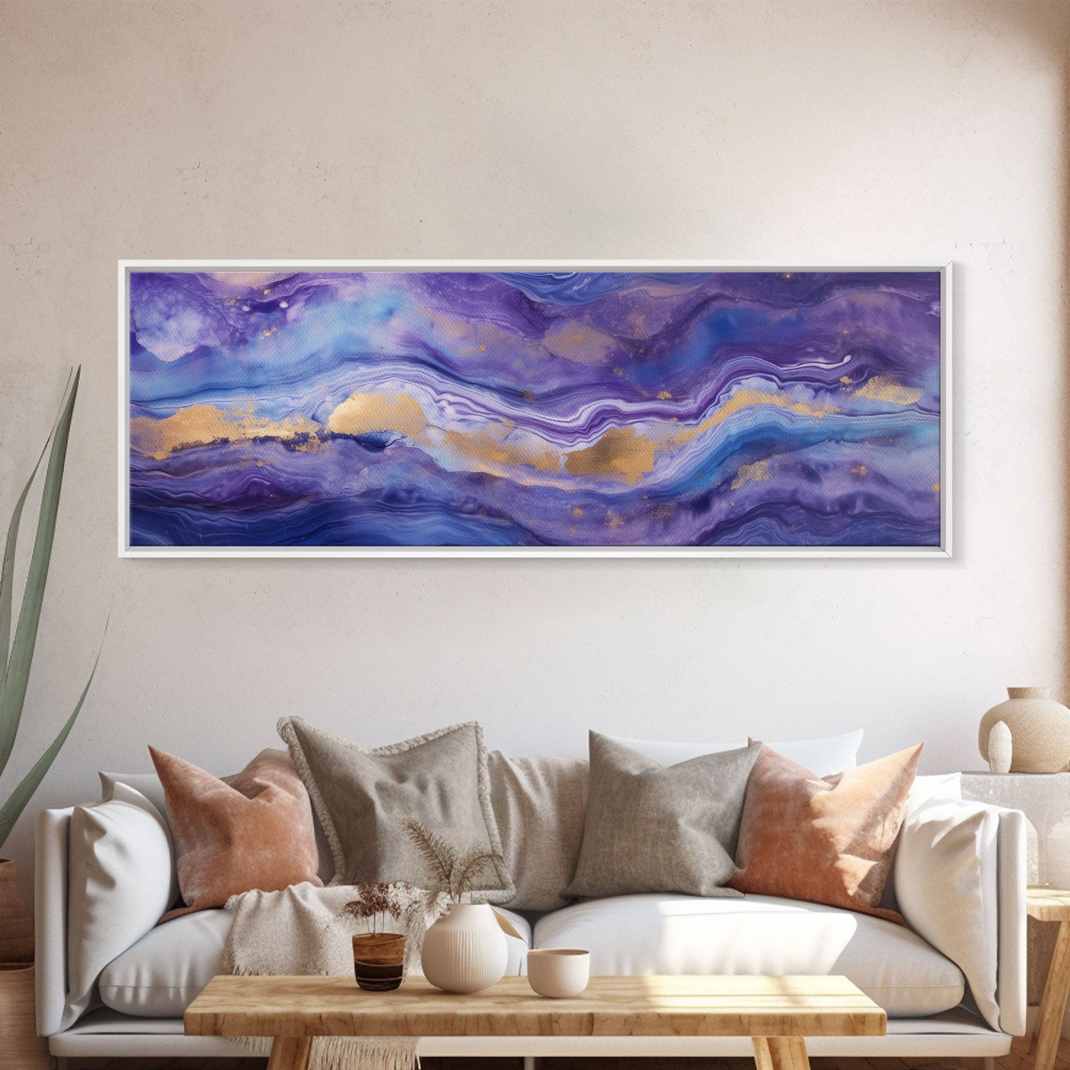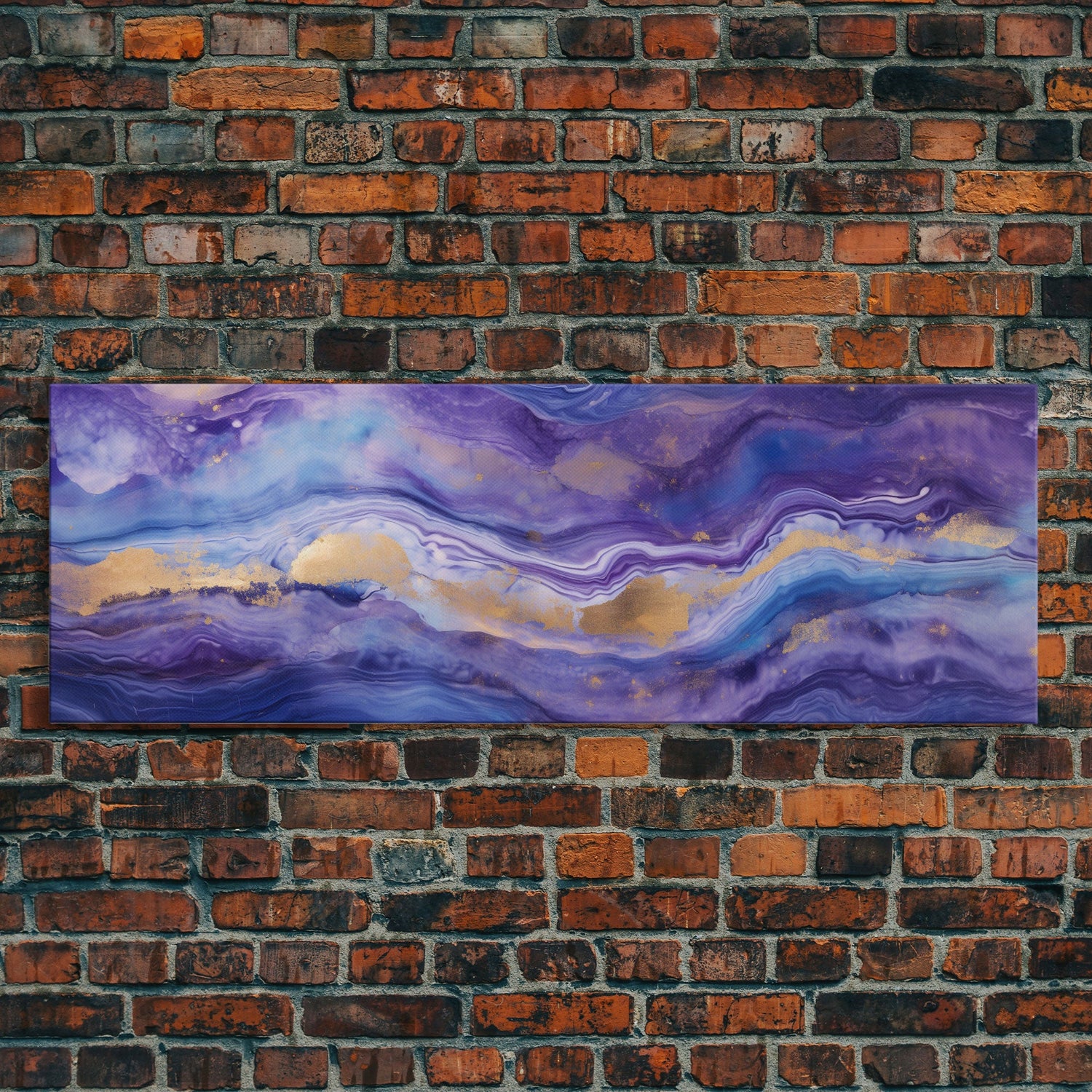 Purple Marble Canvas Wall Art, Abstract Canvas Art, Panoramic Extra Large Wall Art, Marble Wall Decor, Modern Art, Purple and Gold Art