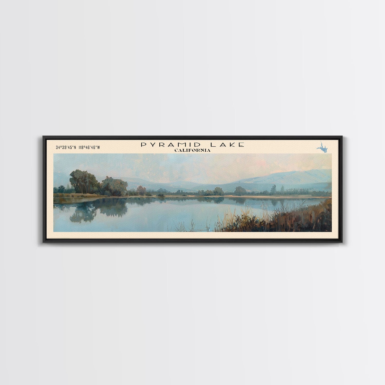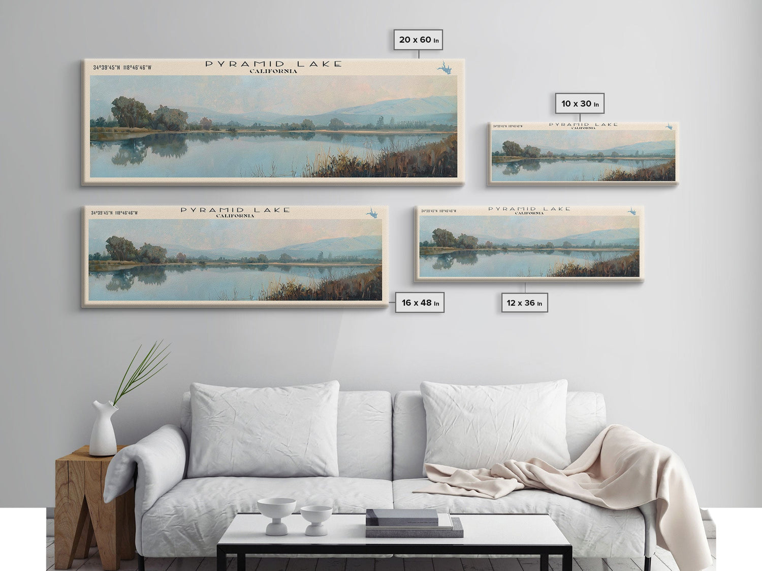Pyramid Lake California Framed Canvas Print, Lake House Decor, Panoramic Wall Art, Travel Poster, Beautiful Landscape Painting, Living Room Decor