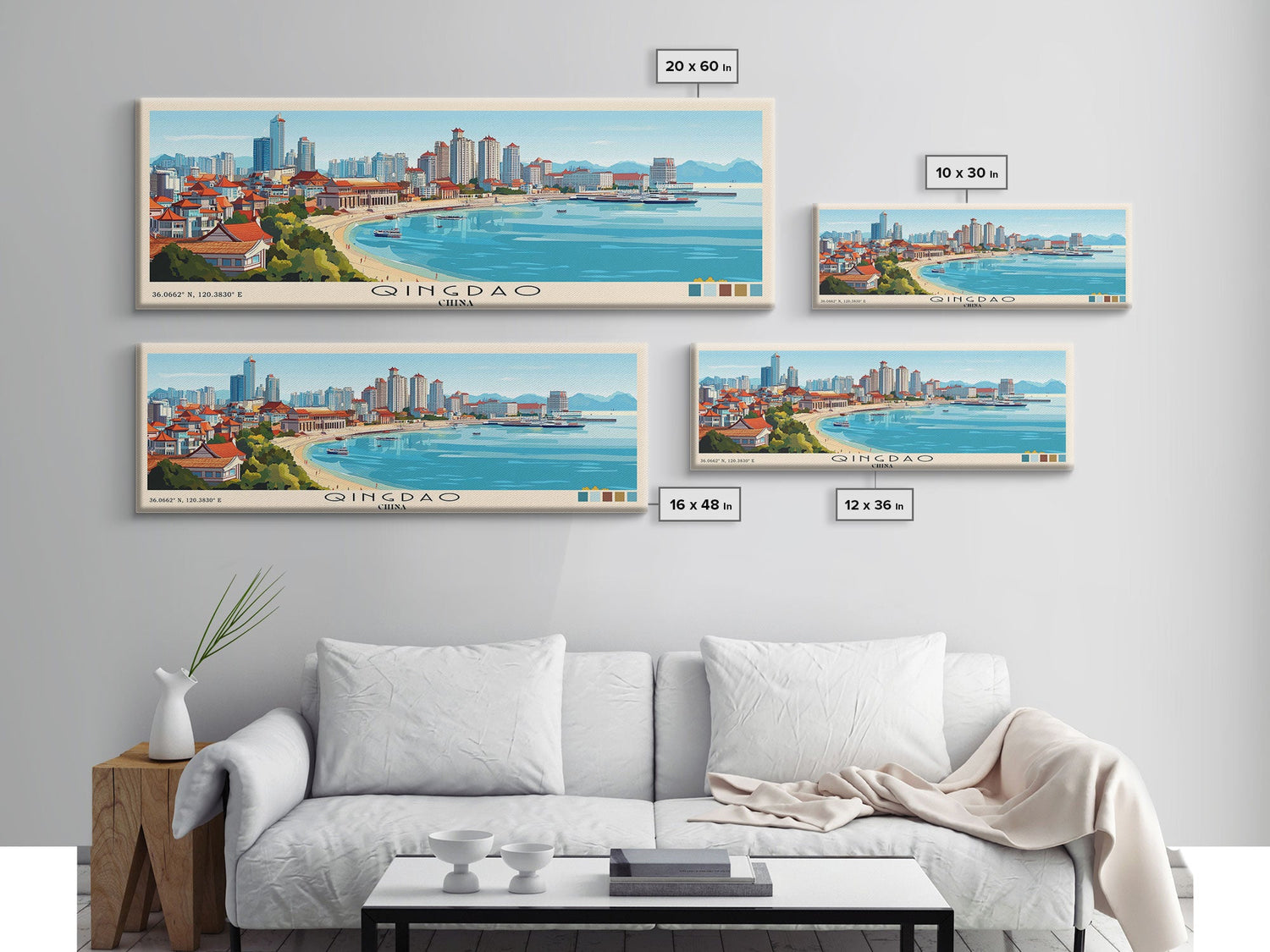 Qingdao, China Panoramic Beach Print, Vacation Gift, China Wall Art, Beach Painting, Beach Decor, Beach Painting - 10x30 Inches / No Frame - Stretched Canvas Only is backordered and will ship as soon as it is back in stock.
