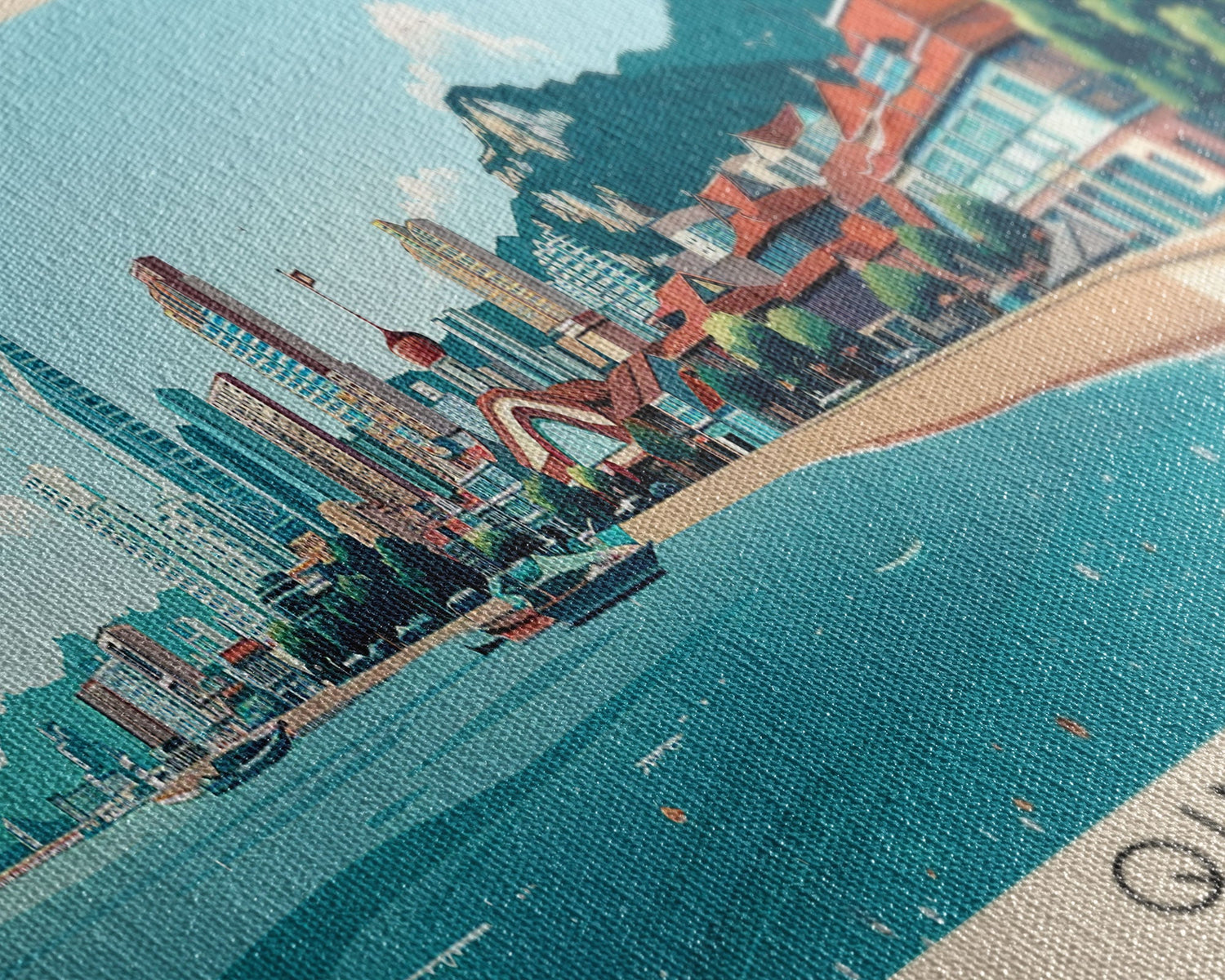 Qingdao, China Panoramic Canvas Print, Qingdao, China Painting, China Art, Qingdao Travel Poster, Travel Art, Guest Room Painting