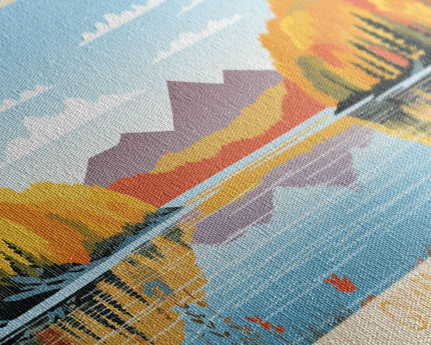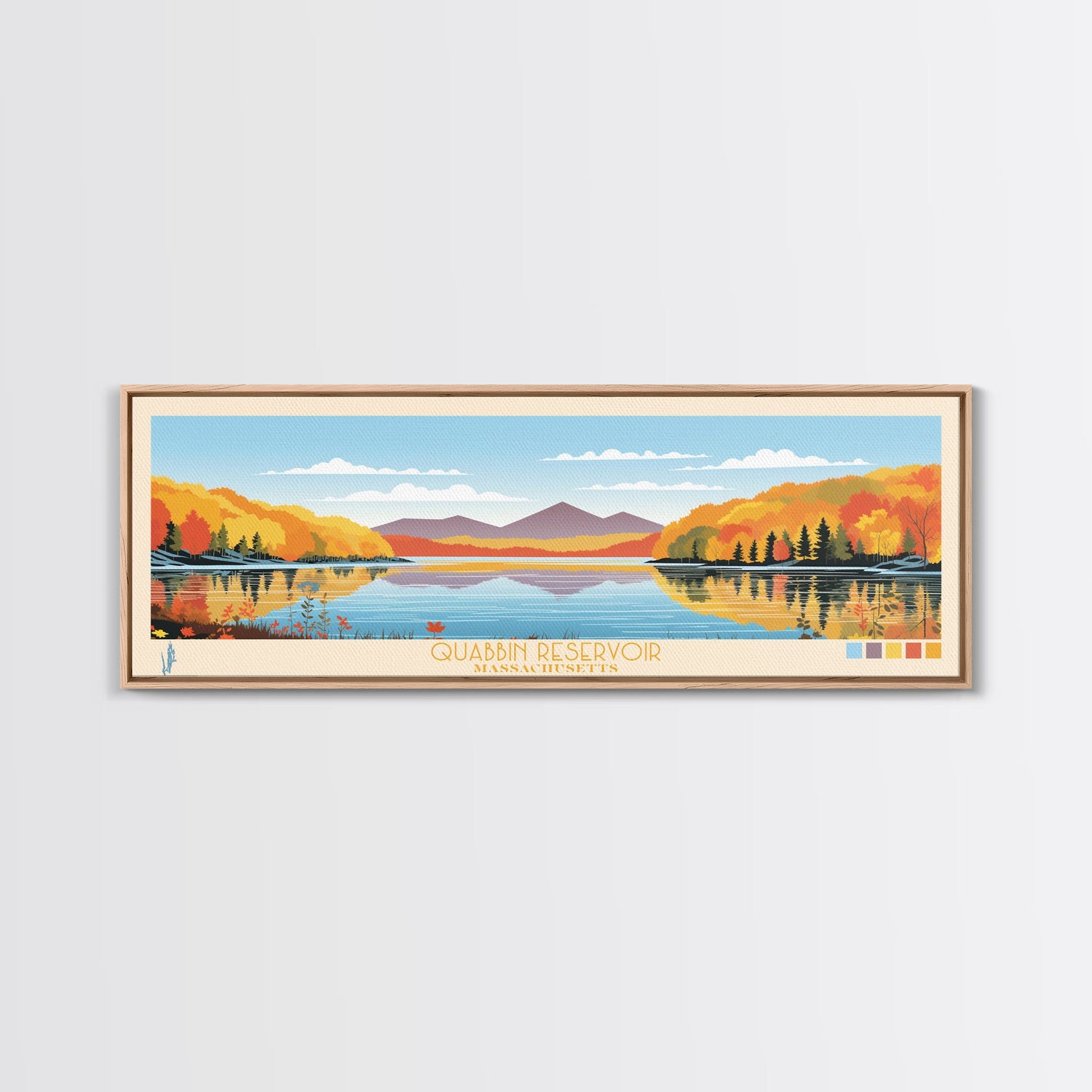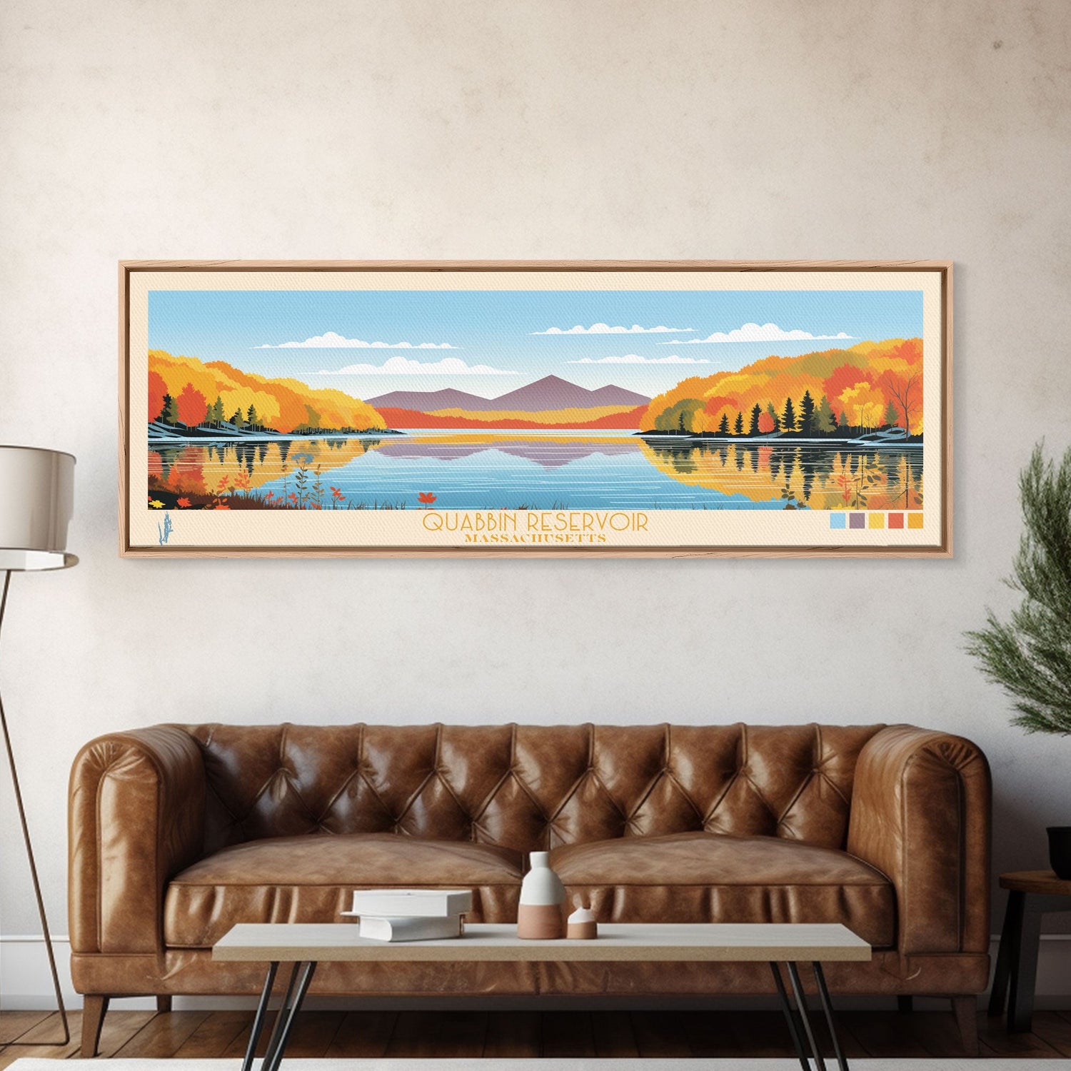 Quabbin Reservoir, Massachusetts Framed Canvas Print, Bedroom Art, Midcentury Modern, Panoramic Travel Poster, Pop Art, Wall Decor
