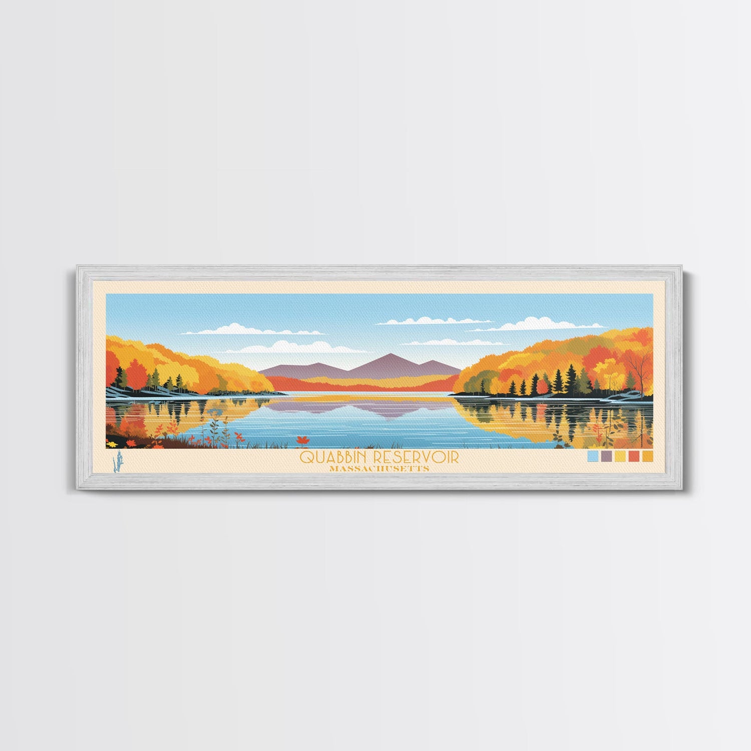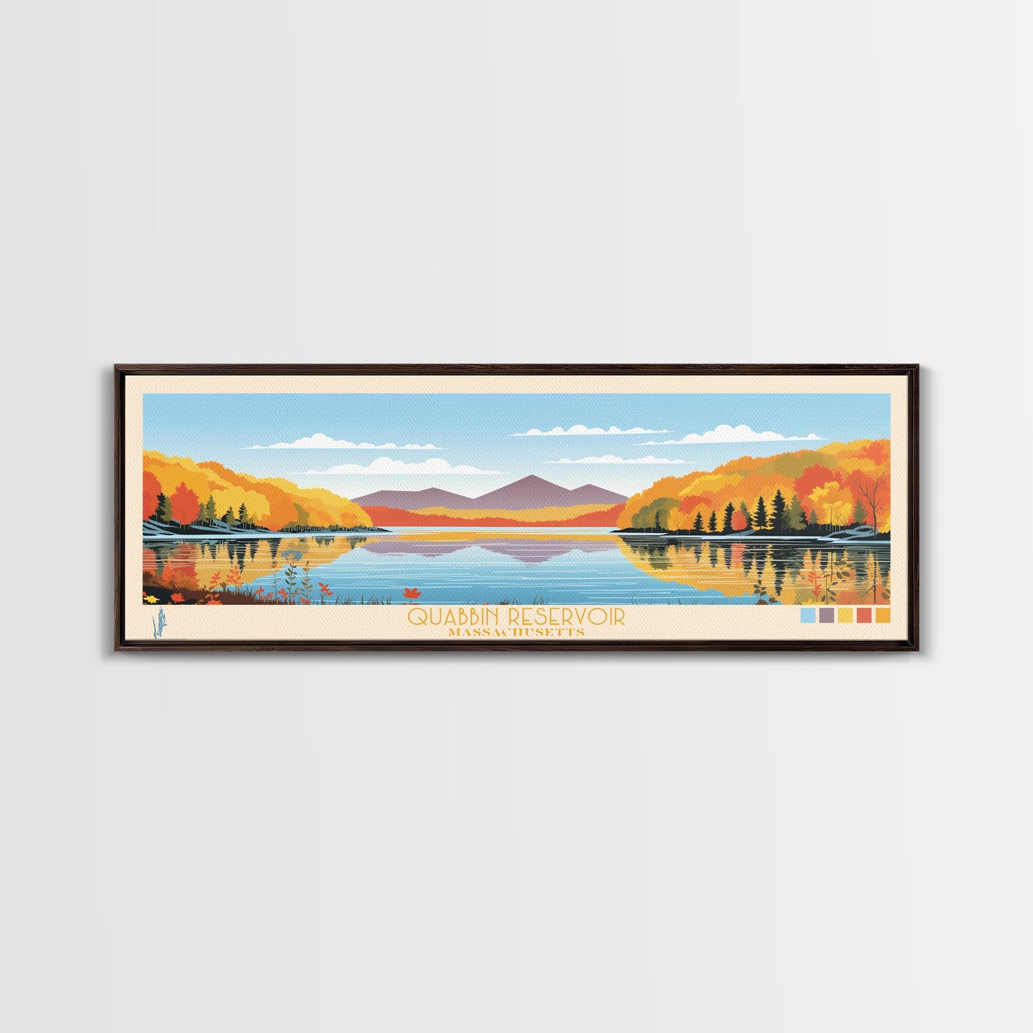 Quabbin Reservoir, Massachusetts Framed Canvas Print, Bedroom Art, Midcentury Modern, Panoramic Travel Poster, Pop Art, Wall Decor - 10x30 Inches / No Frame - Stretched Canvas Only is backordered and will ship as soon as it is back in stock.