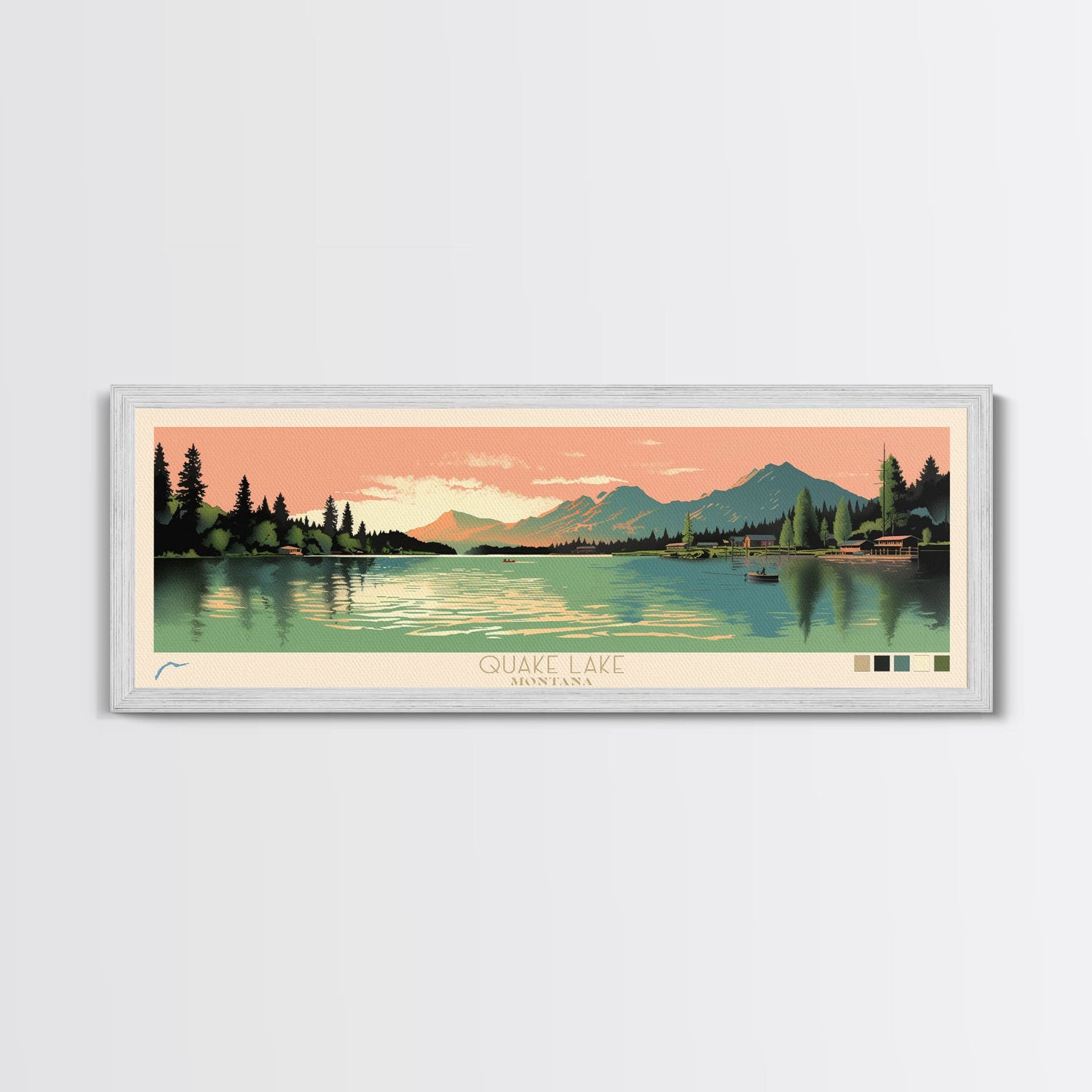 Quake Lake, Montana Framed Canvas Print, Home Decor, Midcentury Modern, Panoramic Wall Art, Pop Art, Travel Poster